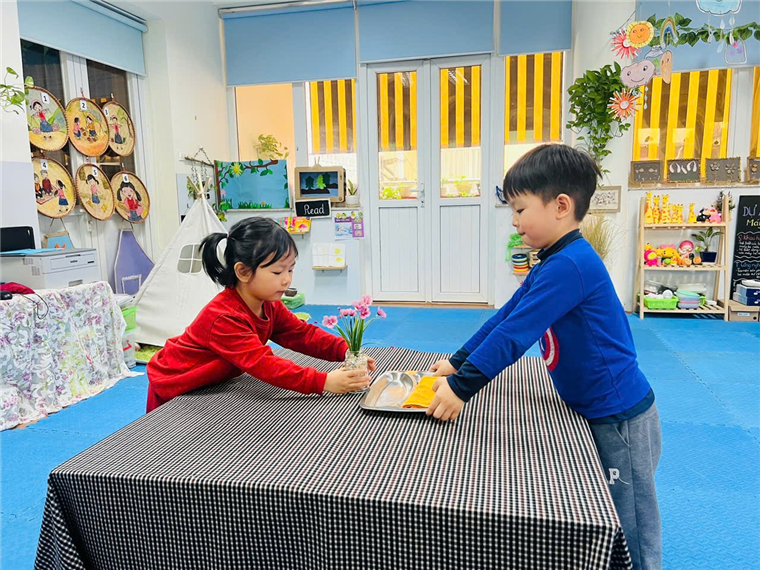 Các bạn rất hào hứng giúp cô chuẩn bị bàn ăn