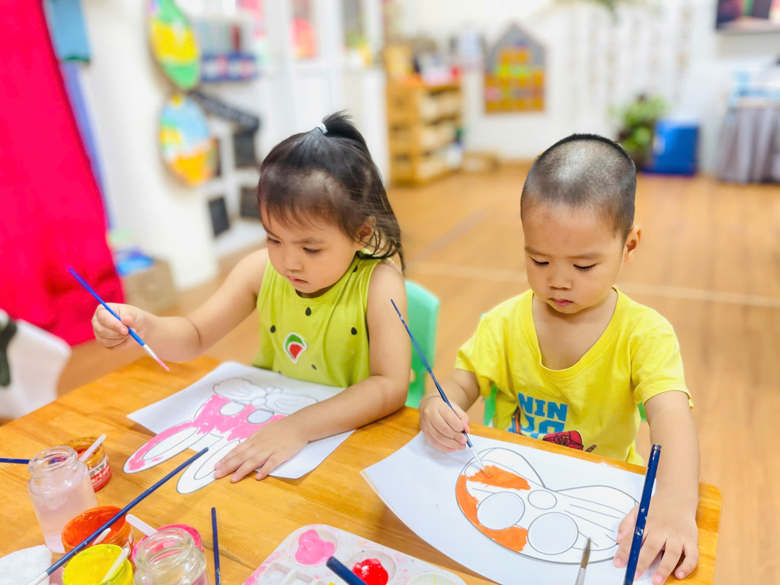 Trẻ hào hứng tham gia trang trí cho chiếc mặt nạ của mình
