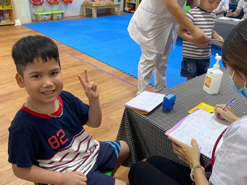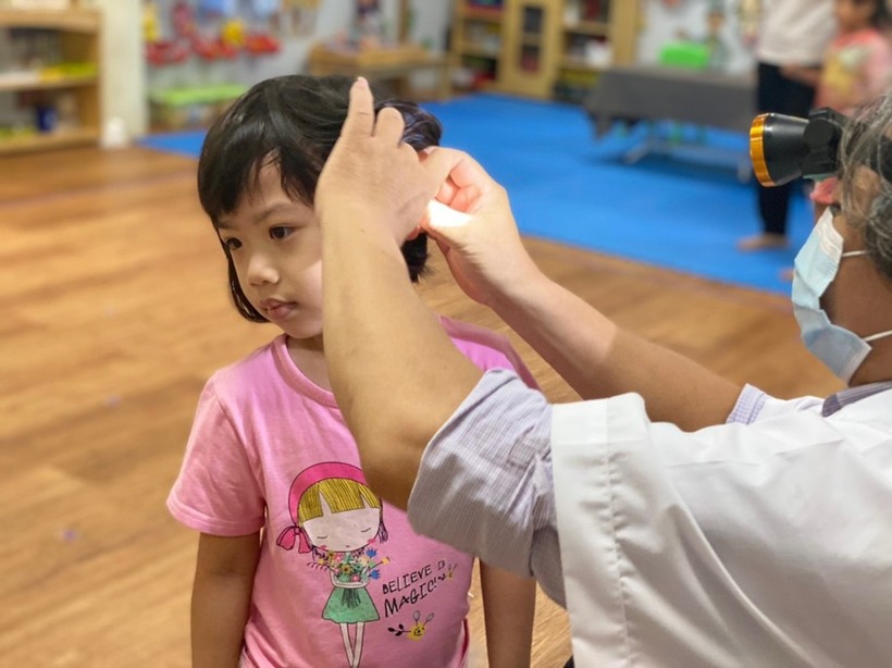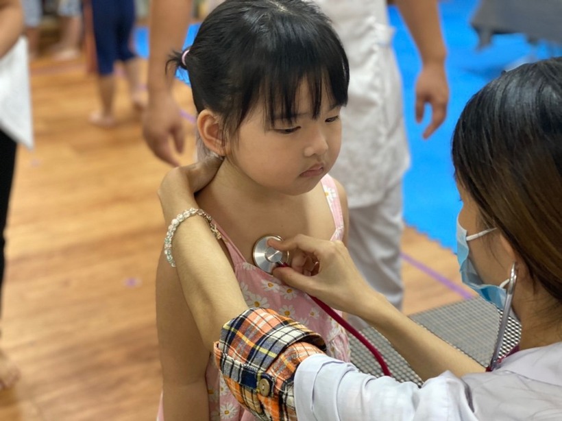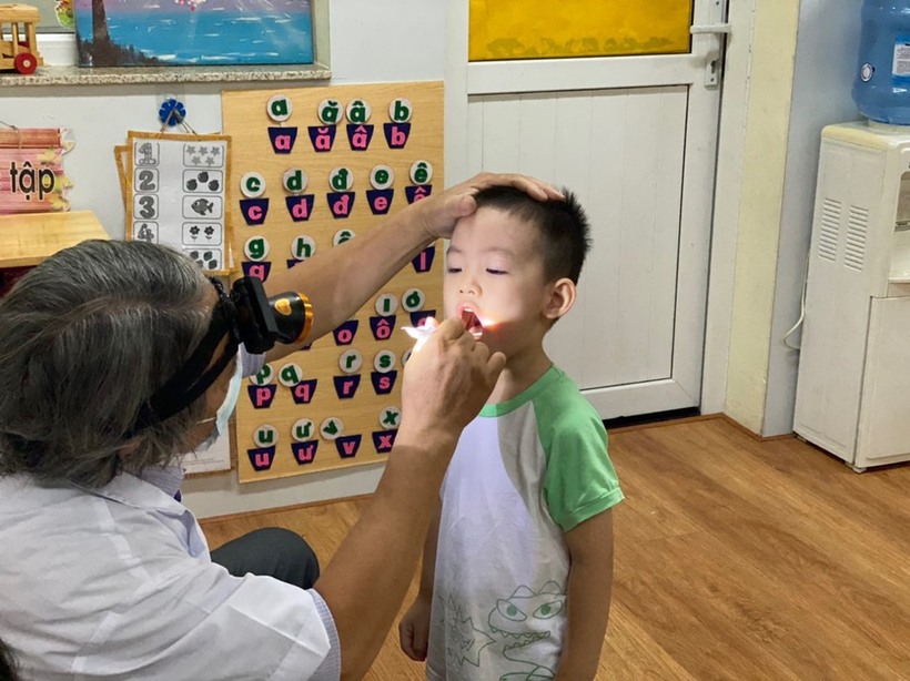 Các bạn nhỏ được bác sỹ khám rất vui vẻ và hợp tác.