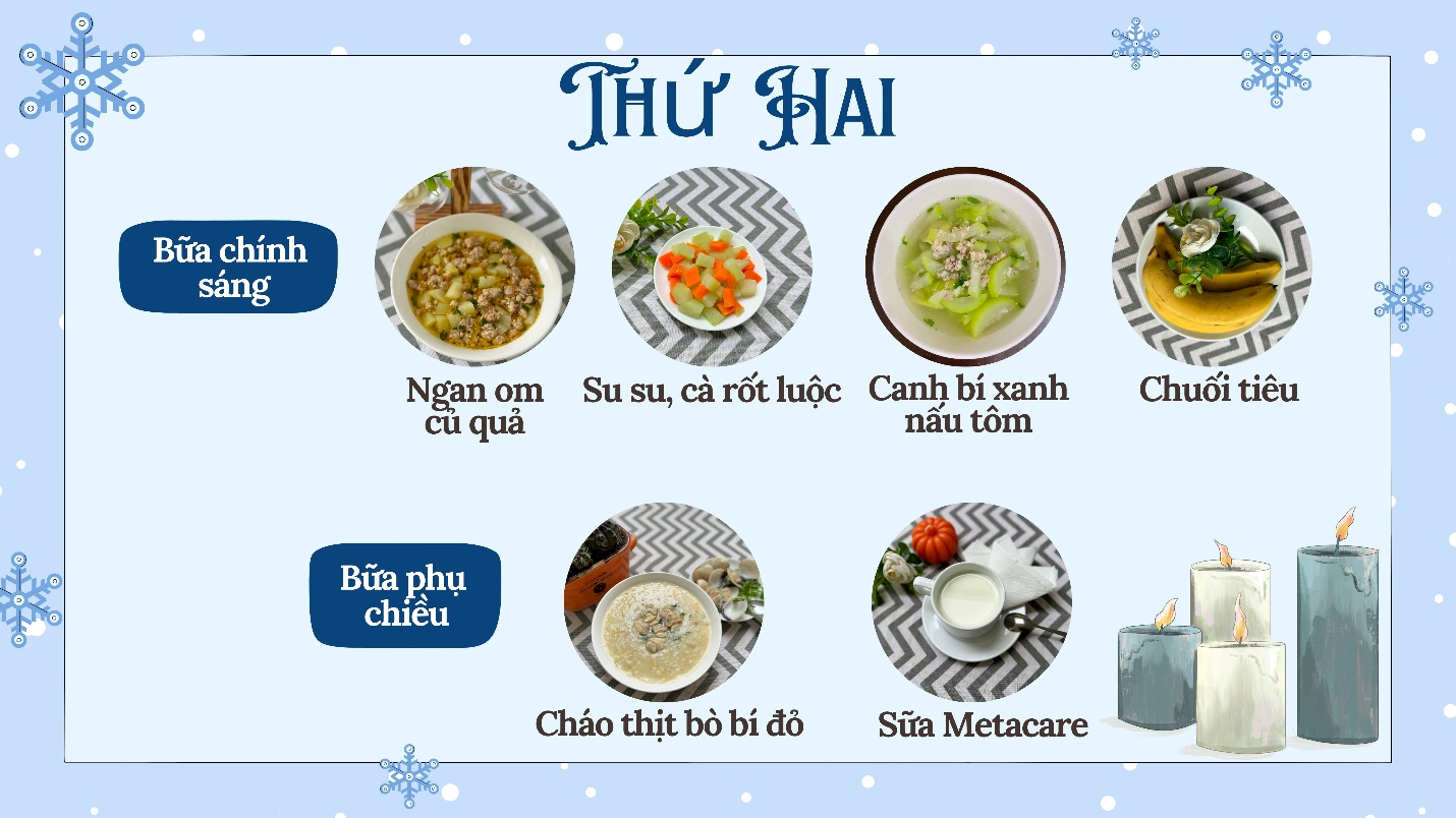 Thực đơn tuần II tháng 12/2025 của trẻ Nhà trẻ (trẻ 24-36 tháng tuổi)