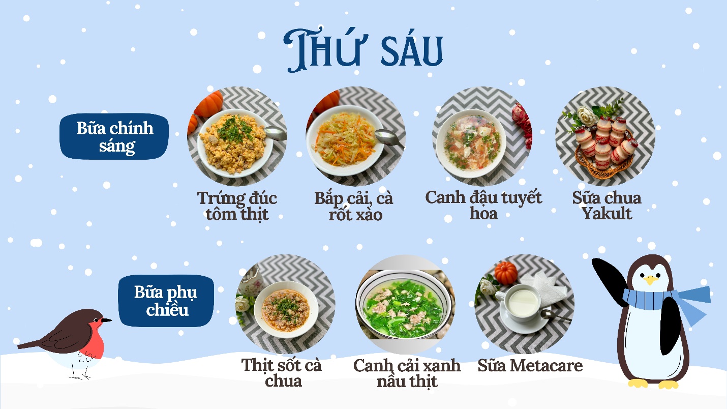 Thực đơn tuần I tháng 12/2025 của trẻ Mẫu giáo (trẻ 3-6 tuổi)