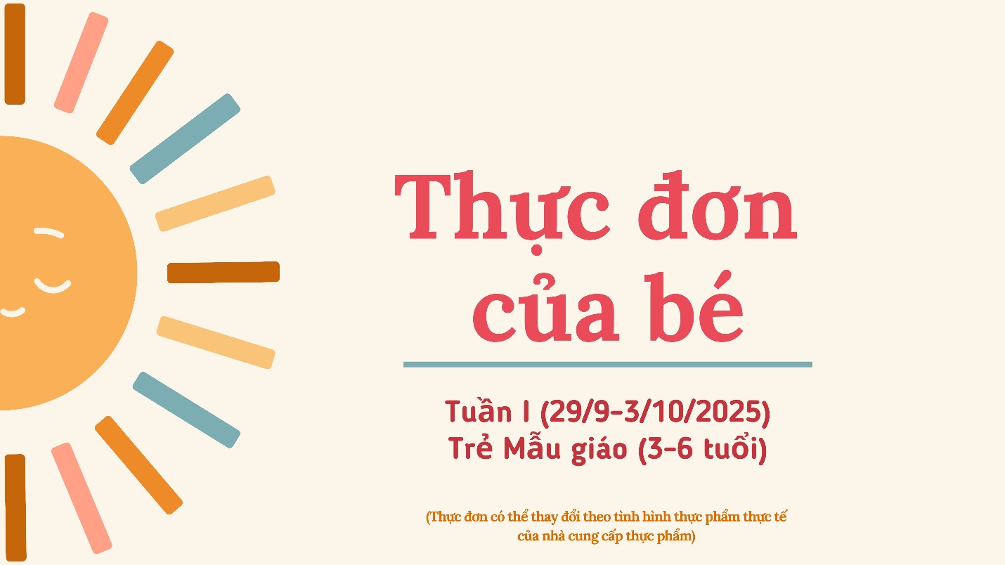 Thực đơn tuần I tháng 10/2025 của trẻ Mẫu giáo (trẻ 3-6 tuổi)