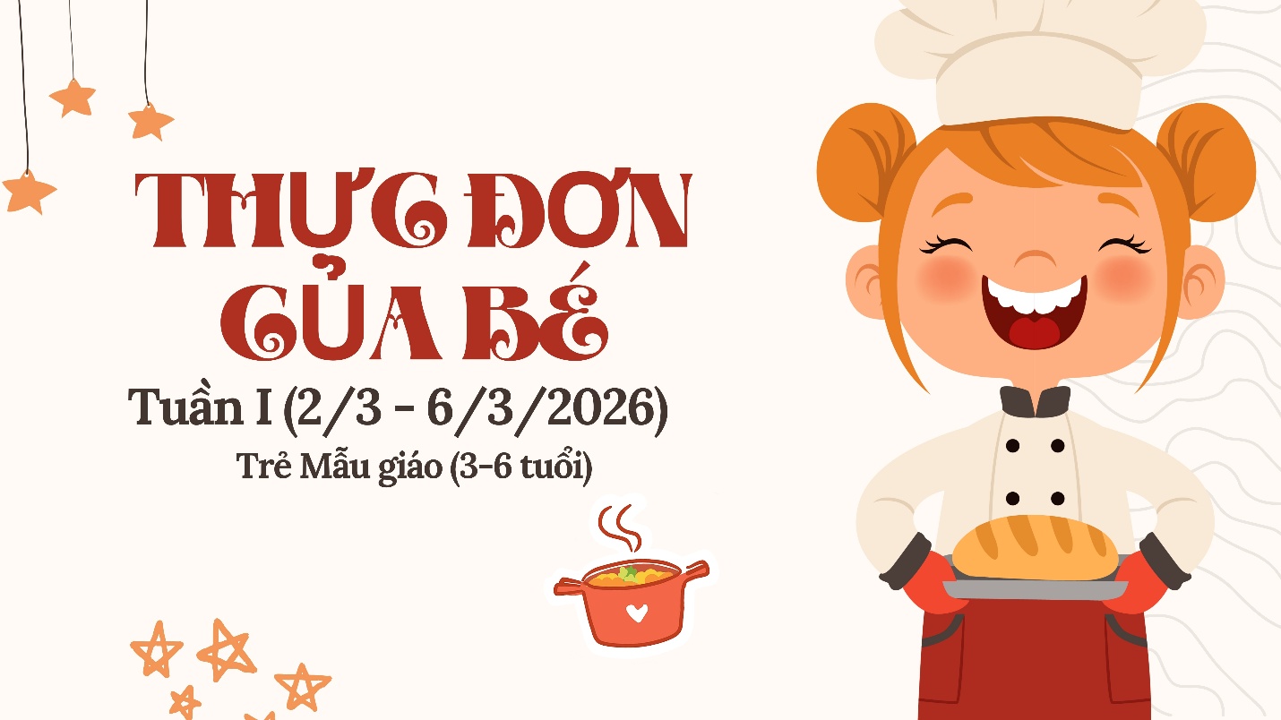 Thực đơn tuần I tháng 3/2026 của trẻ Mẫu giáo (trẻ 3-6 tuổi)