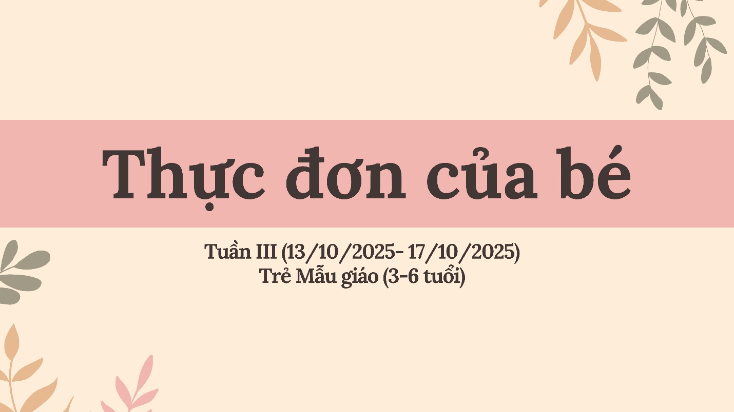 Thực đơn tuần III tháng 10/2025 của trẻ Mẫu giáo (trẻ 3-6 tuổi)
