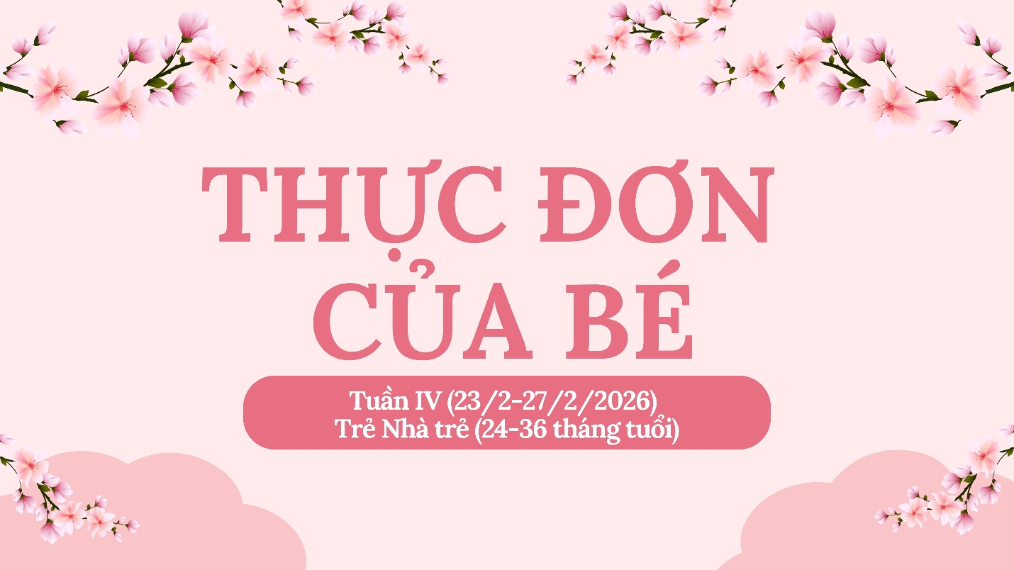 Thực đơn tuần IV tháng 2/2026 của trẻ Nhà trẻ (trẻ 24-36 tháng tuổi)