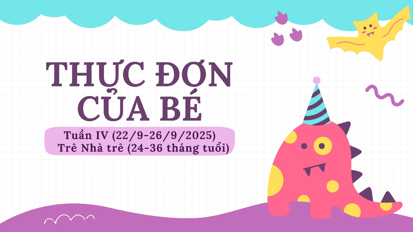 Thực đơn tuần IV tháng 9/2025 của trẻ Nhà trẻ (trẻ 24-36 tháng tuổi)