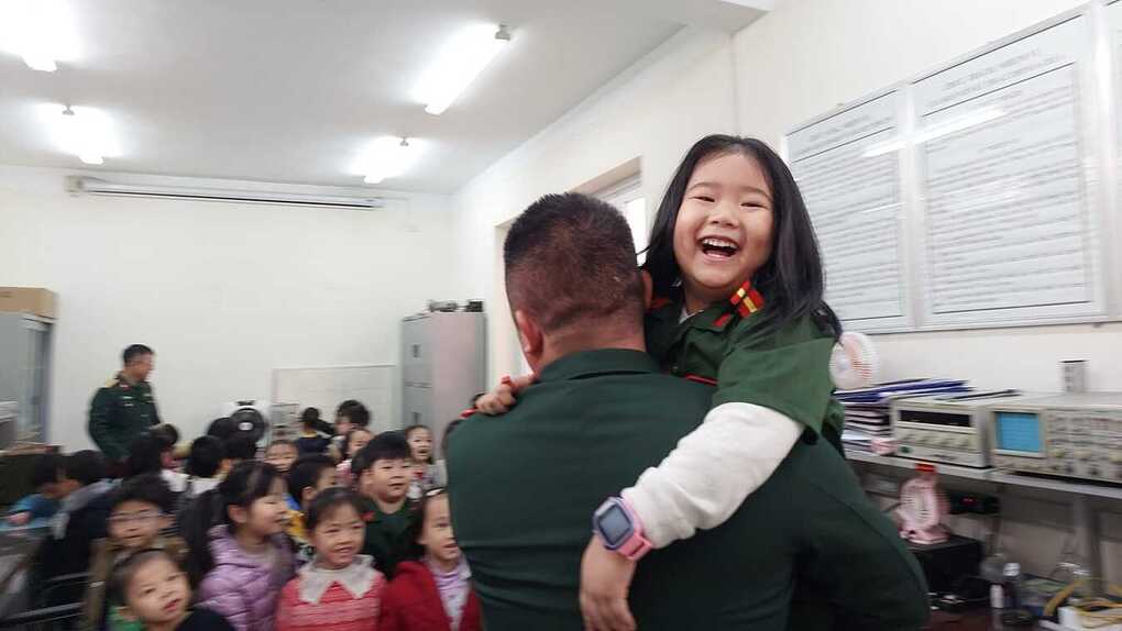 Các bé lớp A3 hăm quan giao lưu cùng các bác, các chú bộ đội tại : "Kho trạm thông tin- Bộ tư lệnh công binh."
