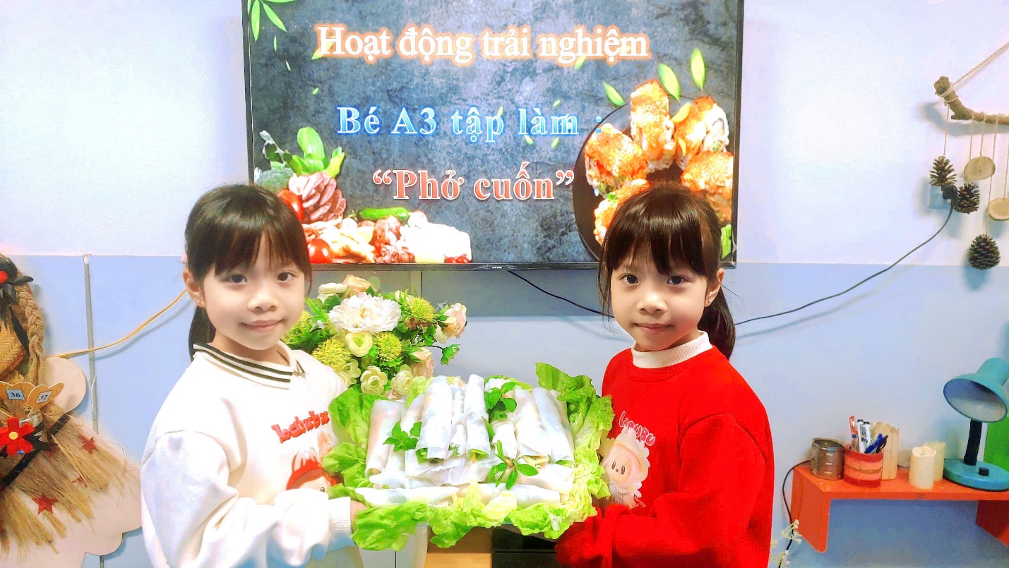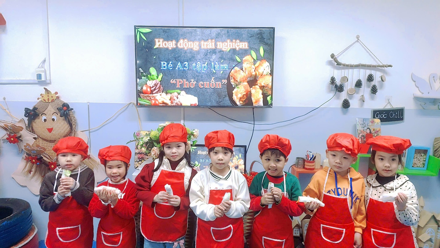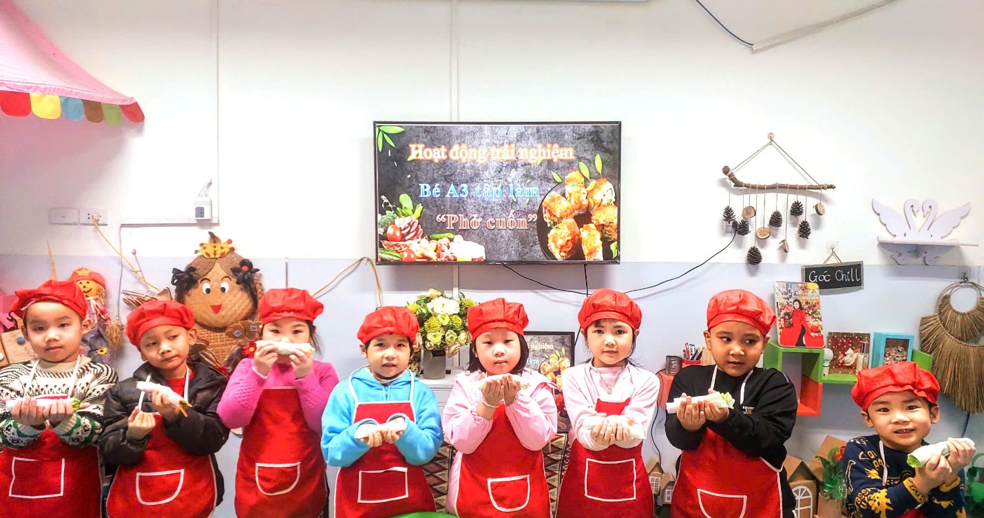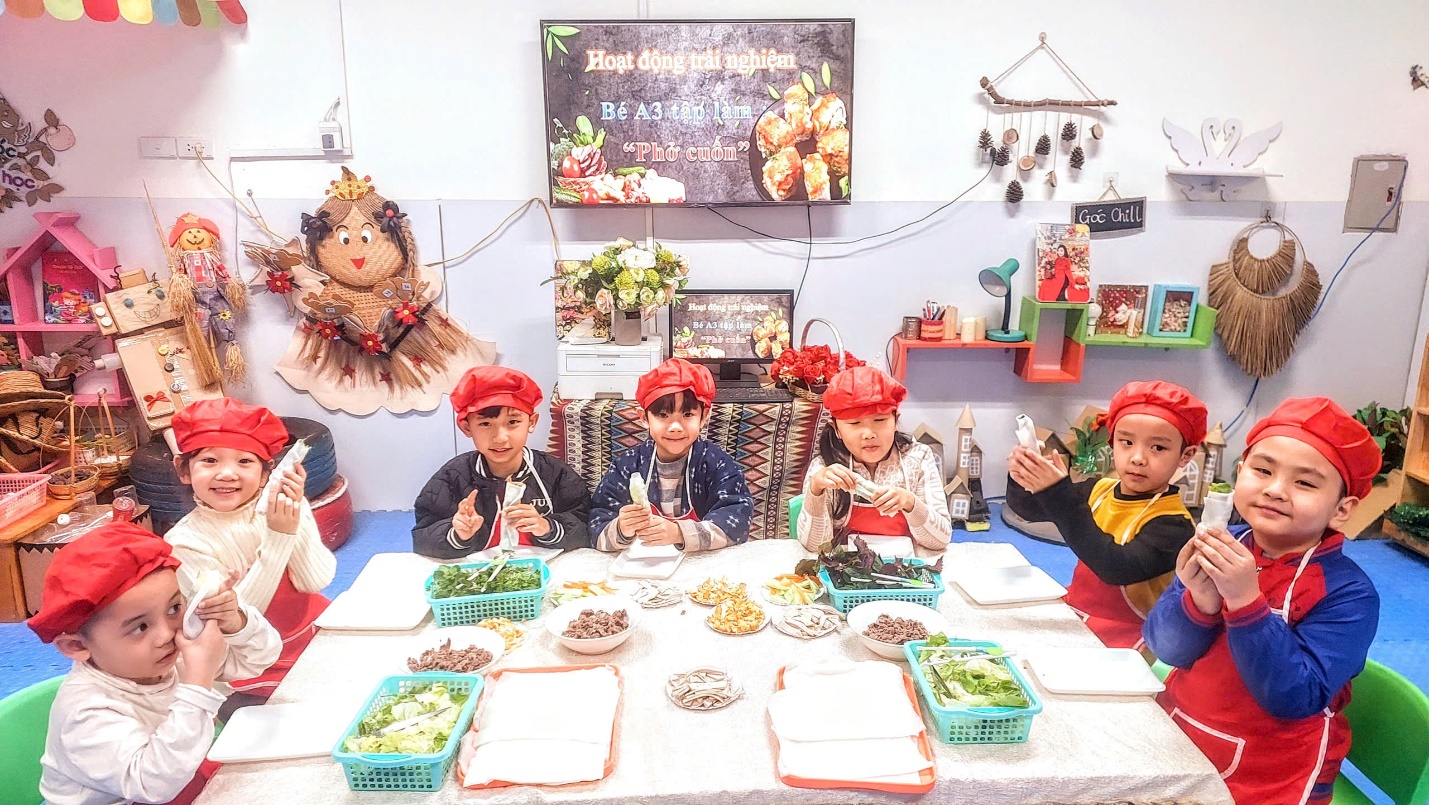 Ngày hôm nay, Các bé A3 đã được trải nghiệm món phở cuốn hết sức thơm ngon và hấp dẫn. Dưới bàn tay của các đầu bếp nhí tài ba, món phở cuốn trở thành một món ăn đặc sắc và thanh mát cho những ngày sau tết thêm thi vị vui vẻ đấy.