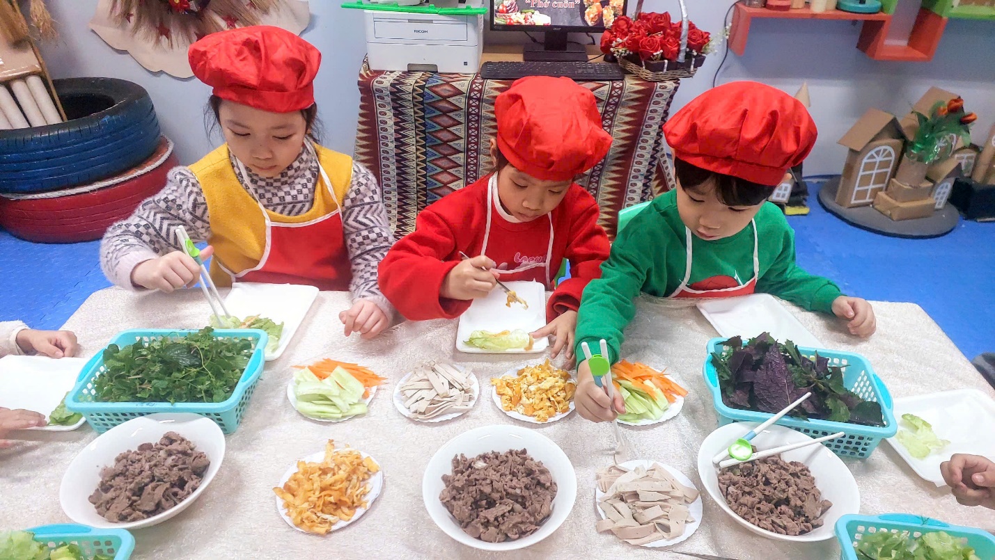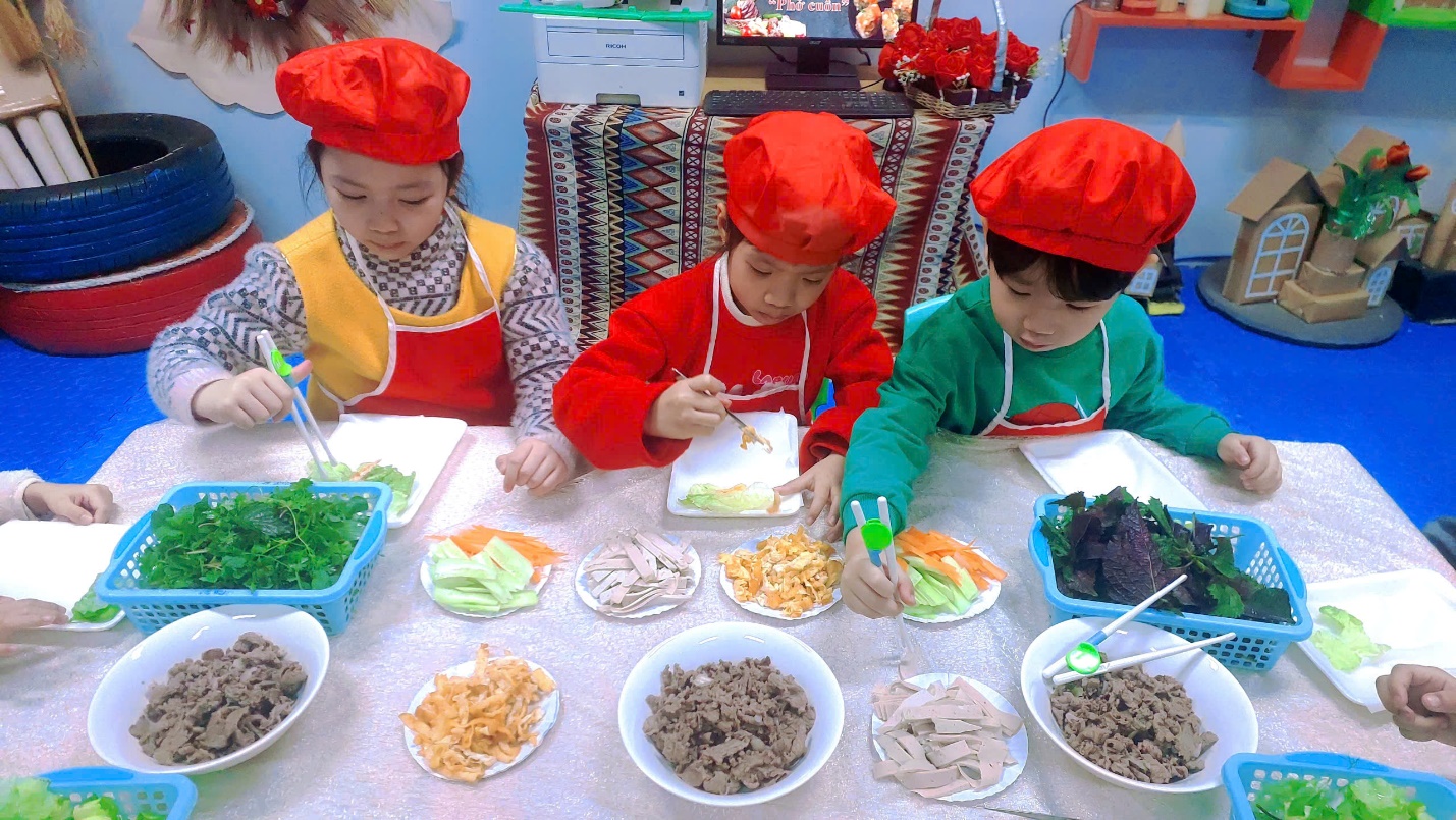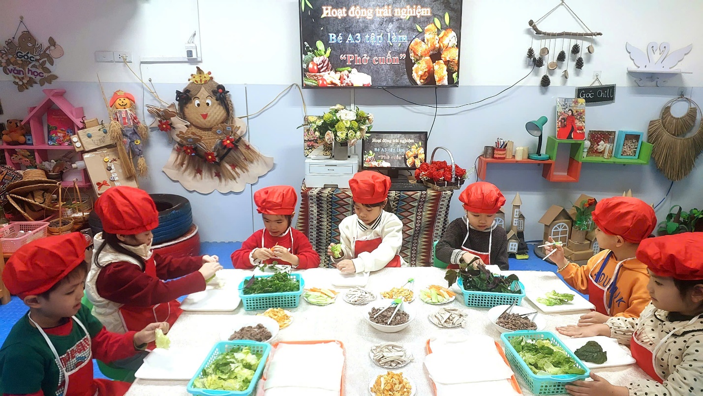 Ngày hôm nay, Các bé A3 đã được trải nghiệm món phở cuốn hết sức thơm ngon và hấp dẫn. Dưới bàn tay của các đầu bếp nhí tài ba, món phở cuốn trở thành một món ăn đặc sắc và thanh mát cho những ngày sau tết thêm thi vị vui vẻ đấy.