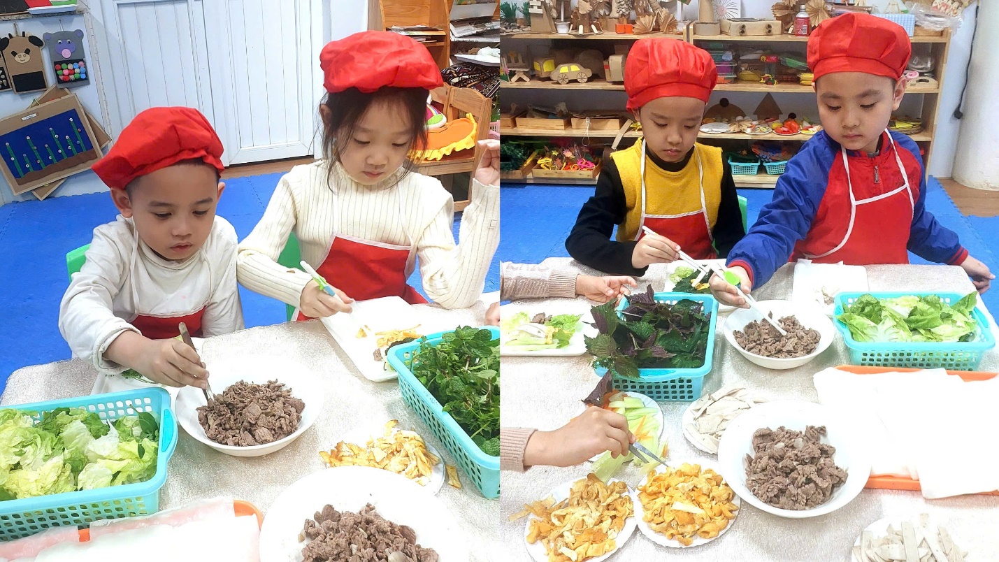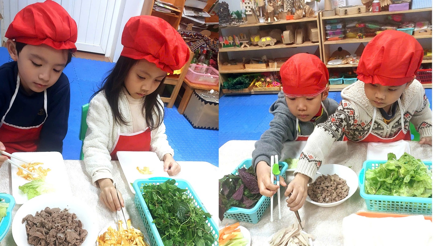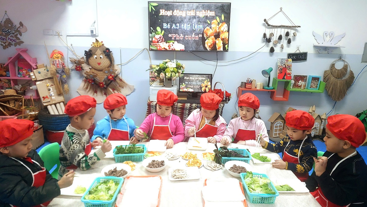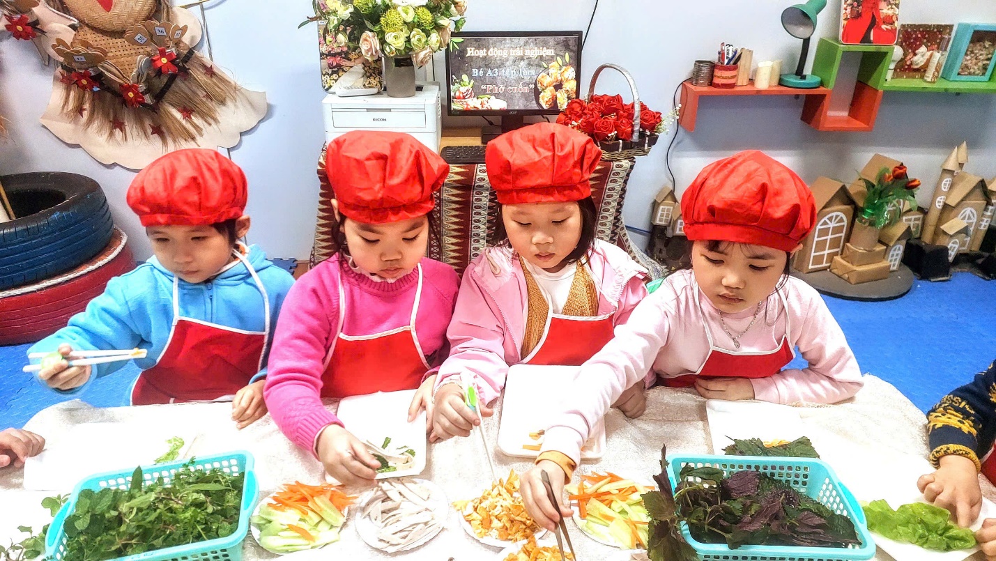 Ngày hôm nay, Các bé A3 đã được trải nghiệm món phở cuốn hết sức thơm ngon và hấp dẫn. Dưới bàn tay của các đầu bếp nhí tài ba, món phở cuốn trở thành một món ăn đặc sắc và thanh mát cho những ngày sau tết thêm thi vị vui vẻ đấy.