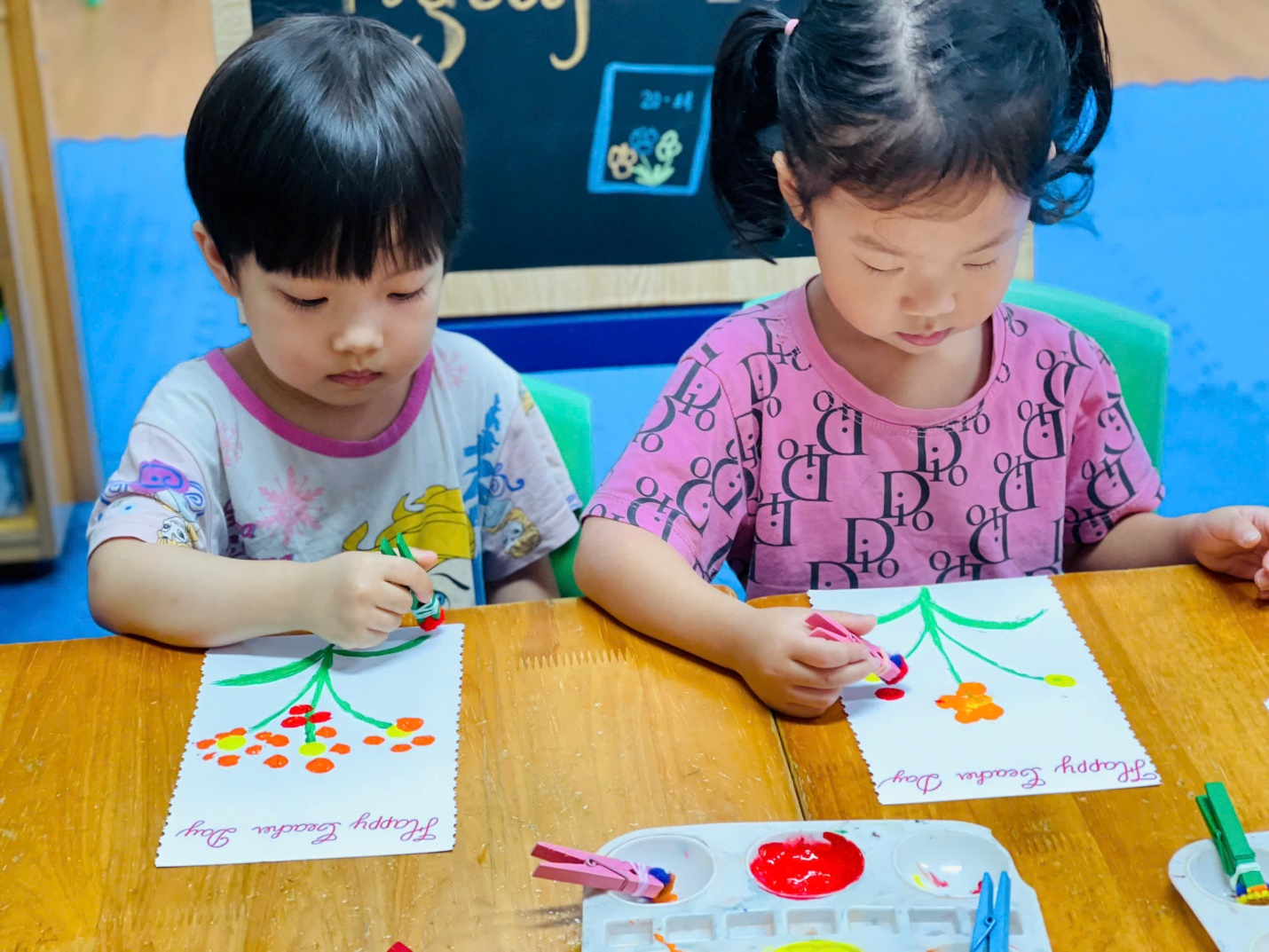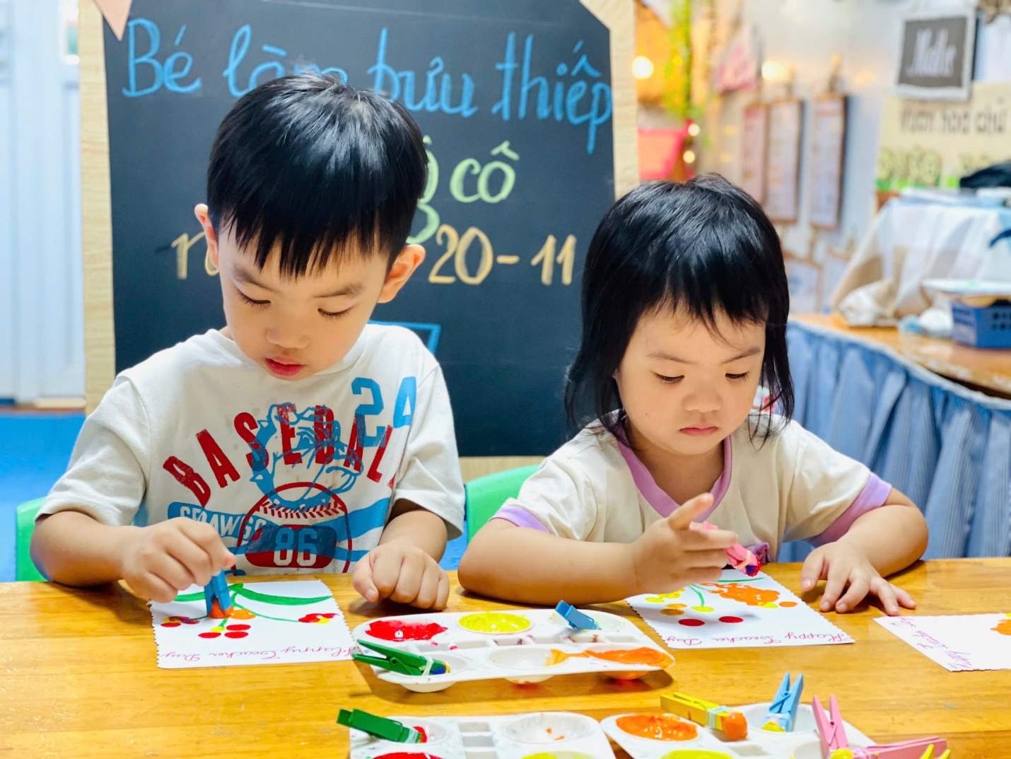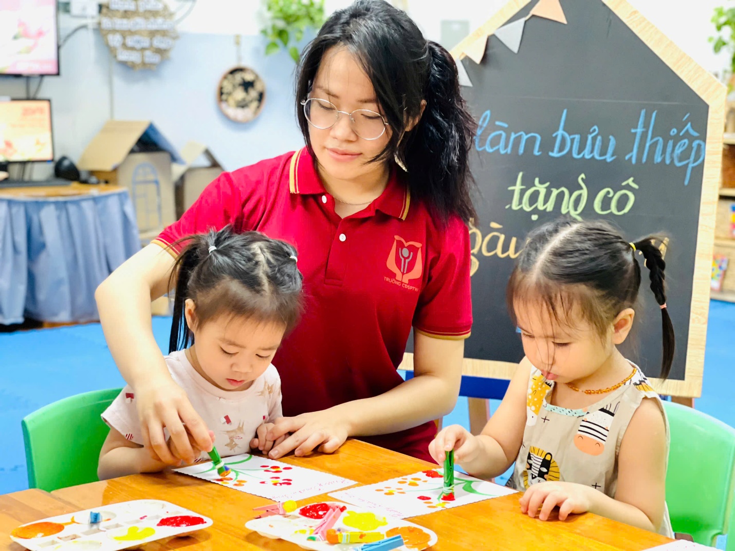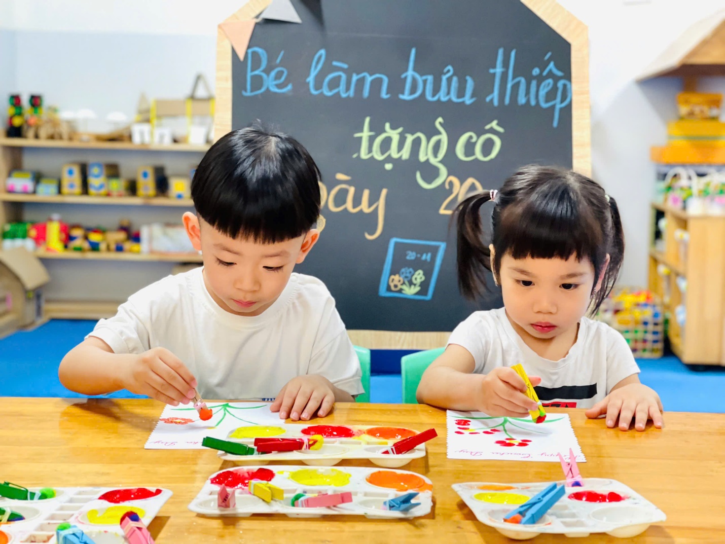 Bằng những nguyên liệu đơn giản sẵn có, như bìa màu trắng, quả bông, kẹp, màu nước. Các bạn nhỏ lớp C3 đã “Thiết kế” những tấm thiếp “Siêu đặc biệt” dành tặng các cô nhân ngày 20/11. Mời bố mẹ cùng ngắm xem các bạn nhỏ lớp mẫu giáo bé C3 đã say sưa thích thú làm bưu thiếp như thế nào nhé!