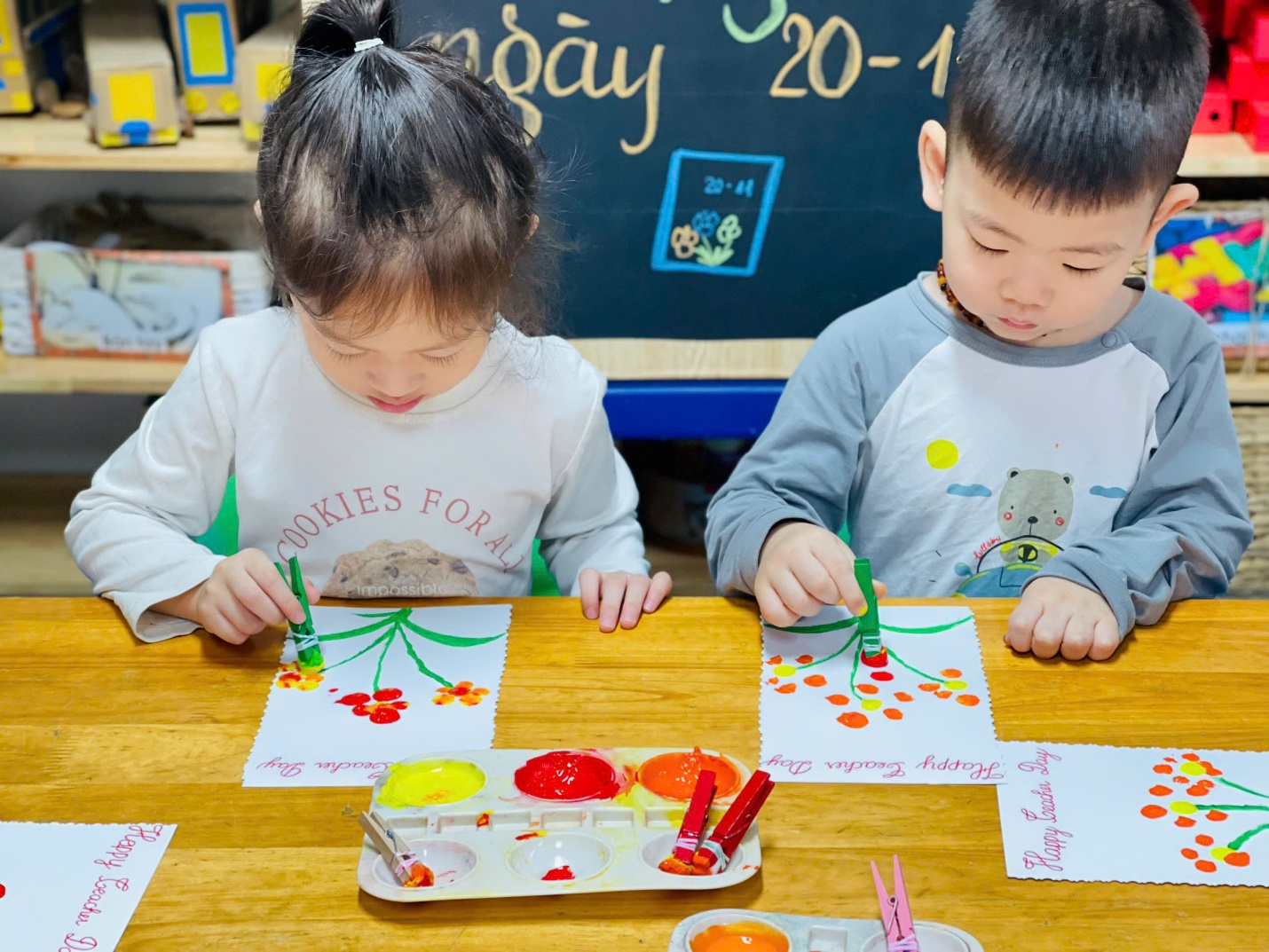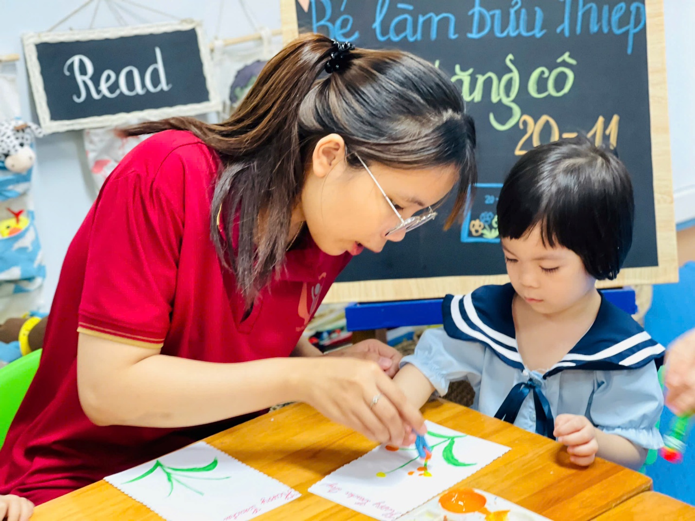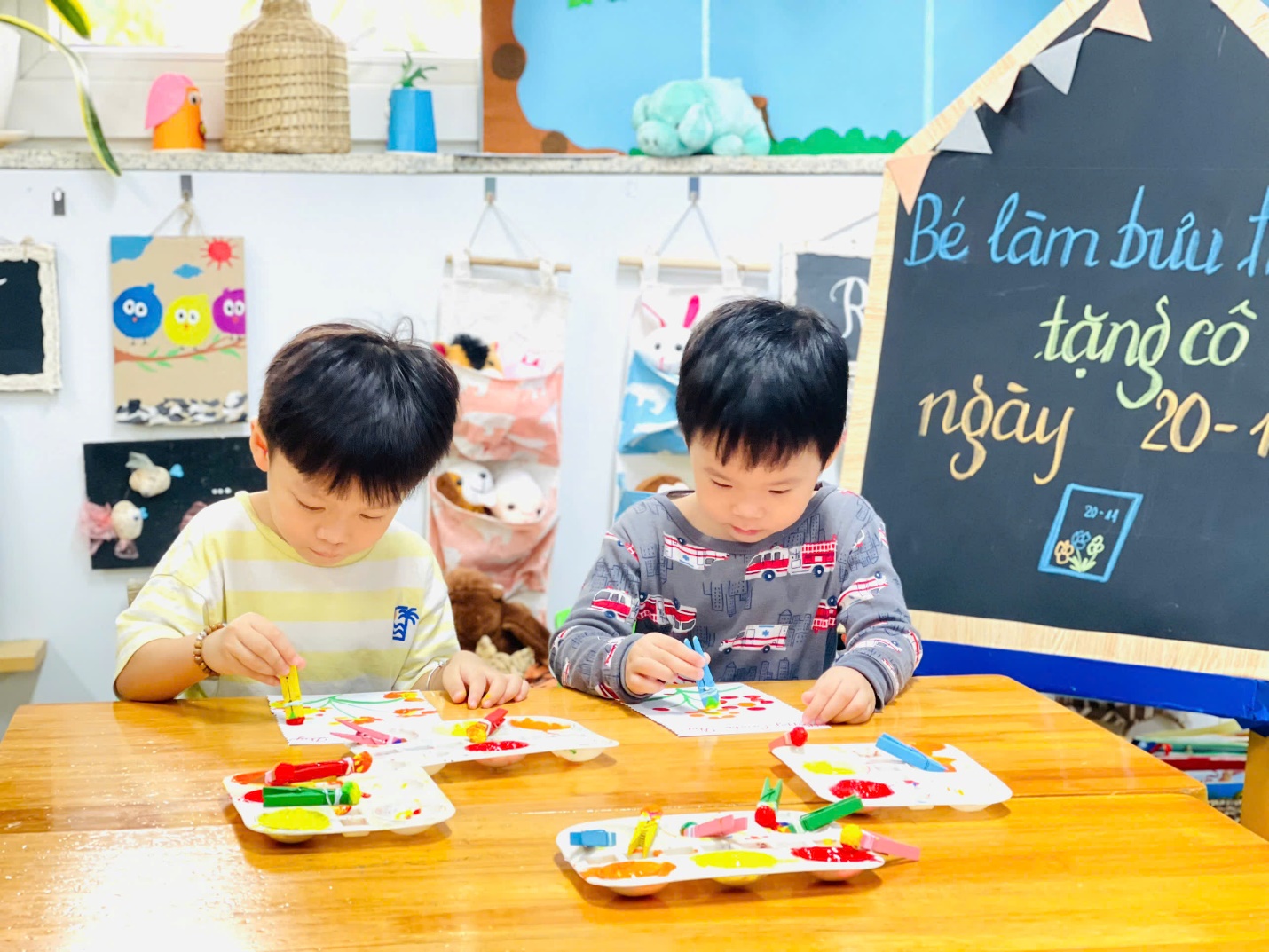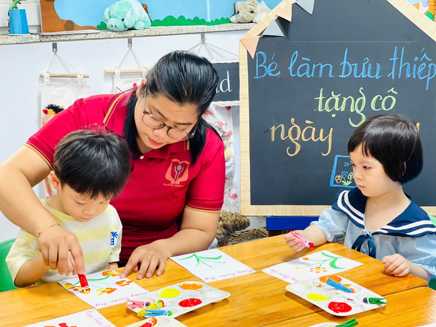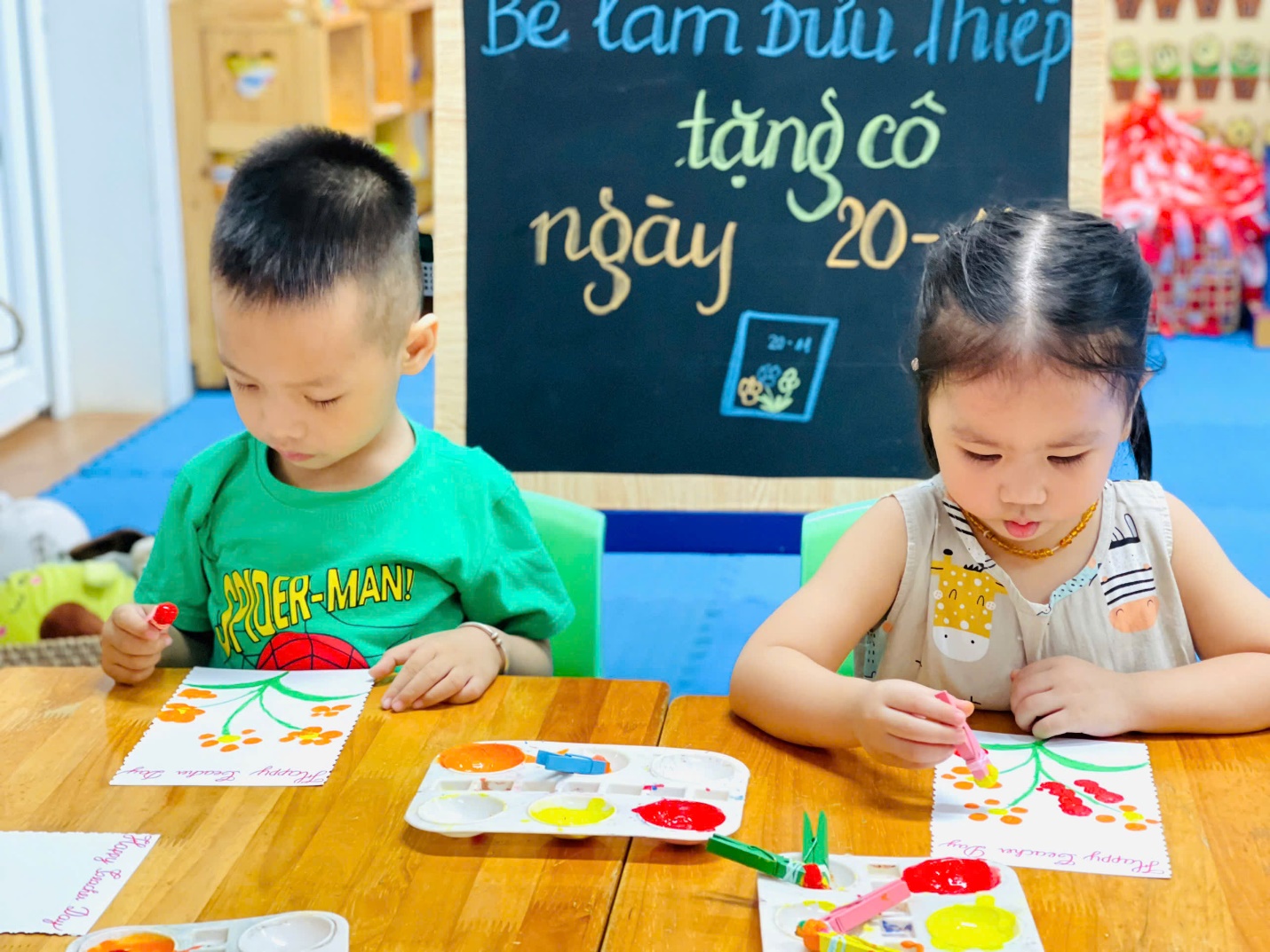 Hôm nay các bạn nhỏ lớp C3 đã làm tấm bưu thiếp thật đẹp để tặng các cô nhân ngày 20 – 11. Các con rất vui, thích thú, hào hứng tham gia. Qua đây cũng giúp các con biết cách bày tỏ tình cảm, bày tỏ lòng biết ơn của mình đối với cô giáo.
