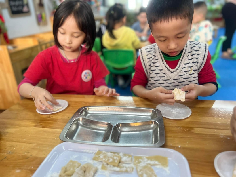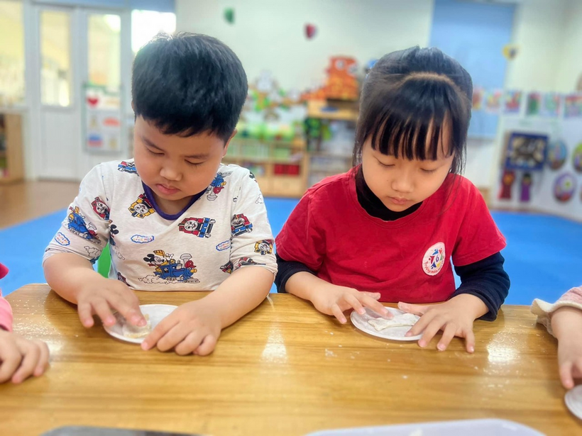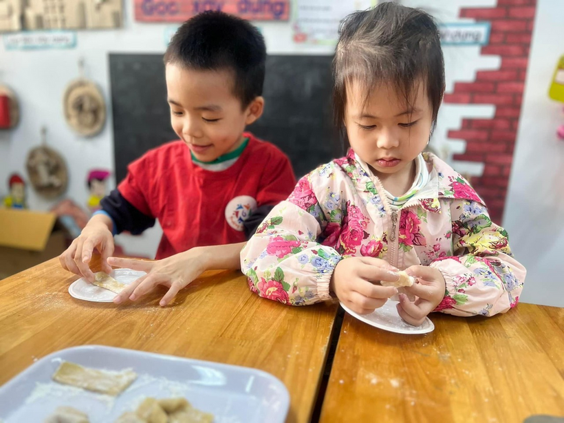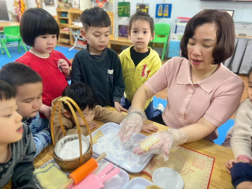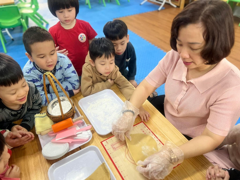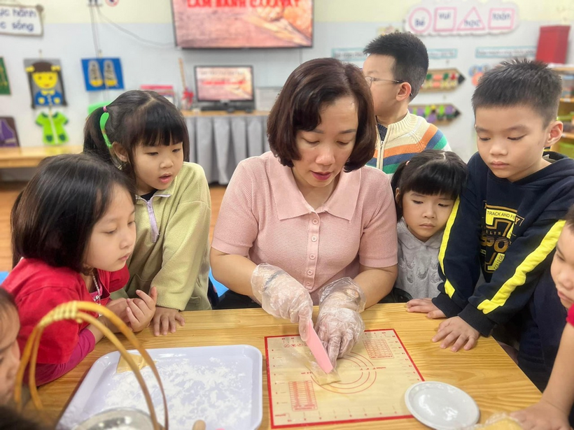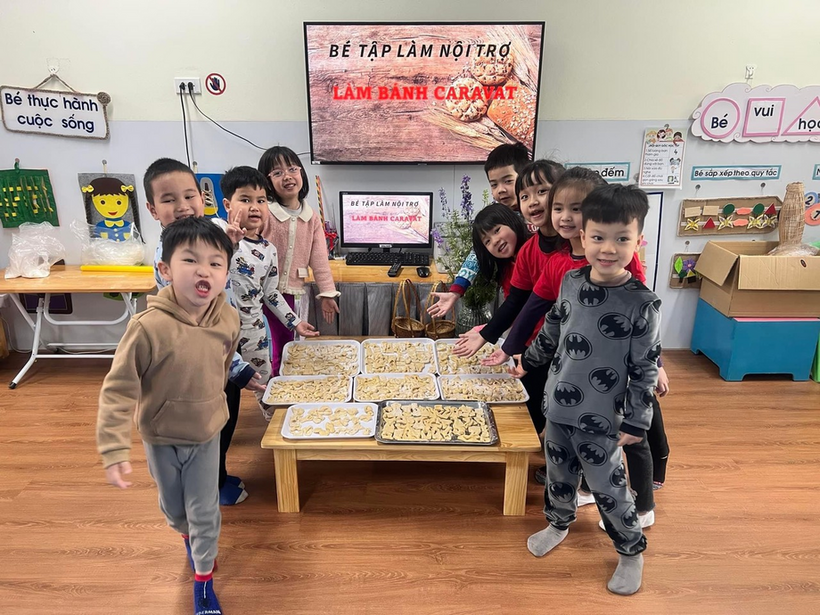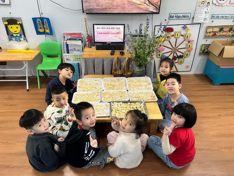 “Chúng con làm được nhiều bánh không ạ? Chúng con sẽ mang bánh về mời ông bà, bố mẹ và các cô giáo!"