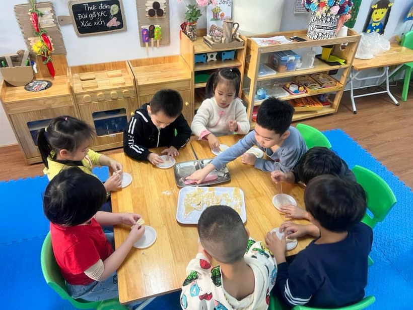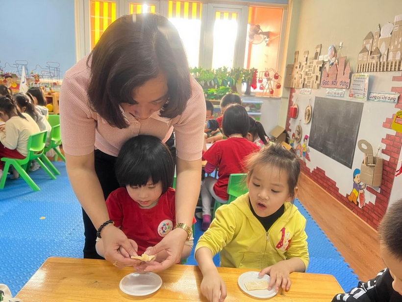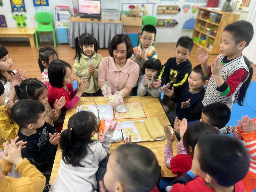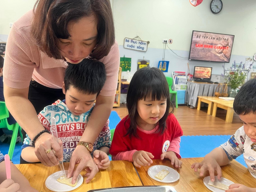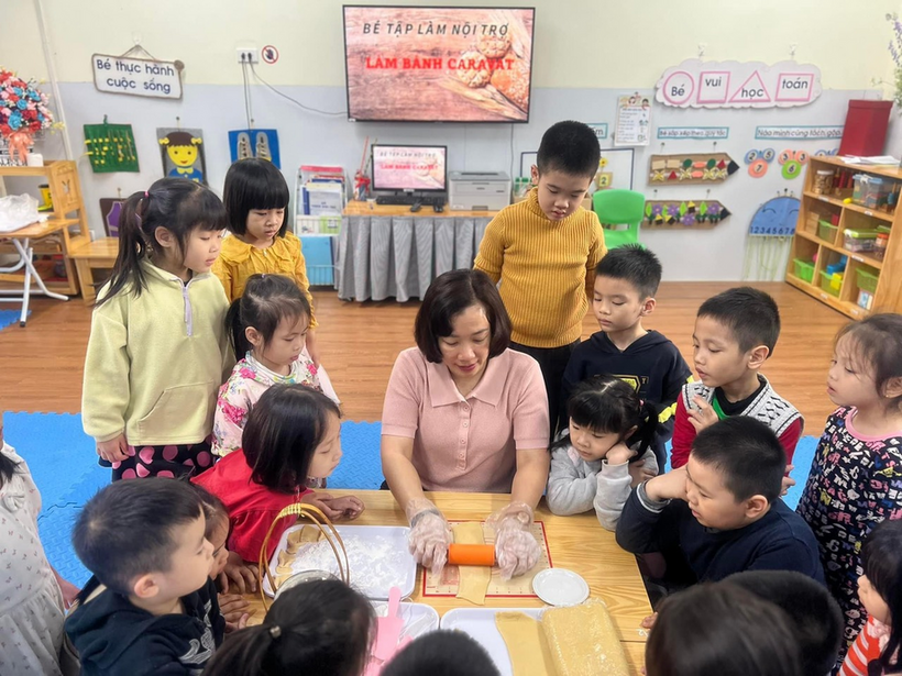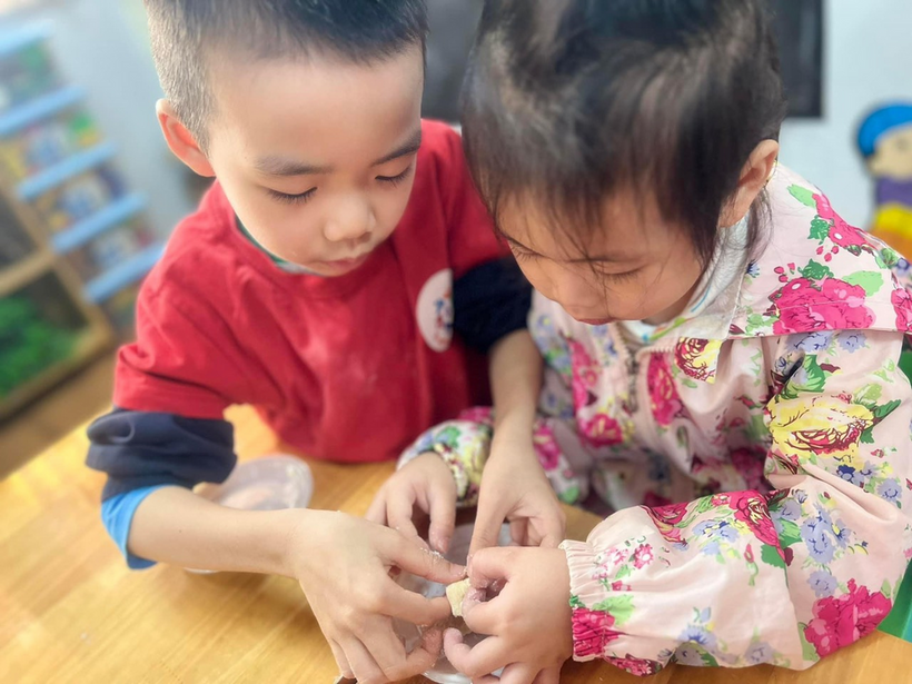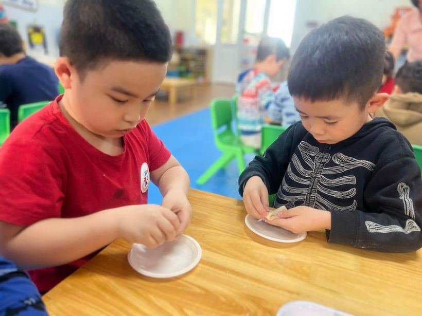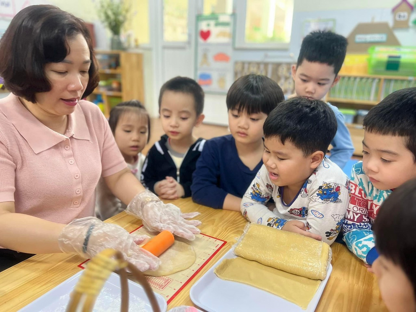 “Chúng con làm được nhiều bánh không ạ? Chúng con sẽ mang bánh về mời ông bà, bố mẹ và các cô giáo!"