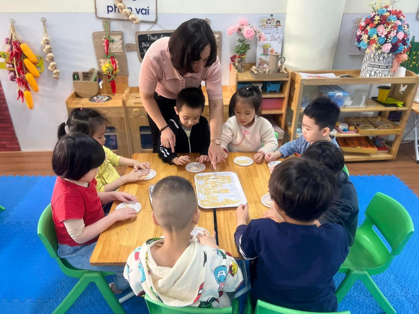 Các cô hướng dẫn các bé rất cẩn thận nhé!