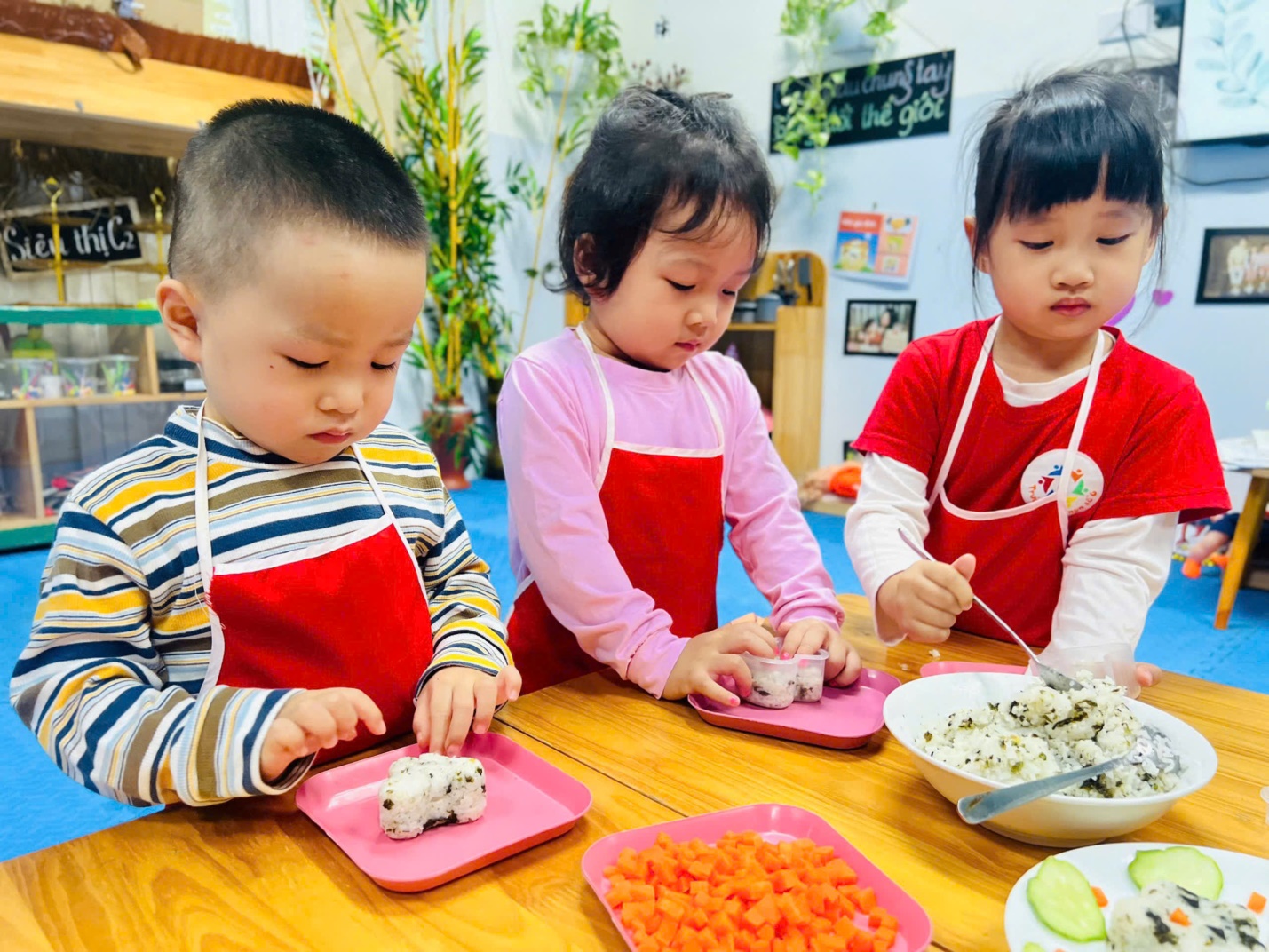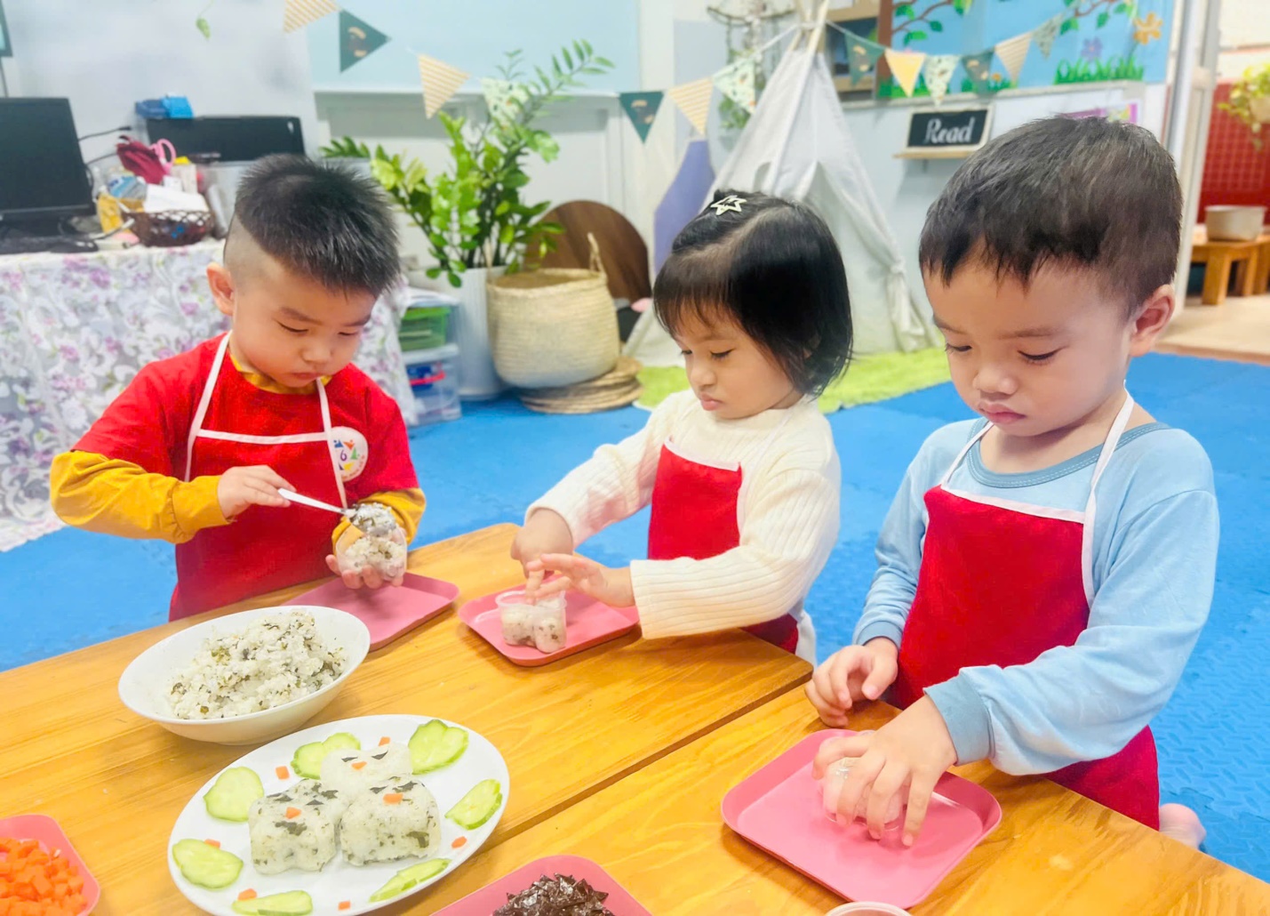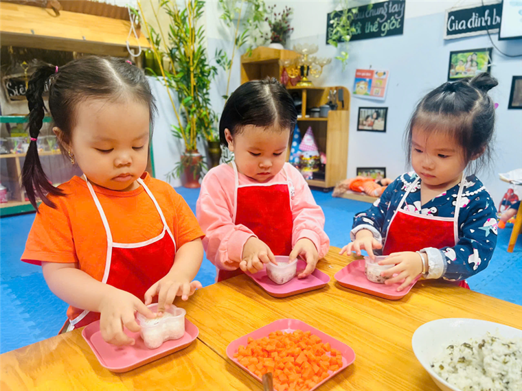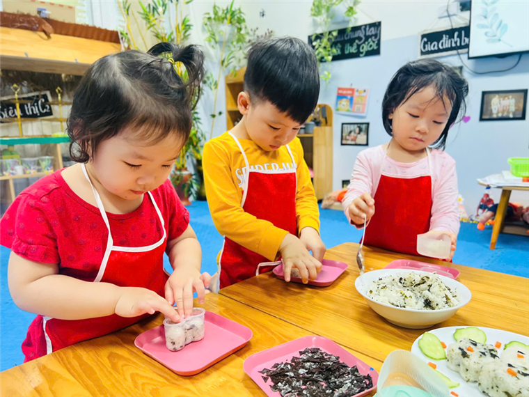 Các con tự tay làm cơm Bento.