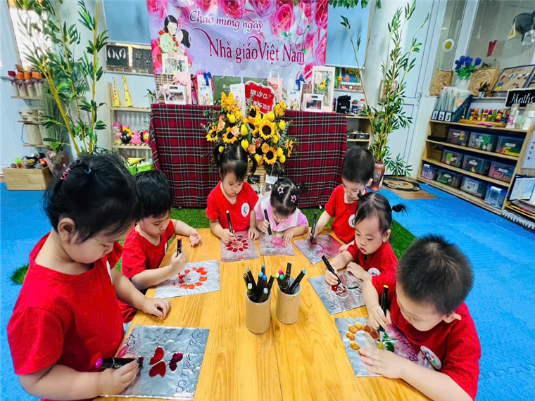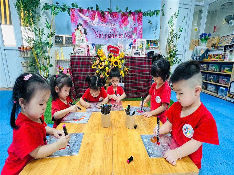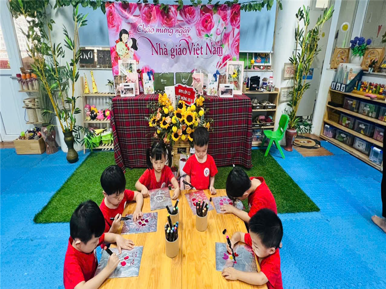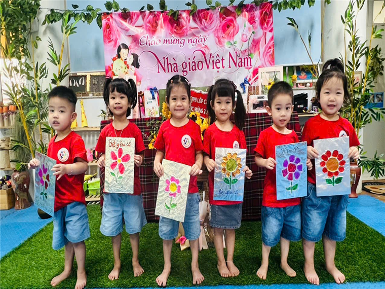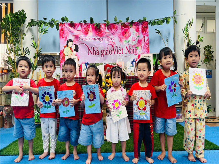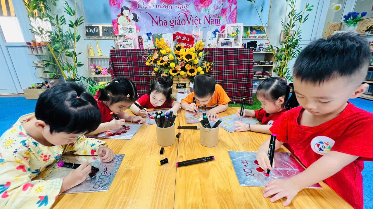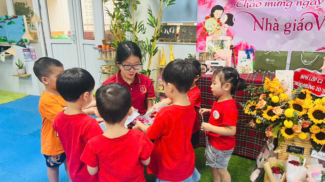 Đối với cô giáo, những món quà nhỏ ngộ nghĩnh và những lời chúc ngọt ngào là nguồn động viên rất lớn tiếp thêm động lực cho các cô chăm sóc dạy dỗ các con. Mỗi bức tranh bé làm là một minh chứng cho tình yêu thương, sự quan tâm và lòng biết ơn mà các bạn nhỏ dành tặng cô. Khi tất cả các bức tranh đã hoàn thành, các bé sẽ có cơ hội trao tặng trực tiếp cho cô giáo. Đây là một khoảnh khắc đầy xúc động, những món quà nhỏ bé được trao đi cùng những lời chúc tốt đẹp. Cô giáo rất vui khi đón nhận tình cảm chân thành và lòng biết ơn từ các học trò yêu quý của mình. Sau đây là một số hình ảnh của hoạt động đầy ý nghĩa này: