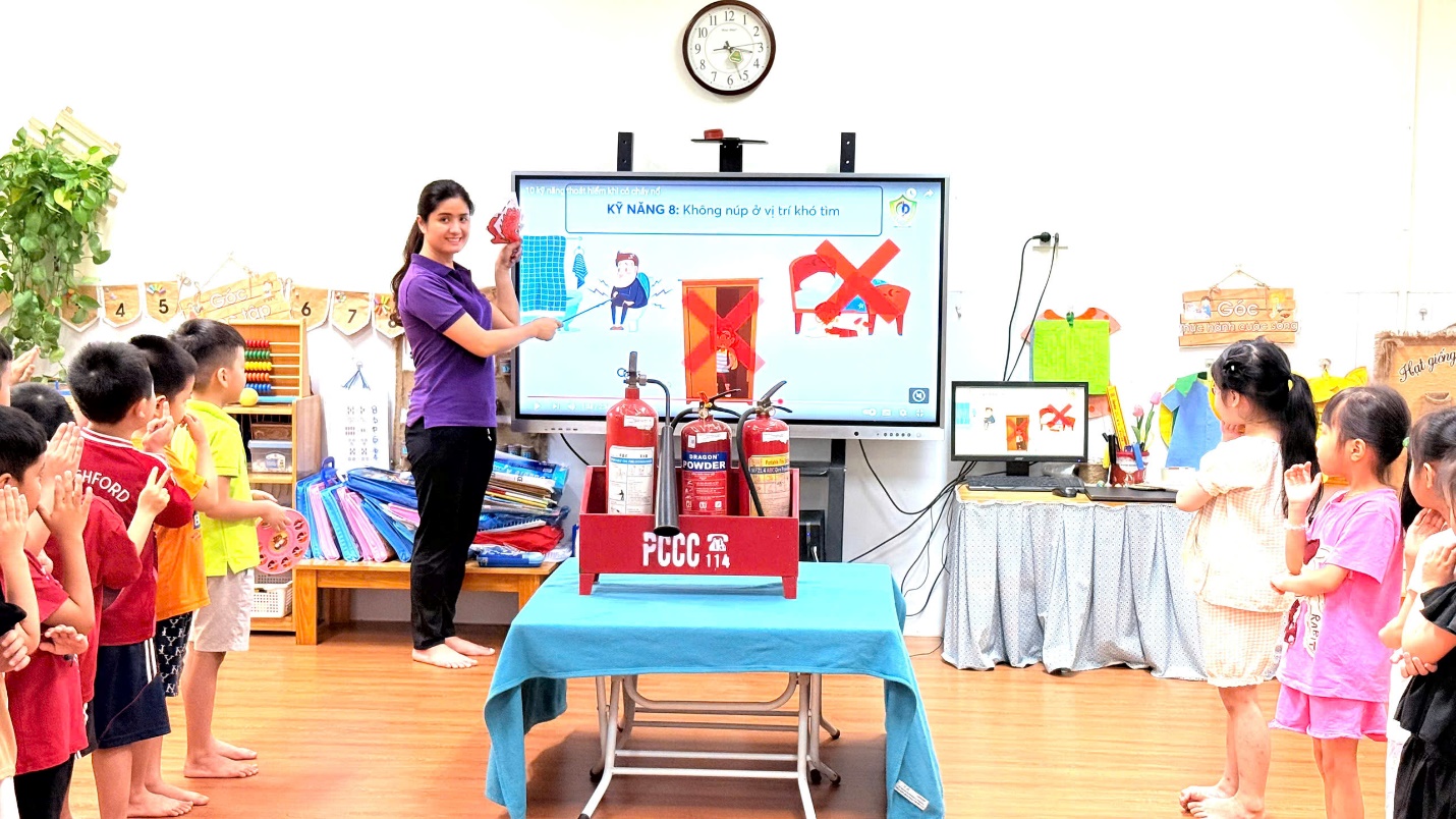 *Các bài học về PCCC thường được lồng ghép vào các hoạt động hằng ngày và sử dụng phương pháp trực quan để trẻ dễ dàng tiếp thu. Đồng thời, các hoạt động trải nghiệm thực tế như diễn tập PCCC giúp trẻ ghi nhớ lâu dài các kỹ năng cần thiết.Giáo dục PCCC cho trẻ mầm non không chỉ là trang bị kiến thức, mà còn là rèn luyện cho trẻ tính kỷ luật và ý thức bảo vệ bản thân và những người xung quanh trong mọi tình huống.