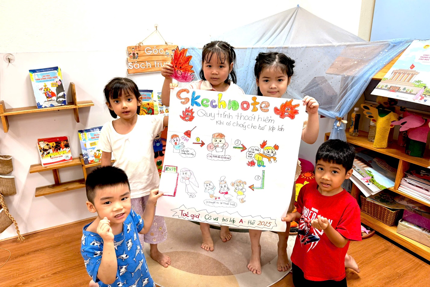 Cùng cô lập sketchnote kỹ năng thoát hiểm tại trường Mầm Non khi có cháy