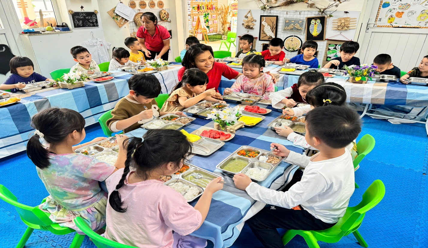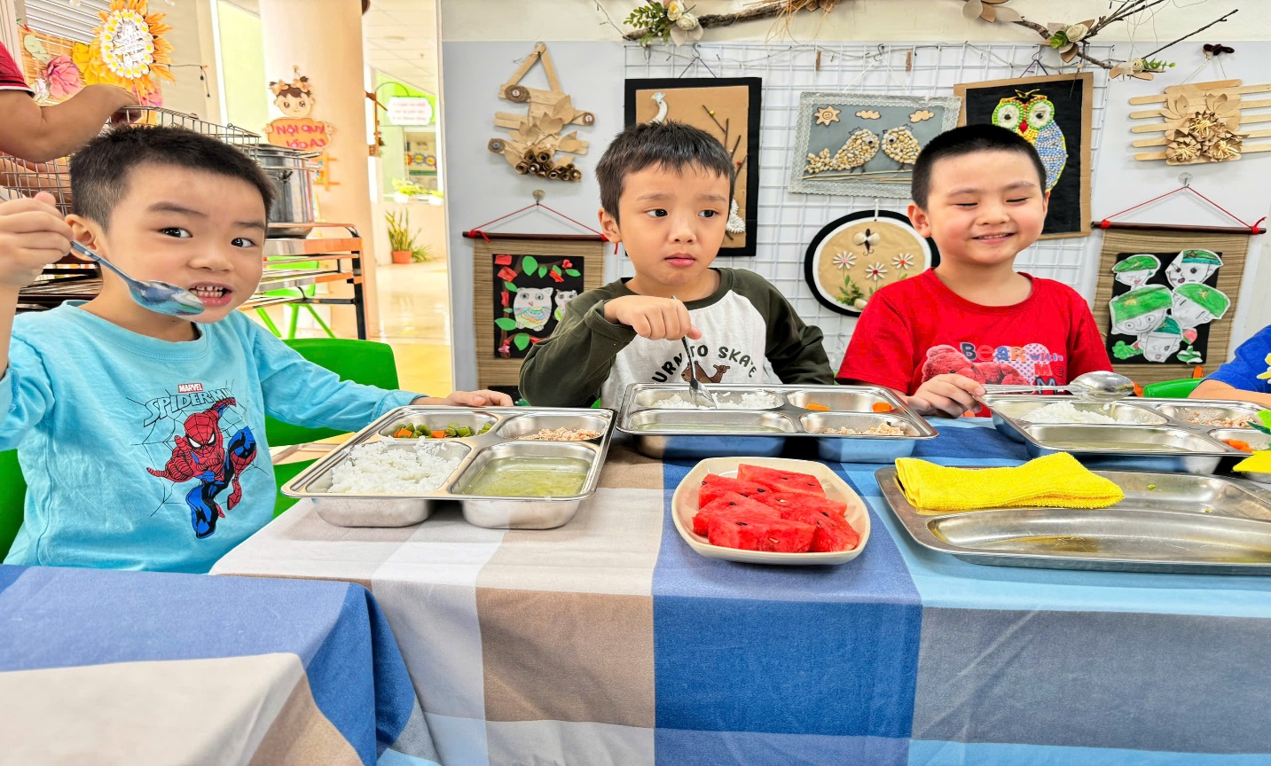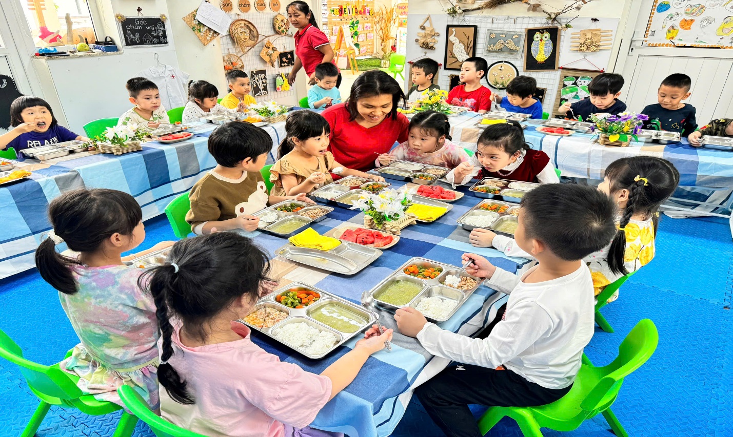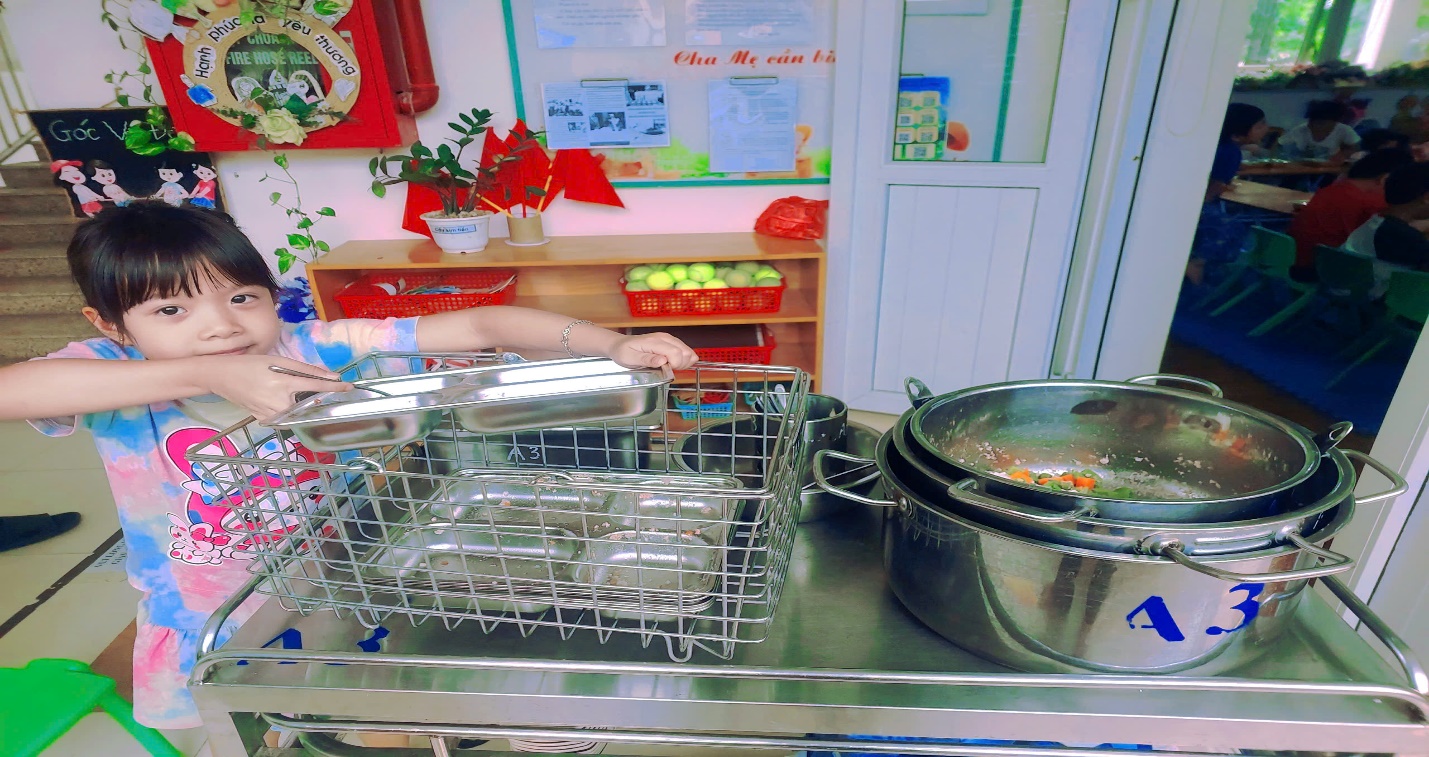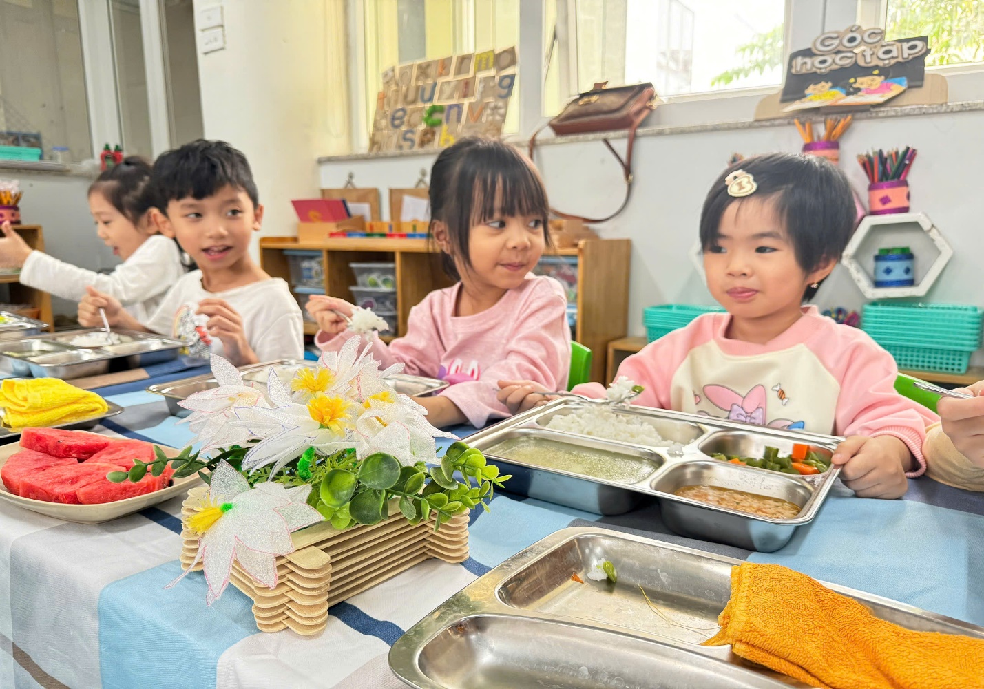 Ăn trưa là một hoạt động thường nhật của các bạn nhỏ tại trường Mầm non số 6. Hàng ngày, các bác cấp dưỡng đã xây dựng thực đơn theo tuần, tháng, mùa và nấu rất nhiều món ăn thơm ngon, đầy đủ chất dinh dưỡng dành cho các bạn nhỏ đấy! Thông qua hoạt động ăn trưa, các con được ăn rất nhiều món ăn ngon, được cùng nhau quây quần ấm cúng giao lưu thân mật như bữa ăn tại gia đình mình vậy. Các con cũng được làm quen và tập ăn rất nhiều các món ăn mới đầy đủ dinh dưỡng, biết được các món ăn ngon có những nguyên liệu gì để làm ra nó, từ đó nâng cao vốn hiểu biết và trải nghiệm cho bé. Để biến giờ ăn của các con thêm hấp dẫn và vui vẻ, hôm nay các cô giáo A3 đã tổ chức cho các con ăn khay theo định lượng suất ăn…Trước giờ ăn, các bạn vui vẻ háo hức lắm, giúp cô trang trí bày biện lớp như một buổi tiệc, cùng cô chuẩn bị đồ dùng dụng cụ, chia ăn, tìm hiểu thực đơn của hôm nay rồi ăn cơm thật nhanh và vui vẻ. Ai ai cũng cố gắng ăn hết suất! Cùng ngắm nhìn một số hình ảnh của các con nhé!