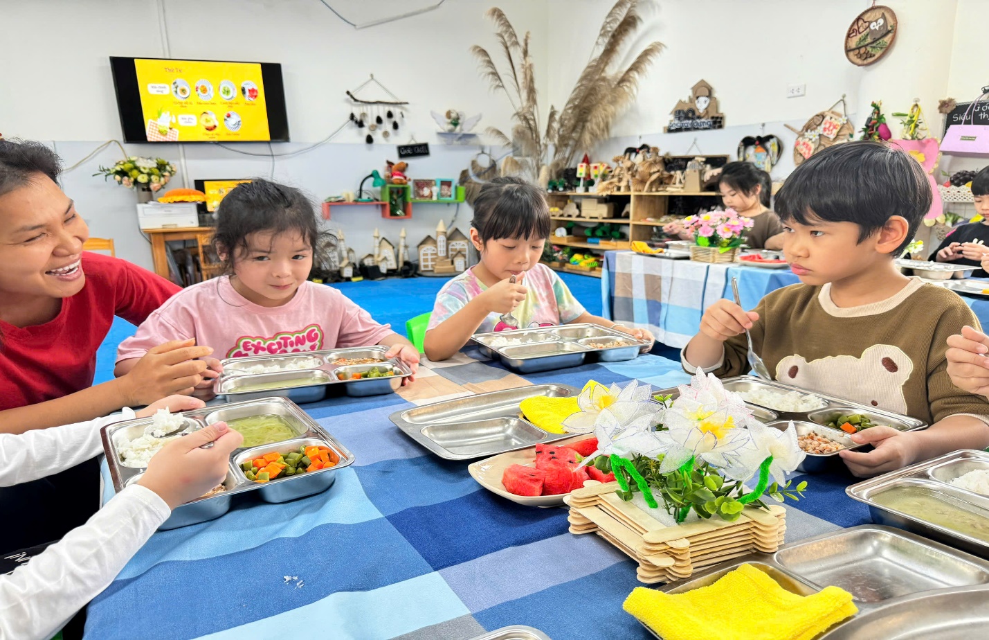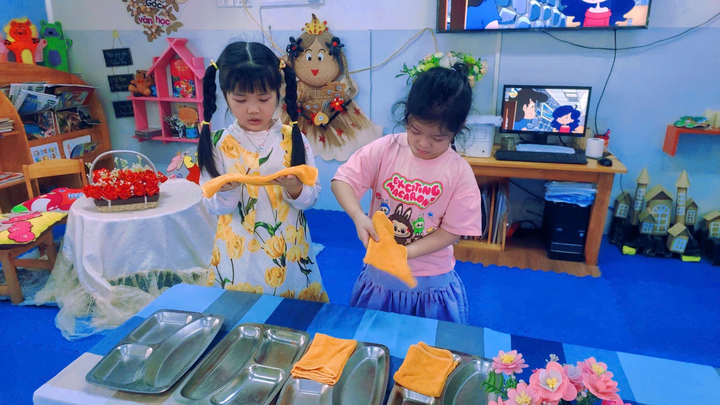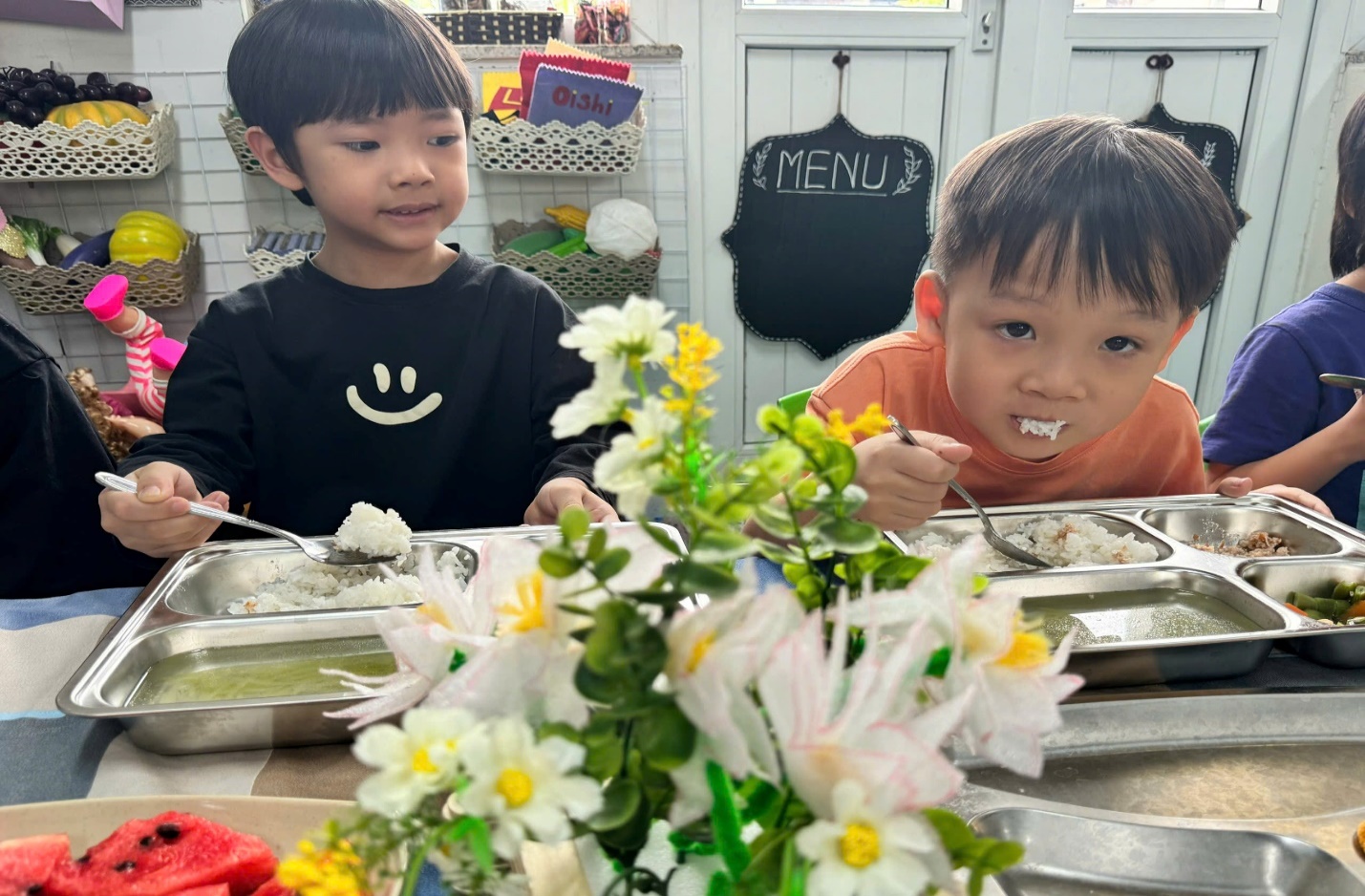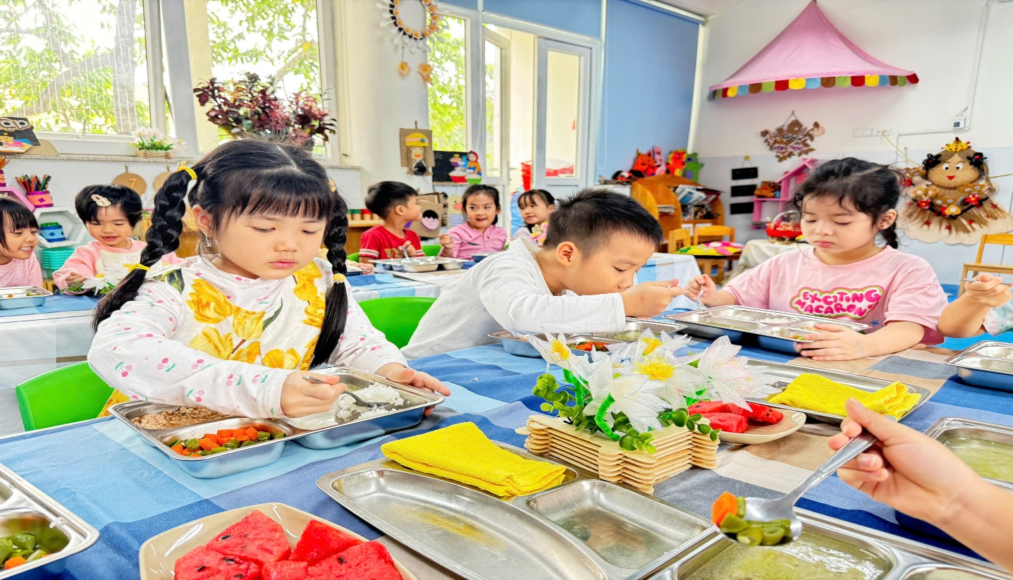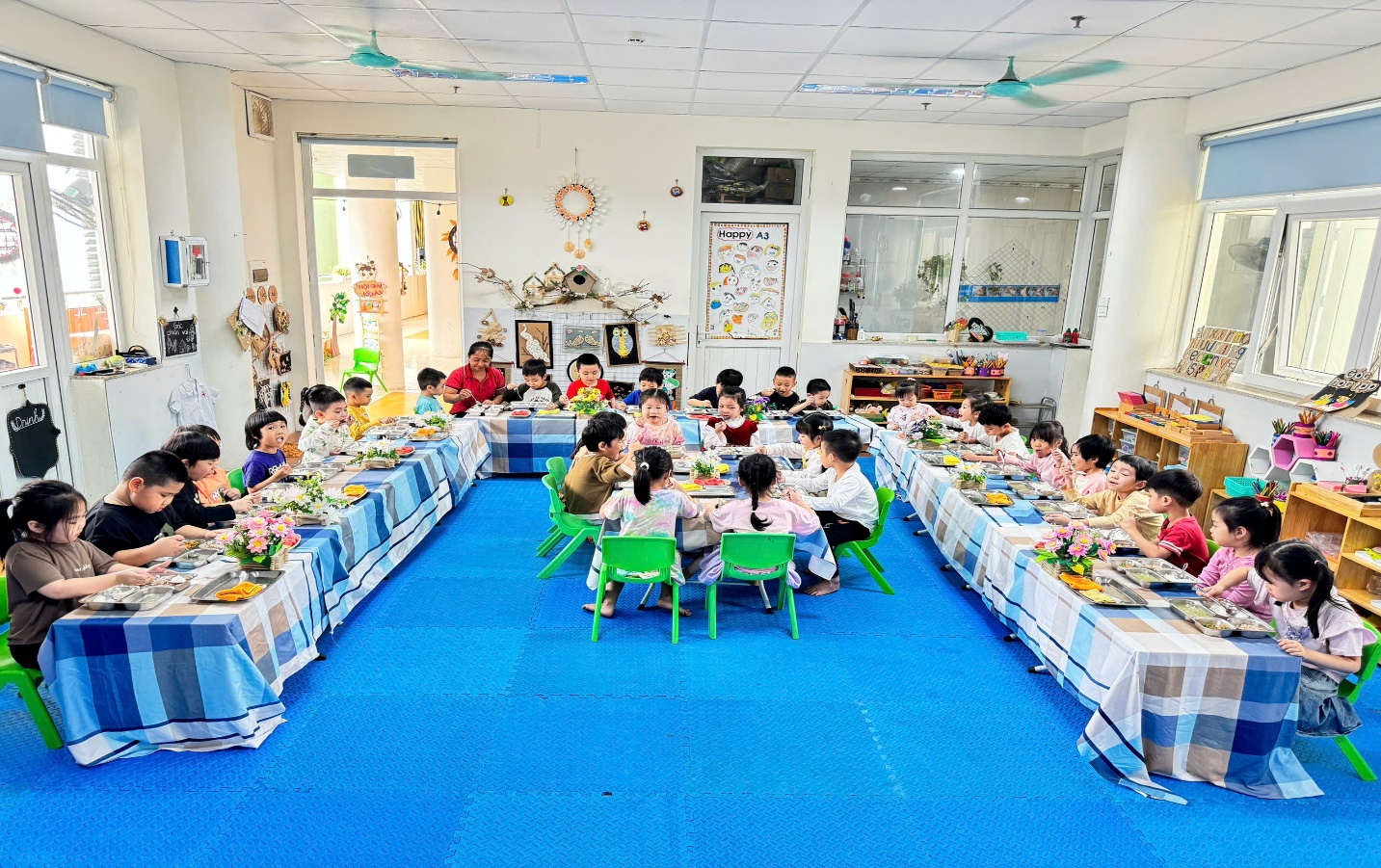 Ăn trưa là một hoạt động thường nhật của các bạn nhỏ tại trường Mầm non số 6. Hàng ngày, các bác cấp dưỡng đã xây dựng thực đơn theo tuần, tháng, mùa và nấu rất nhiều món ăn thơm ngon, đầy đủ chất dinh dưỡng dành cho các bạn nhỏ đấy! Thông qua hoạt động ăn trưa, các con được ăn rất nhiều món ăn ngon, được cùng nhau quây quần ấm cúng giao lưu thân mật như bữa ăn tại gia đình mình vậy. Các con cũng được làm quen và tập ăn rất nhiều các món ăn mới đầy đủ dinh dưỡng, biết được các món ăn ngon có những nguyên liệu gì để làm ra nó, từ đó nâng cao vốn hiểu biết và trải nghiệm cho bé. Để biến giờ ăn của các con thêm hấp dẫn và vui vẻ, hôm nay các cô giáo A3 đã tổ chức cho các con ăn khay theo định lượng suất ăn…Trước giờ ăn, các bạn vui vẻ háo hức lắm, giúp cô trang trí bày biện lớp như một buổi tiệc, cùng cô chuẩn bị đồ dùng dụng cụ, chia ăn, tìm hiểu thực đơn của hôm nay rồi ăn cơm thật nhanh và vui vẻ. Ai ai cũng cố gắng ăn hết suất! Cùng ngắm nhìn một số hình ảnh của các con nhé!