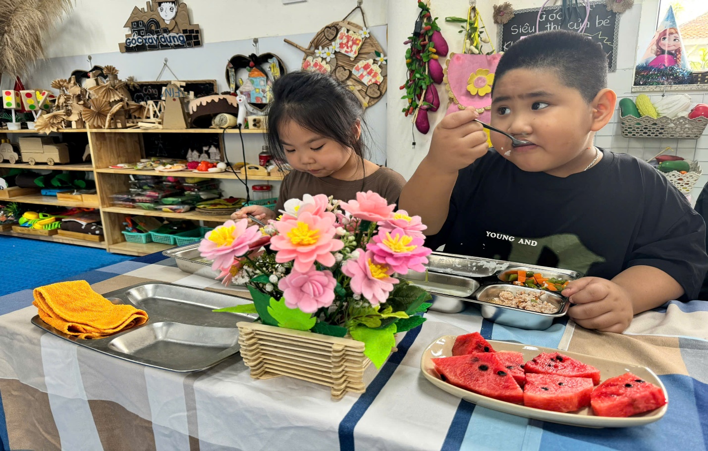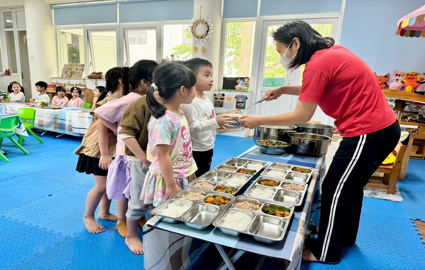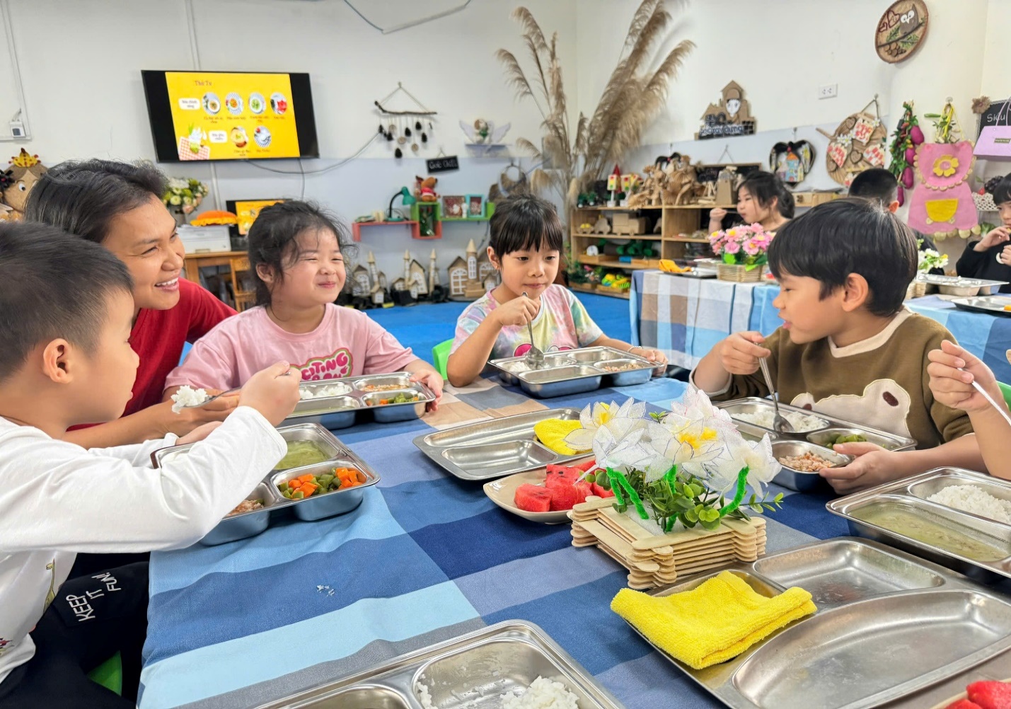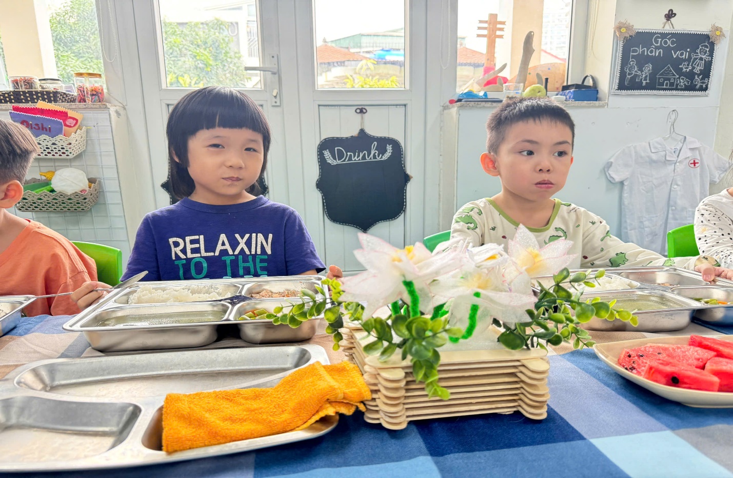 Ăn trưa là một hoạt động thường nhật của các bạn nhỏ tại trường Mầm non số 6. Hàng ngày, các bác cấp dưỡng đã xây dựng thực đơn theo tuần, tháng, mùa và nấu rất nhiều món ăn thơm ngon, đầy đủ chất dinh dưỡng dành cho các bạn nhỏ đấy! Thông qua hoạt động ăn trưa, các con được ăn rất nhiều món ăn ngon, được cùng nhau quây quần ấm cúng giao lưu thân mật như bữa ăn tại gia đình mình vậy. Các con cũng được làm quen và tập ăn rất nhiều các món ăn mới đầy đủ dinh dưỡng, biết được các món ăn ngon có những nguyên liệu gì để làm ra nó, từ đó nâng cao vốn hiểu biết và trải nghiệm cho bé. Để biến giờ ăn của các con thêm hấp dẫn và vui vẻ, hôm nay các cô giáo A3 đã tổ chức cho các con ăn khay theo định lượng suất ăn…Trước giờ ăn, các bạn vui vẻ háo hức lắm, giúp cô trang trí bày biện lớp như một buổi tiệc, cùng cô chuẩn bị đồ dùng dụng cụ, chia ăn, tìm hiểu thực đơn của hôm nay rồi ăn cơm thật nhanh và vui vẻ. Ai ai cũng cố gắng ăn hết suất! Cùng ngắm nhìn một số hình ảnh của các con nhé!