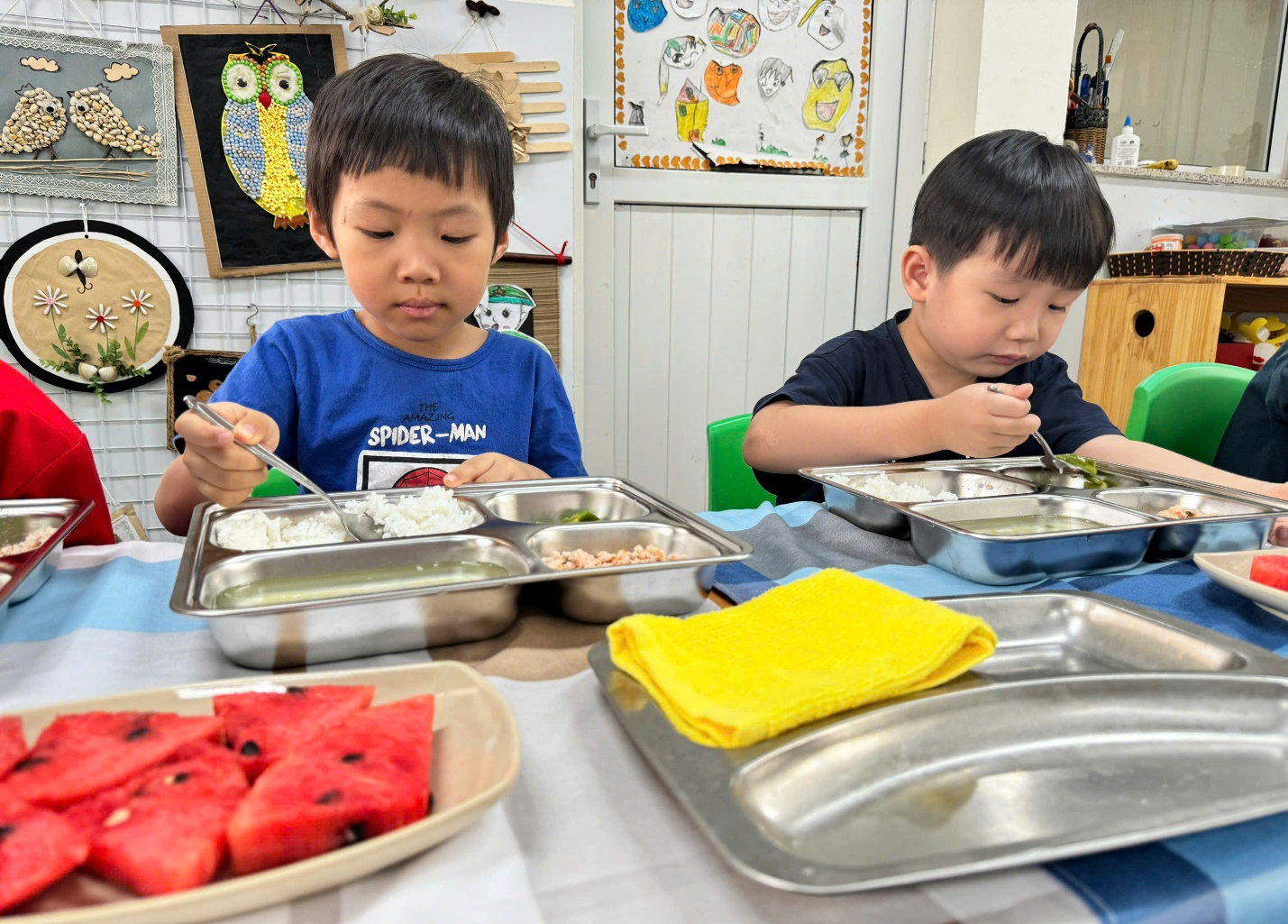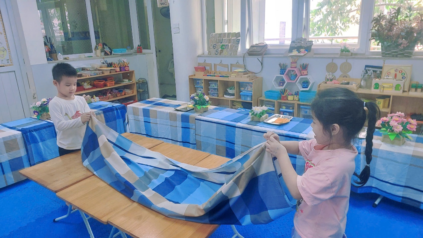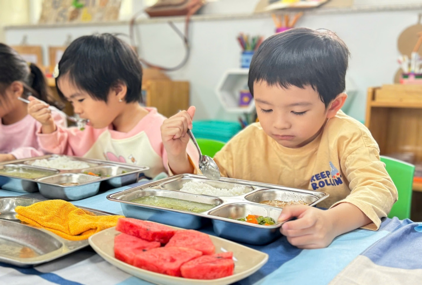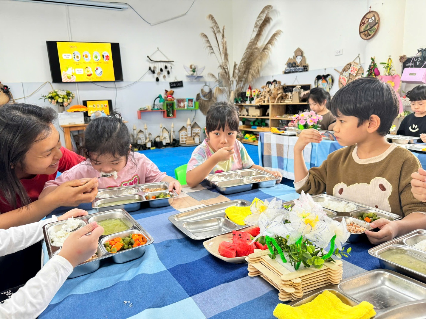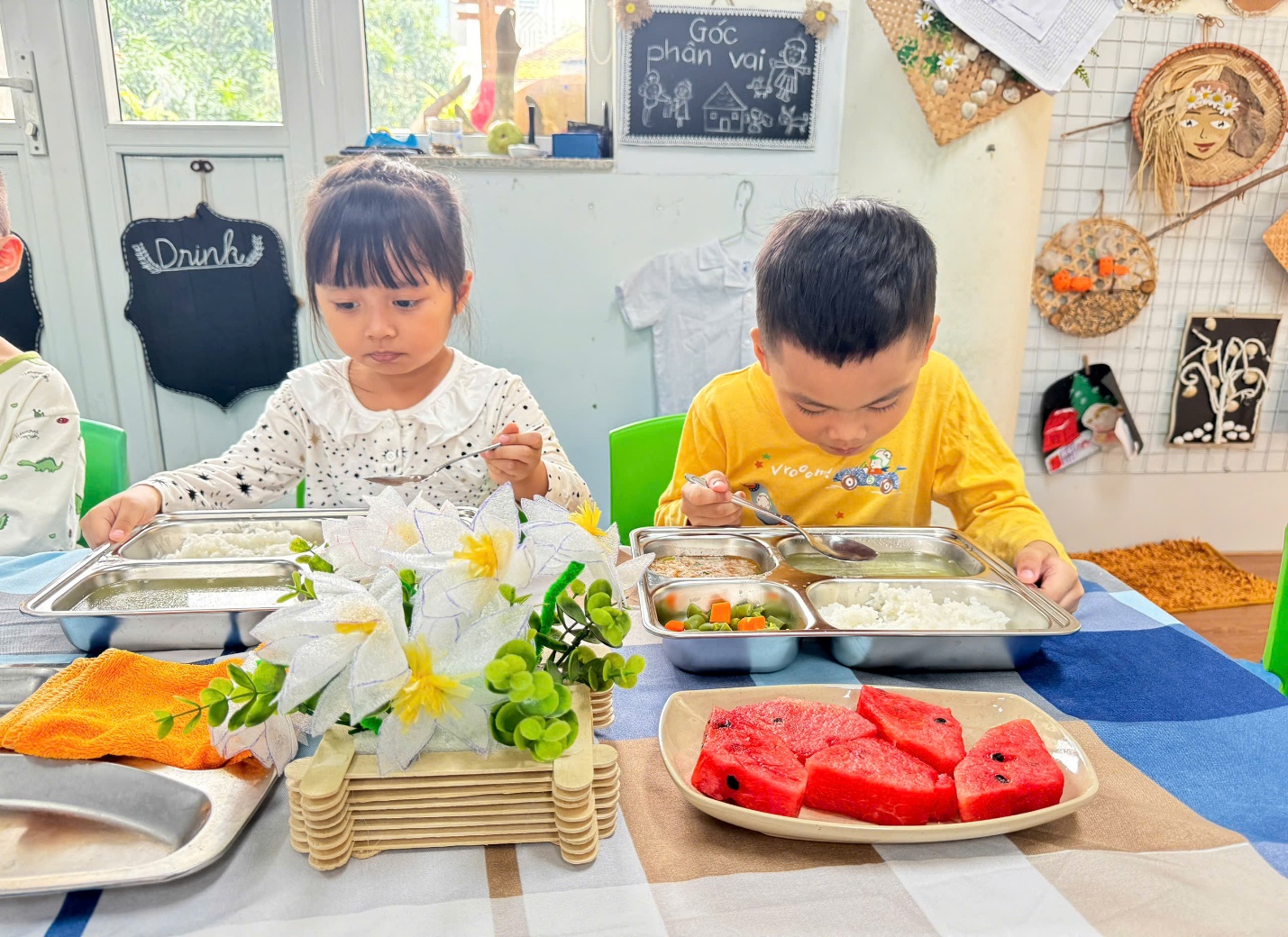 Ăn trưa là một hoạt động thường nhật của các bạn nhỏ tại trường Mầm non số 6. Hàng ngày, các bác cấp dưỡng đã xây dựng thực đơn theo tuần, tháng, mùa và nấu rất nhiều món ăn thơm ngon, đầy đủ chất dinh dưỡng dành cho các bạn nhỏ đấy! Thông qua hoạt động ăn trưa, các con được ăn rất nhiều món ăn ngon, được cùng nhau quây quần ấm cúng giao lưu thân mật như bữa ăn tại gia đình mình vậy. Các con cũng được làm quen và tập ăn rất nhiều các món ăn mới đầy đủ dinh dưỡng, biết được các món ăn ngon có những nguyên liệu gì để làm ra nó, từ đó nâng cao vốn hiểu biết và trải nghiệm cho bé. Để biến giờ ăn của các con thêm hấp dẫn và vui vẻ, hôm nay các cô giáo A3 đã tổ chức cho các con ăn khay theo định lượng suất ăn…Trước giờ ăn, các bạn vui vẻ háo hức lắm, giúp cô trang trí bày biện lớp như một buổi tiệc, cùng cô chuẩn bị đồ dùng dụng cụ, chia ăn, tìm hiểu thực đơn của hôm nay rồi ăn cơm thật nhanh và vui vẻ. Ai ai cũng cố gắng ăn hết suất! Cùng ngắm nhìn một số hình ảnh của các con nhé!