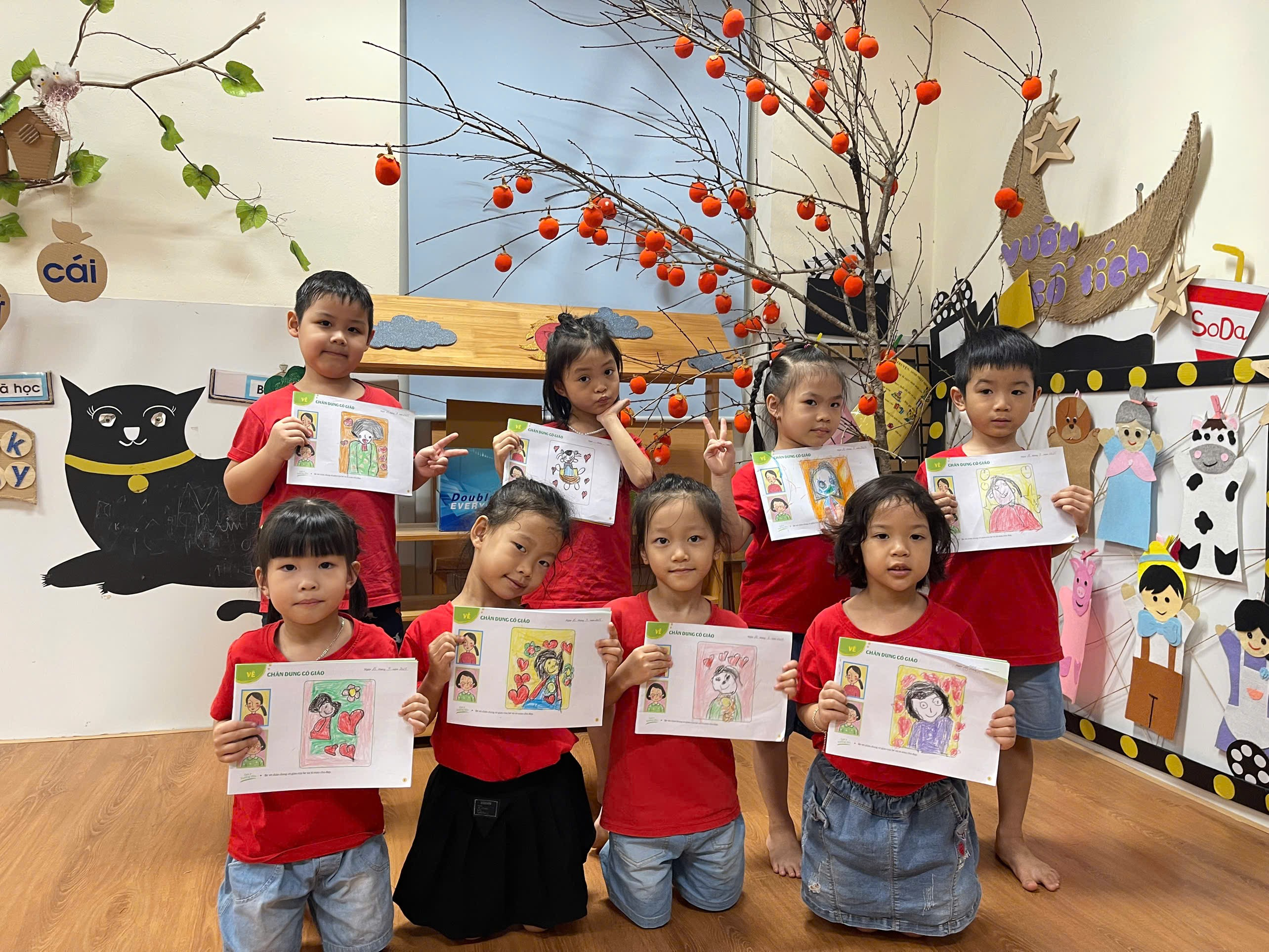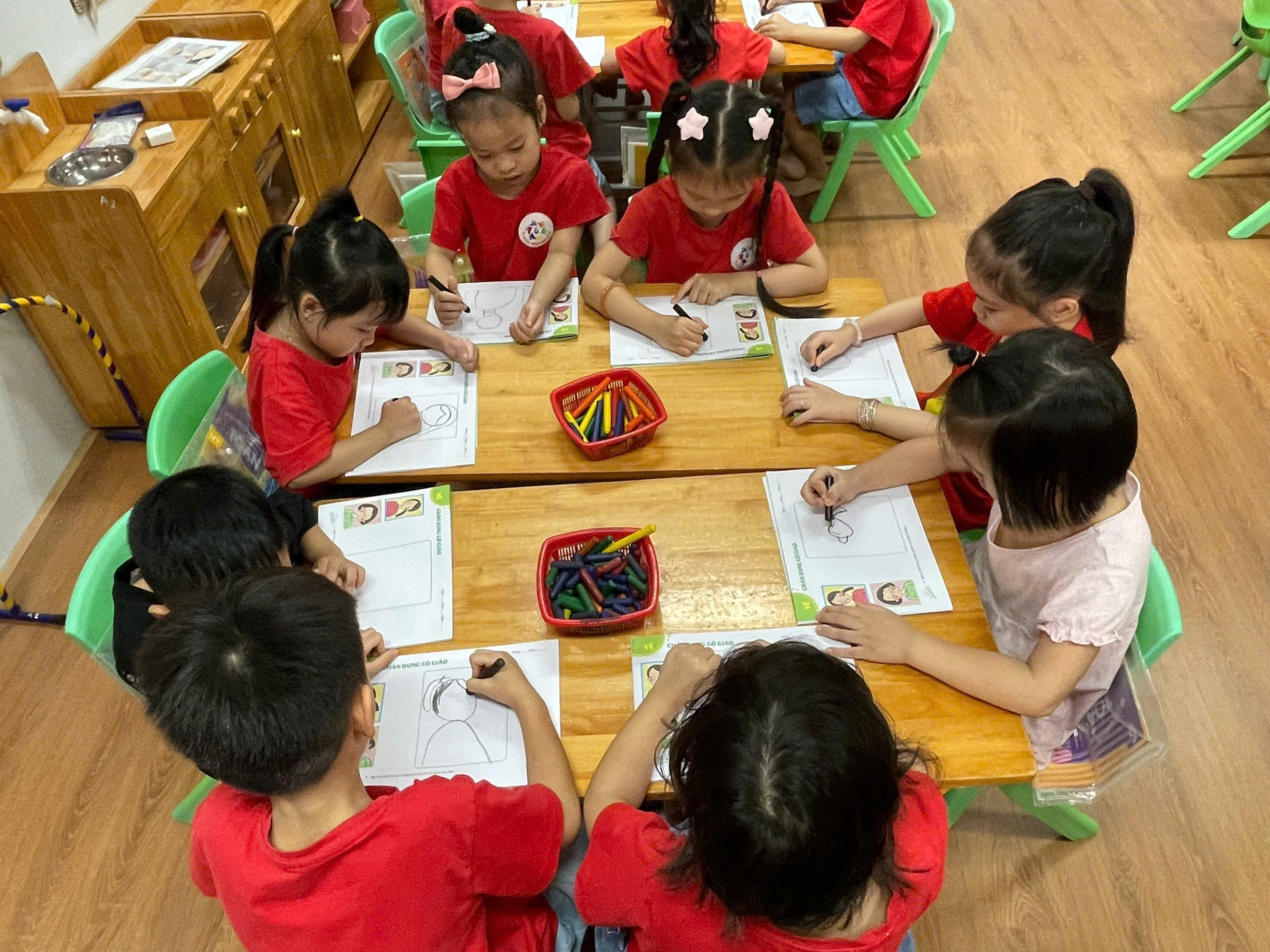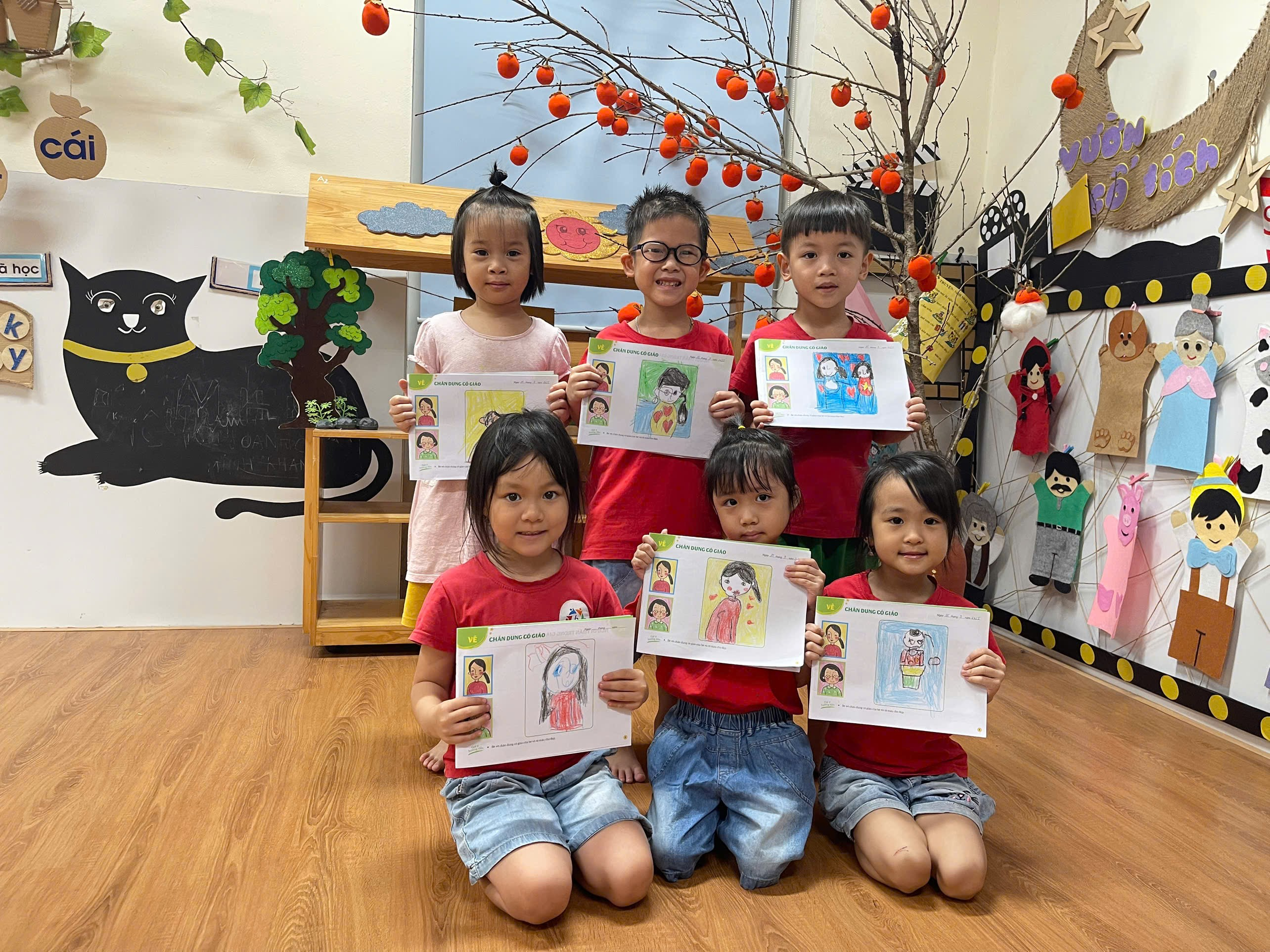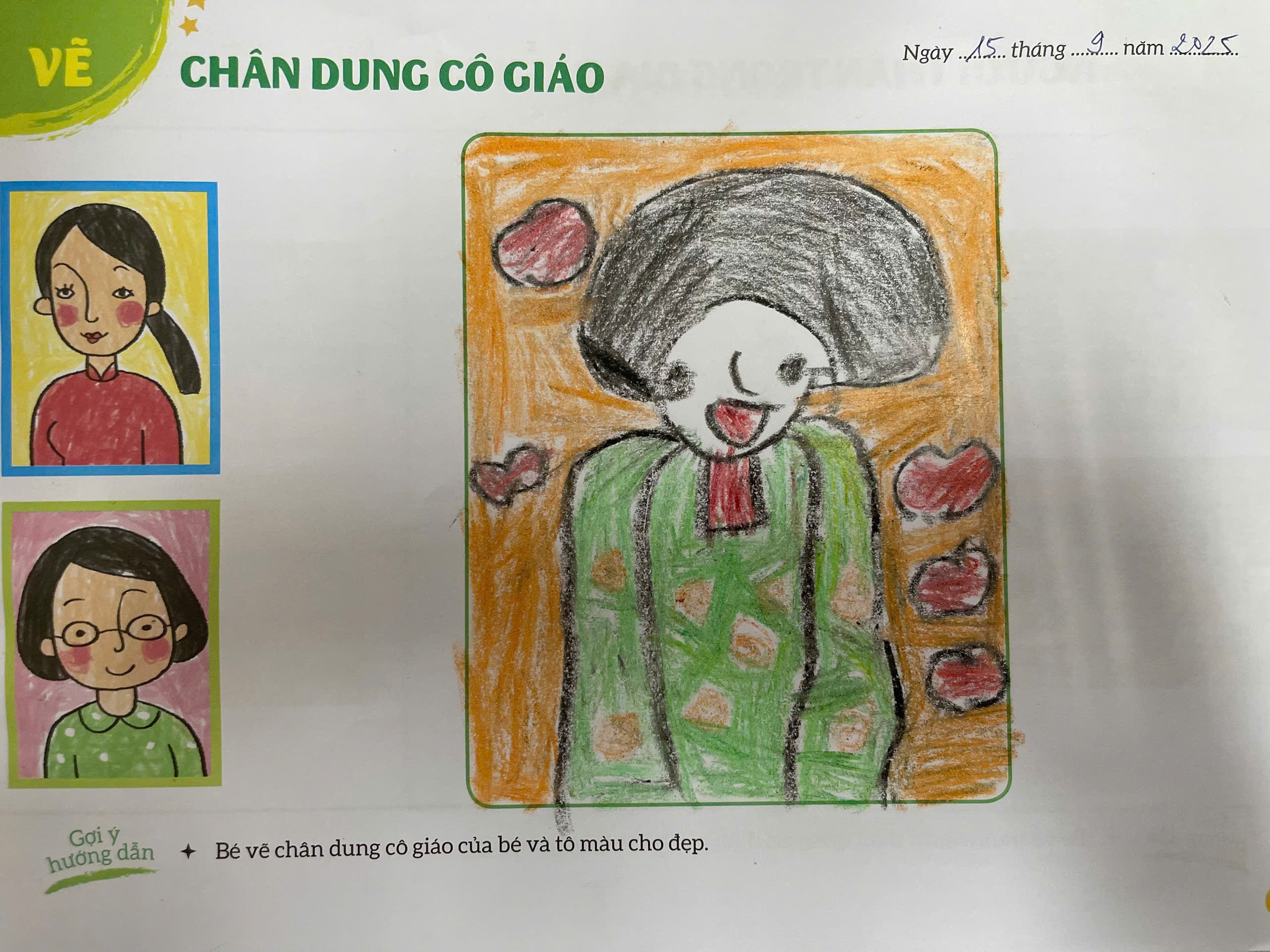 Trong buổi học hôm nay, các bé lớp Mẫu giáo lớn A2 đã có một trải nghiệm thật thú vị và ý nghĩa: Vẽ chân dung cô giáo. Với những cuốn vở tập vẽ mới làm quen, đôi tay nhỏ bé và trí tưởng tượng phong phú, các con đã gửi gắm tình cảm yêu thương dành cho cô vào từng bức tranh.