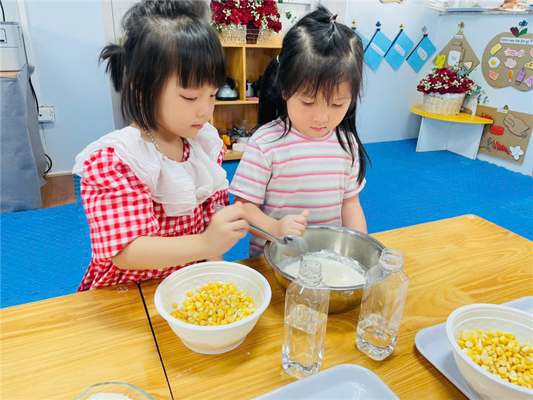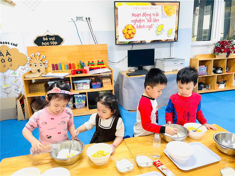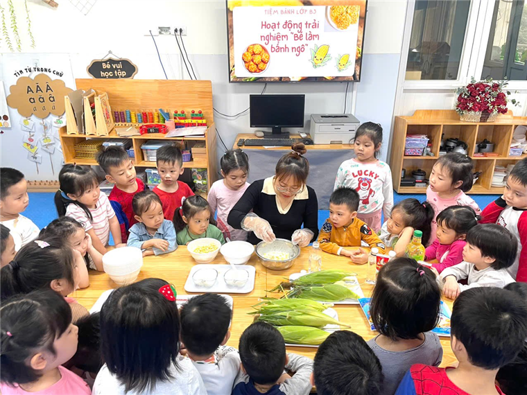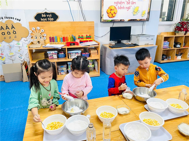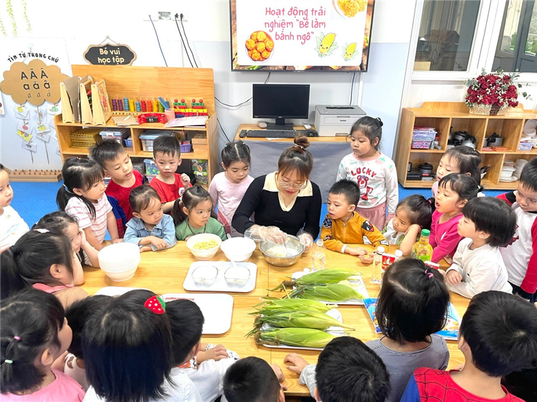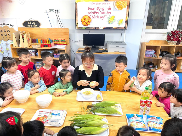 Ngô là thực phẩm quen thuộc, phổ biến, giàu năng lượng trong cuộc sống của chúng ta. Ngô có đầy đủ các thành phần dinh dưỡng có lợi, gồm chất xơ, nhiều loại vitamin, khoáng chất, protit, đường, tinh bột, các chất chống ôxy hoá và dầu béo tốt cho sức khỏe, thị lực, não bộ. Trong các món ngon từ ngô, bánh ngô từ lâu được biết đến như một món ăn khoái khẩu rất được ưa thích của trẻ. Hãy xem các bạn lớp Mẫu giáo nhỡ B3 cùng cô giáo trổ tài làm bánh ngô như thế nào nhé!