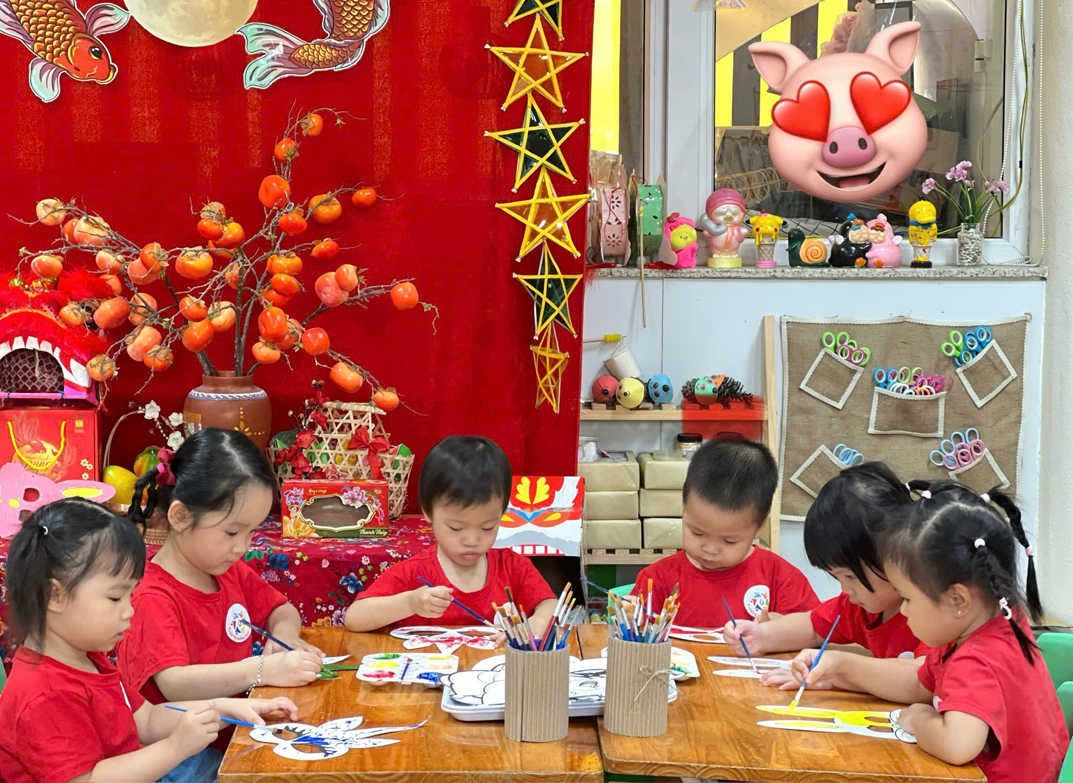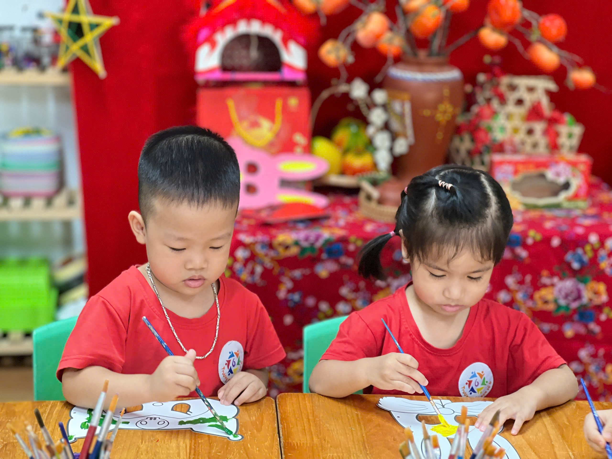 Nhân dịp Tết Trung thu, các bạn nhỏ lớp Mẫu giáo bé C2 đã cùng nhau tham gia hoạt động tô màu và trang trí mặt nạ vô cùng thú vị.Với đôi tay khéo léo và trí tưởng tượng phong phú, mỗi bé đã tạo nên những chiếc mặt nạ thật rực rỡ, mang đậm dấu ấn cá nhân. Nào là mặt nạ thỏ ngọc, sư tử, mèo ngộ nghĩnh, siêu nhân mạnh mẽ… tất cả đều thể hiện sự hồn nhiên, sáng tạo và niềm vui trong từng sản phẩm của các bé. Hoạt động không chỉ giúp các con rèn luyện sự khéo léo, phát triển thẩm mỹ mà còn mang lại cho các bé những phút giây hứng khởi, tràn ngập tiếng cười trong không khí đón Tết Trung thu.
