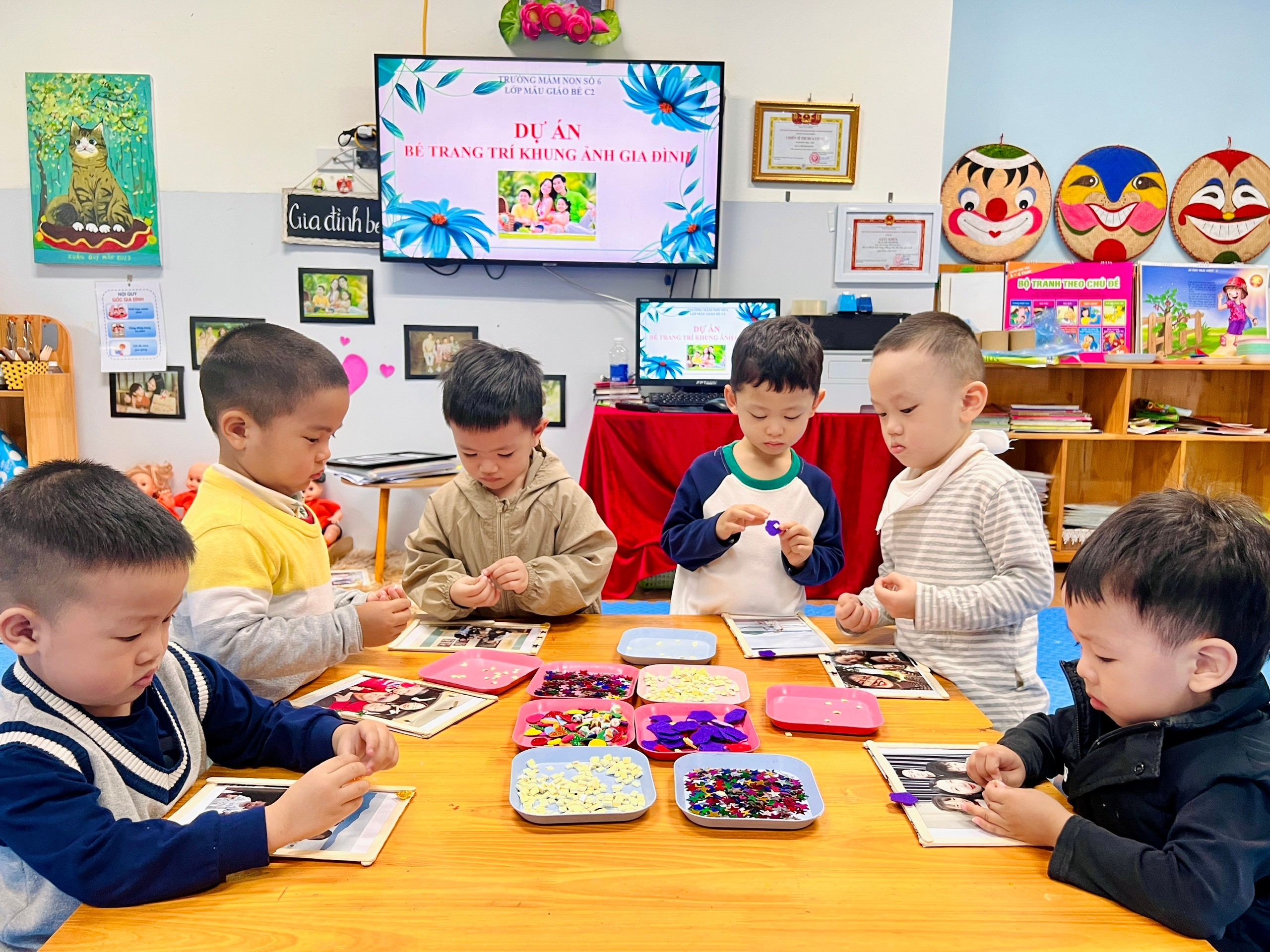 Các bé lớp MGB C2 với dự án trang trí khung ảnh gia đình
