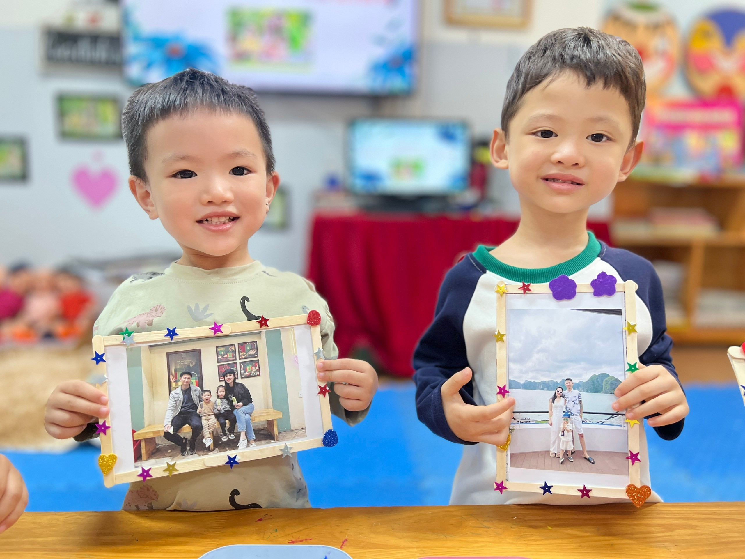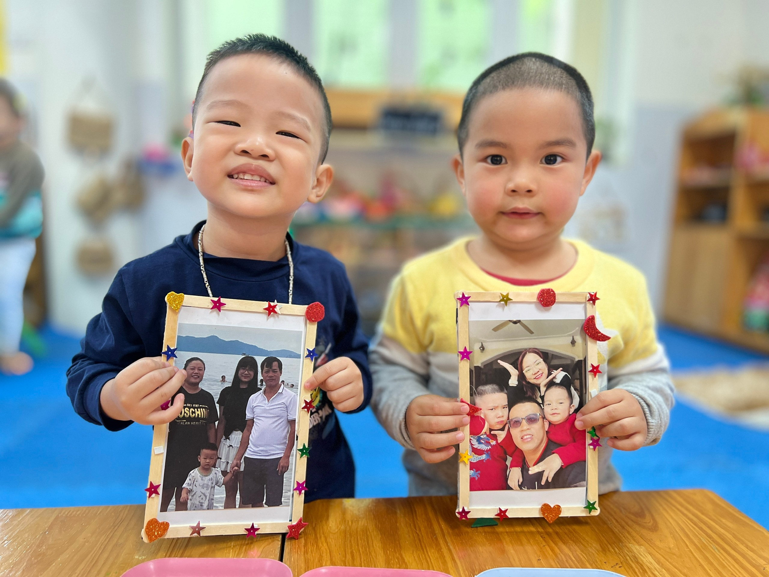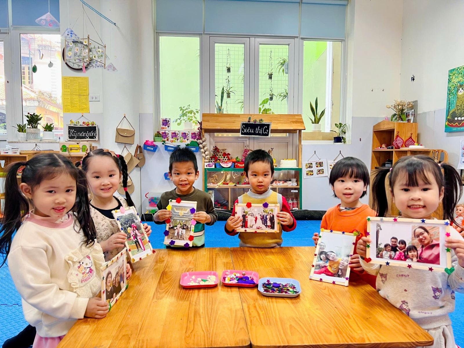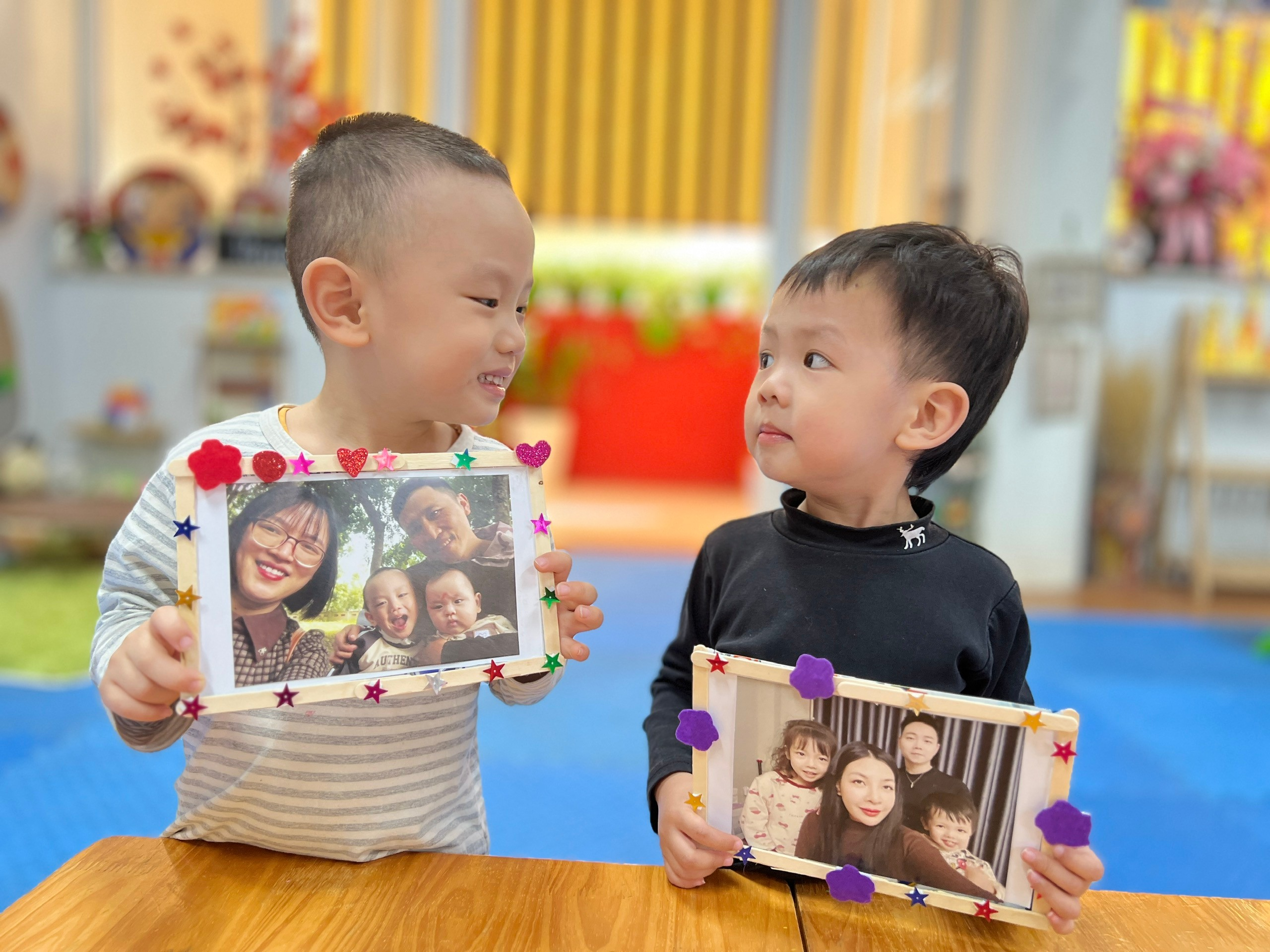Khung ảnh không đơn thuần là một đồ vật, mà còn là nơi lưu giữ hình ảnh yêu thương của gia đình. Khi được cô hỏi về bức ảnh của mình, các con đều hào hứng kể về bố mẹ, ông bà, anh chị… Điều đó giúp trẻ phát triển ngôn ngữ, cảm xúc và biết trân trọng tình cảm gia đình.