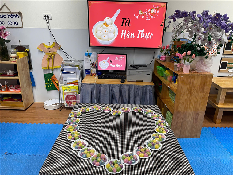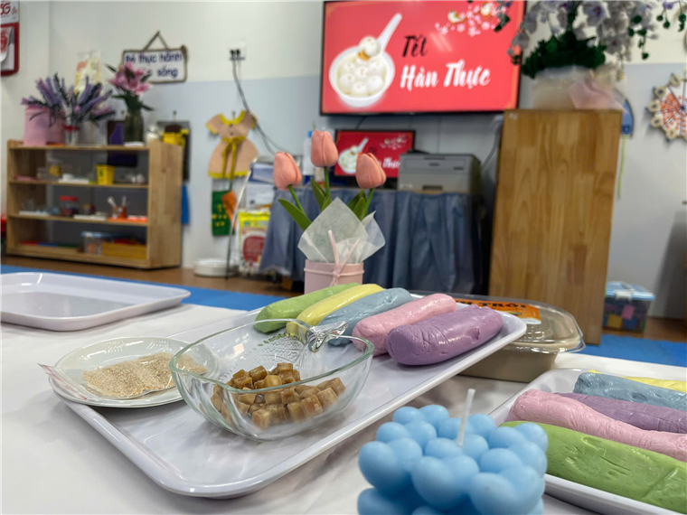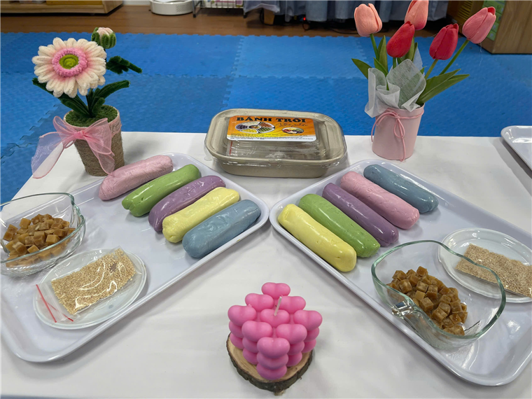 Các cô đã chuẩn bị các nguyên liệu nặn bánh trôi