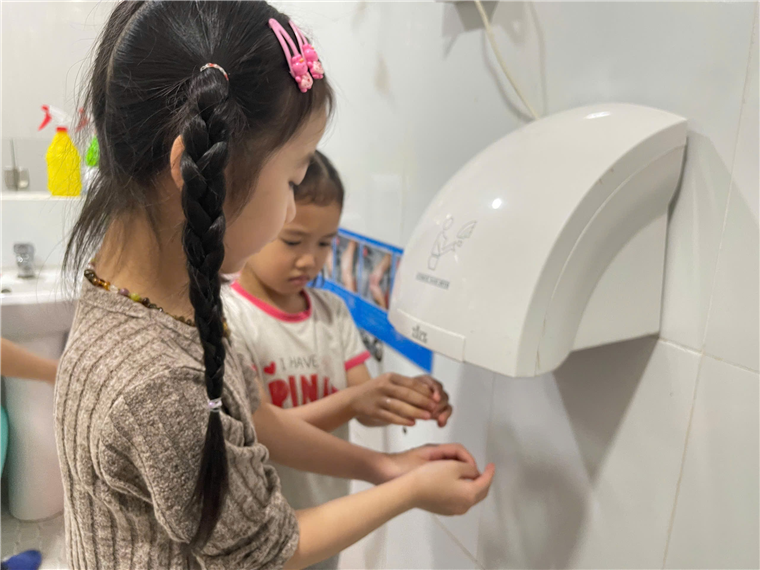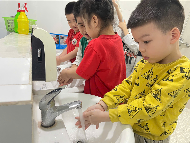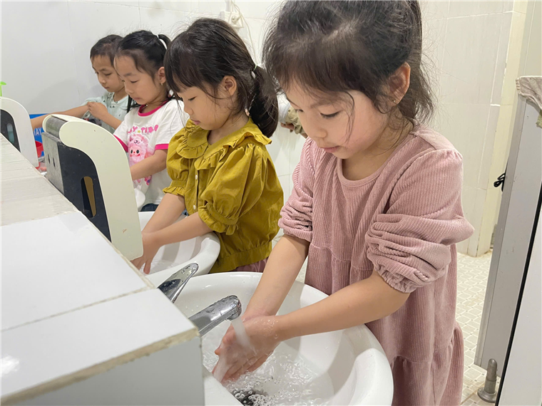 Trước khi tham gia hoạt động “Nặn bánh trôi” các bé lần lượt đi rửa tay thật sạch…