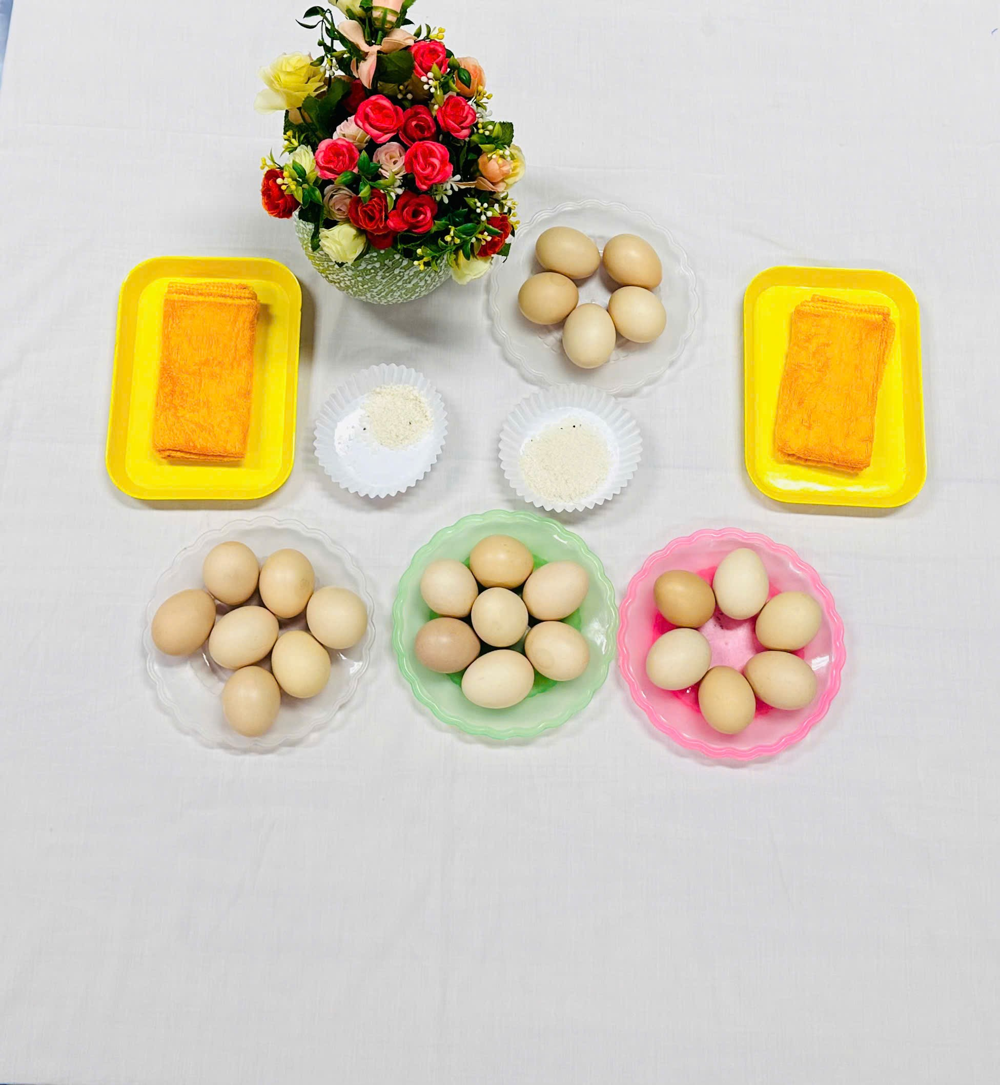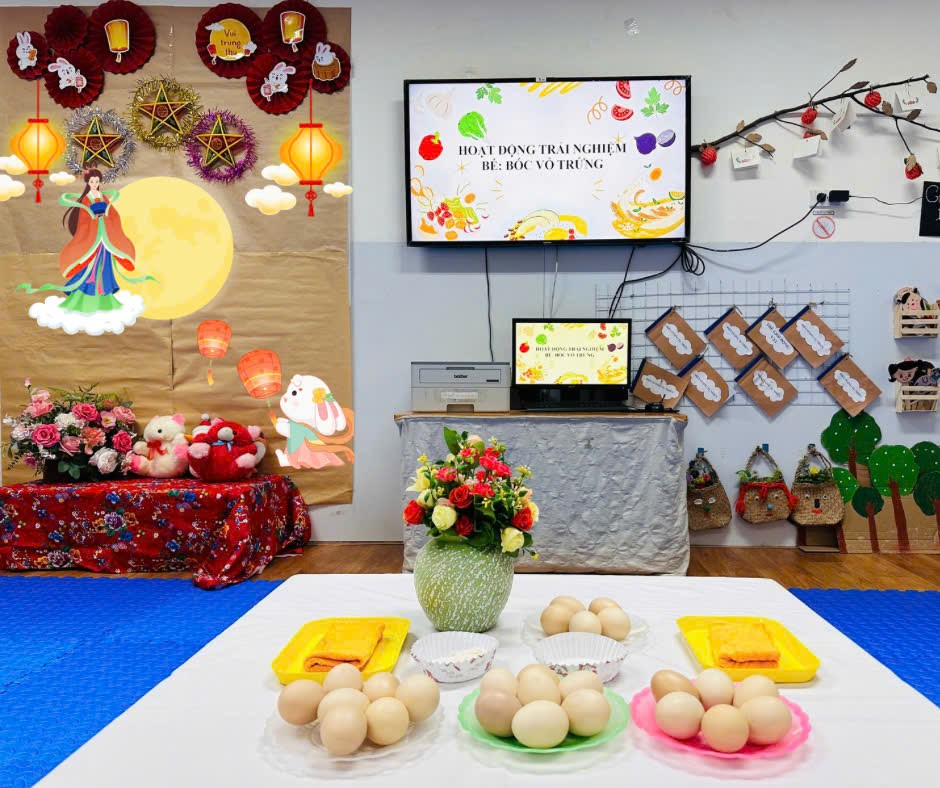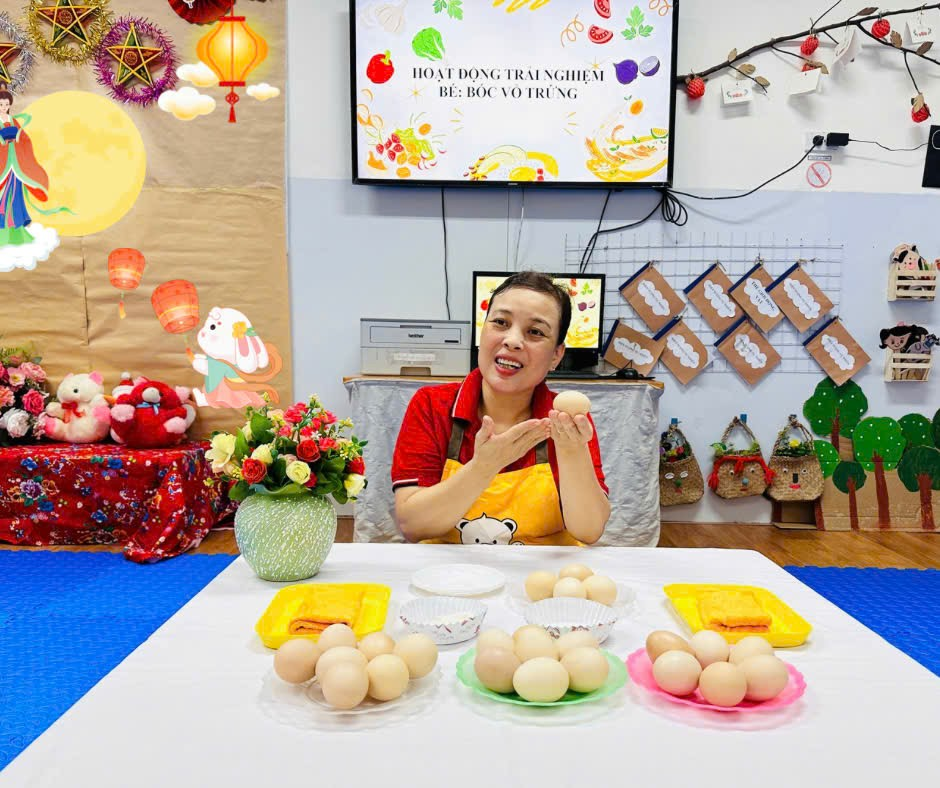 Những quả trứng được các cô bày biện thật là đẹp mắt.