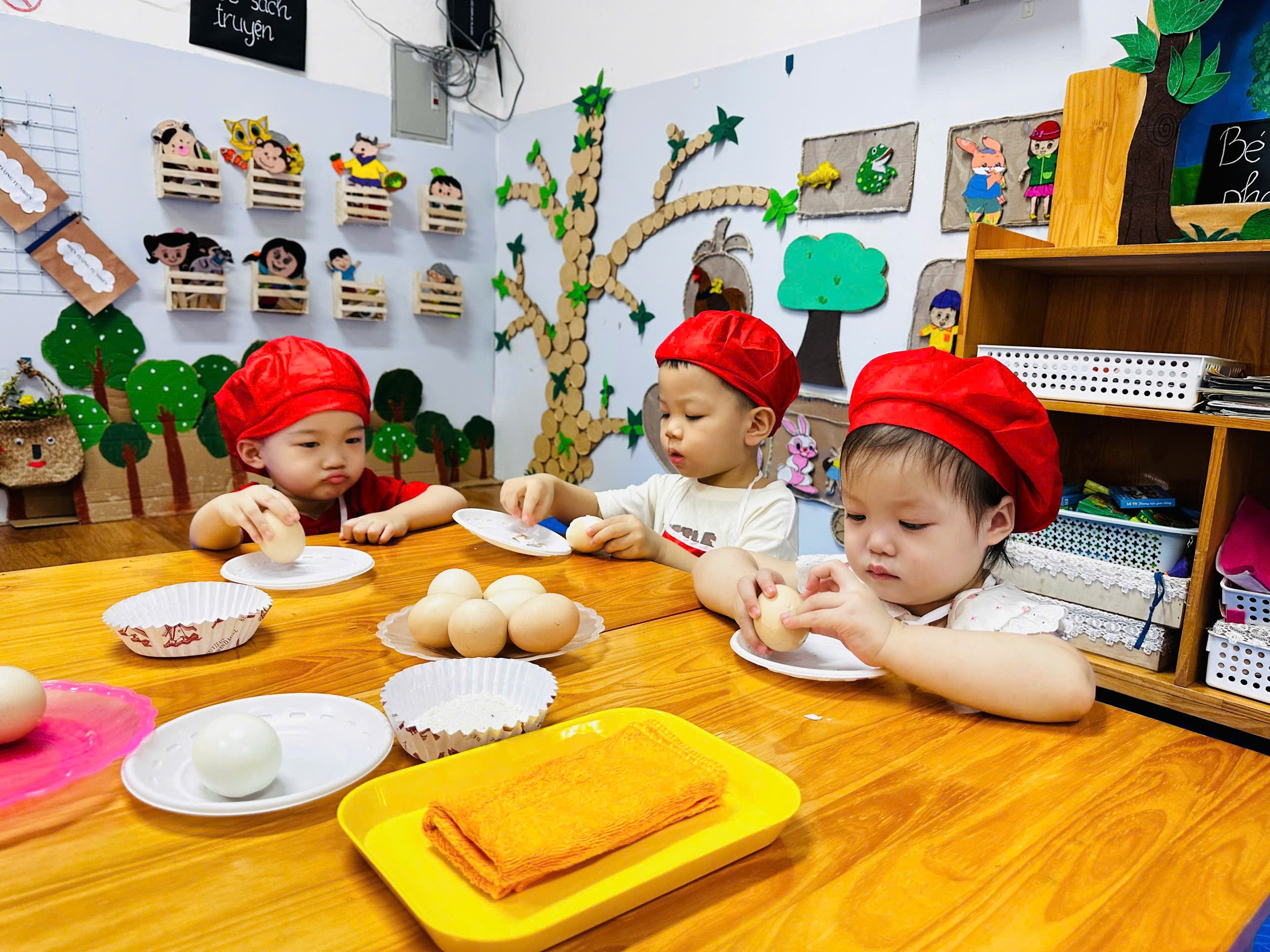Những quả trứng được các con bóc rất nhanh và khéo léo. Thông qua hoạt động trải nghiệm “Bóc vỏ trứng” đã rèn cho các bé sự khéo léo của đôi bàn tay giúp các con phát triển các kỹ năng, sự tự tin, tính kiên trì và có thật nhiều niềm vui qua những buổi trải nghiệm đầy thú vị và đặc biệt các bé còn có thể phụ giúp bố mẹ nấu bữa cơm gia đình thật ngon nữa đấy ạ./