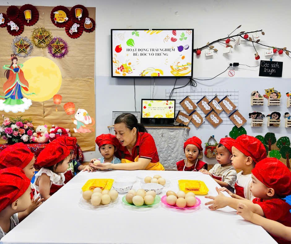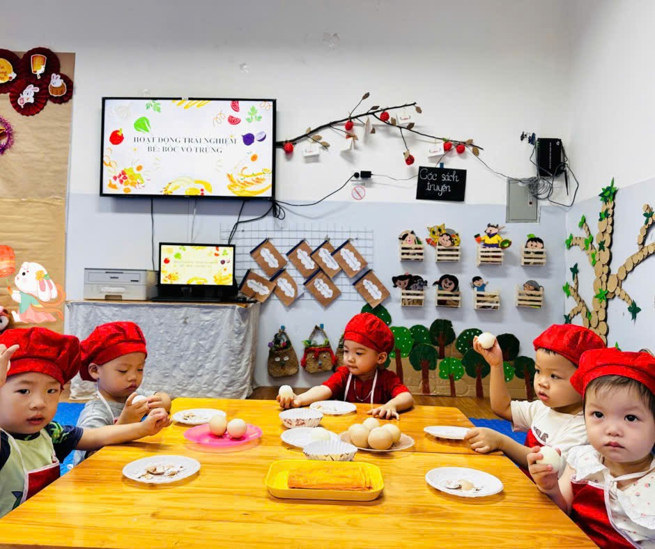 Hoạt động trải nghiệm “ Bóc vỏ trứng” là một hoạt động thú vị của các bạn nhỏ, tuy đơn giản nhưng mang lại nhiều trải nghiệm giúp trẻ rèn luyện sự khéo léo của những ngón tay, sự tỉ mỉ và rèn luyện tính kiên trì cho trẻ. Vừa bóc trứng trẻ vừa đặt ra những câu hỏi ngộ nghĩnh, đáng yêu. Các bé tò mò hỏi nhau tại sao cô phải gõ nhẹ quả trứng rồi mới bóc nhỉ? Hay bóc thế nào để lòng đỏ của quả trứng không bị rơi ra,... Những câu hỏi hồn nhiên, ngây thơ của bé thật đáng yêu làm sao.