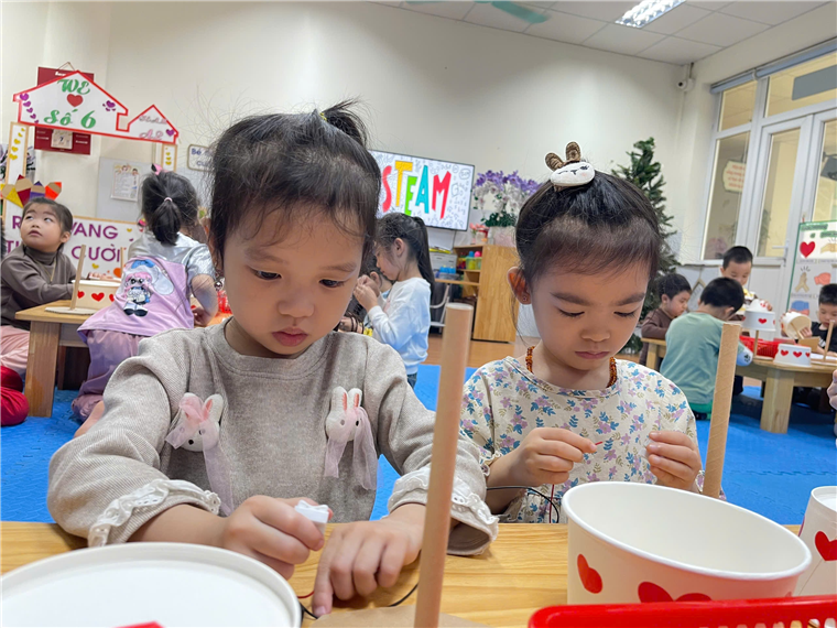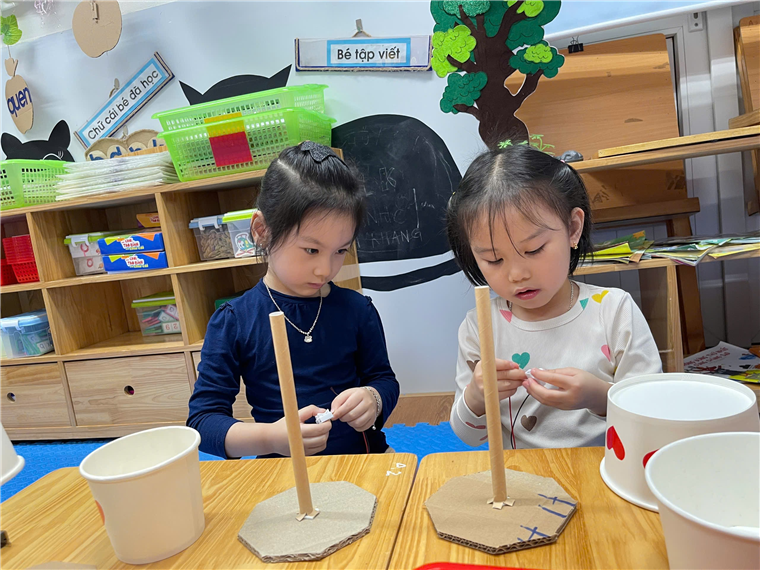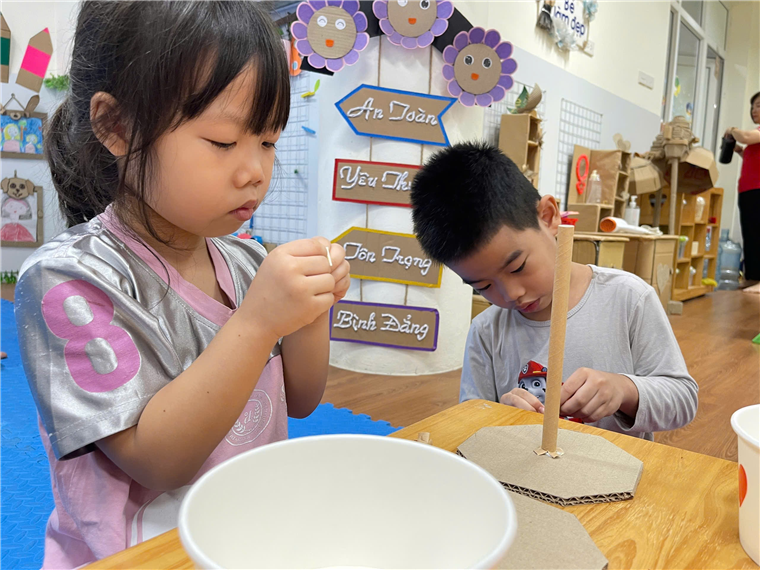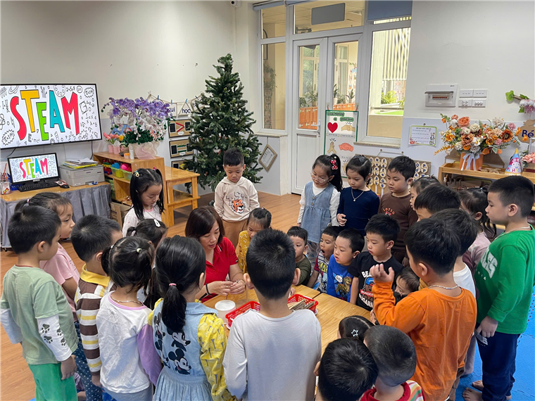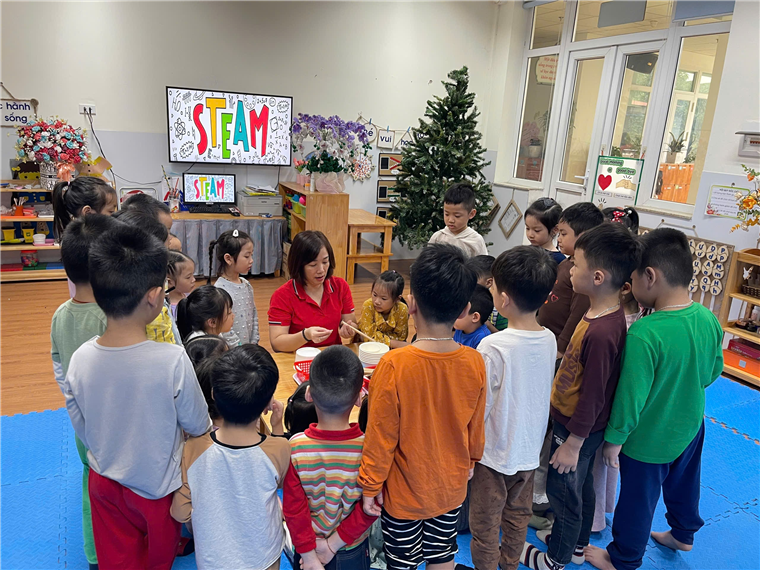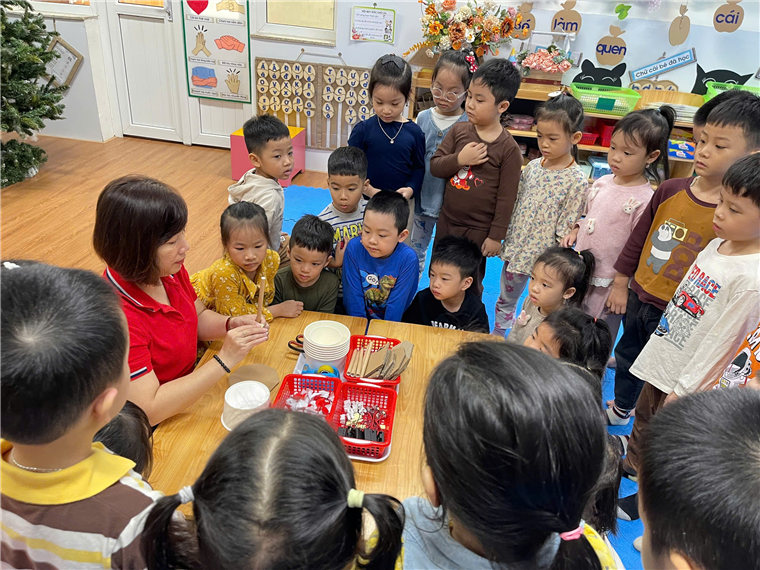 Cô giới thiệu cho trẻ các nguyên vật liệu