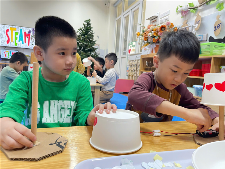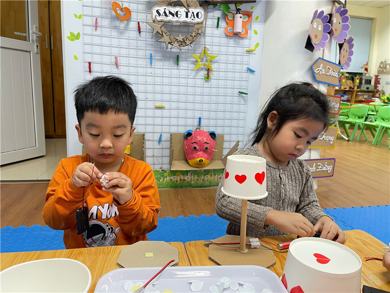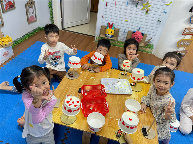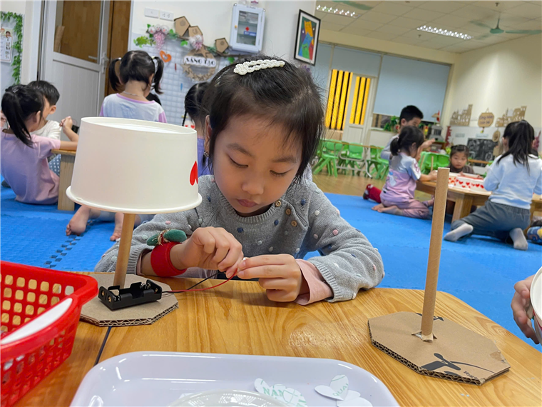 Các cô giáo lớp MGL A2 đã áp dụng phương pháp giáo dục STEAM vào dạy học, hướng dẫn cho trẻ thiết kế, chế tạo: “Đèn để bàn”. Từ những nguyên vật liệu đơn giản, quen thuộc trong cuộc sống mà trẻ được thỏa sức sáng tạo, tìm tòi, khám phá, thiết kế đã chế tạo được những chiếc đèn độc, lạ,… của riêng mình.