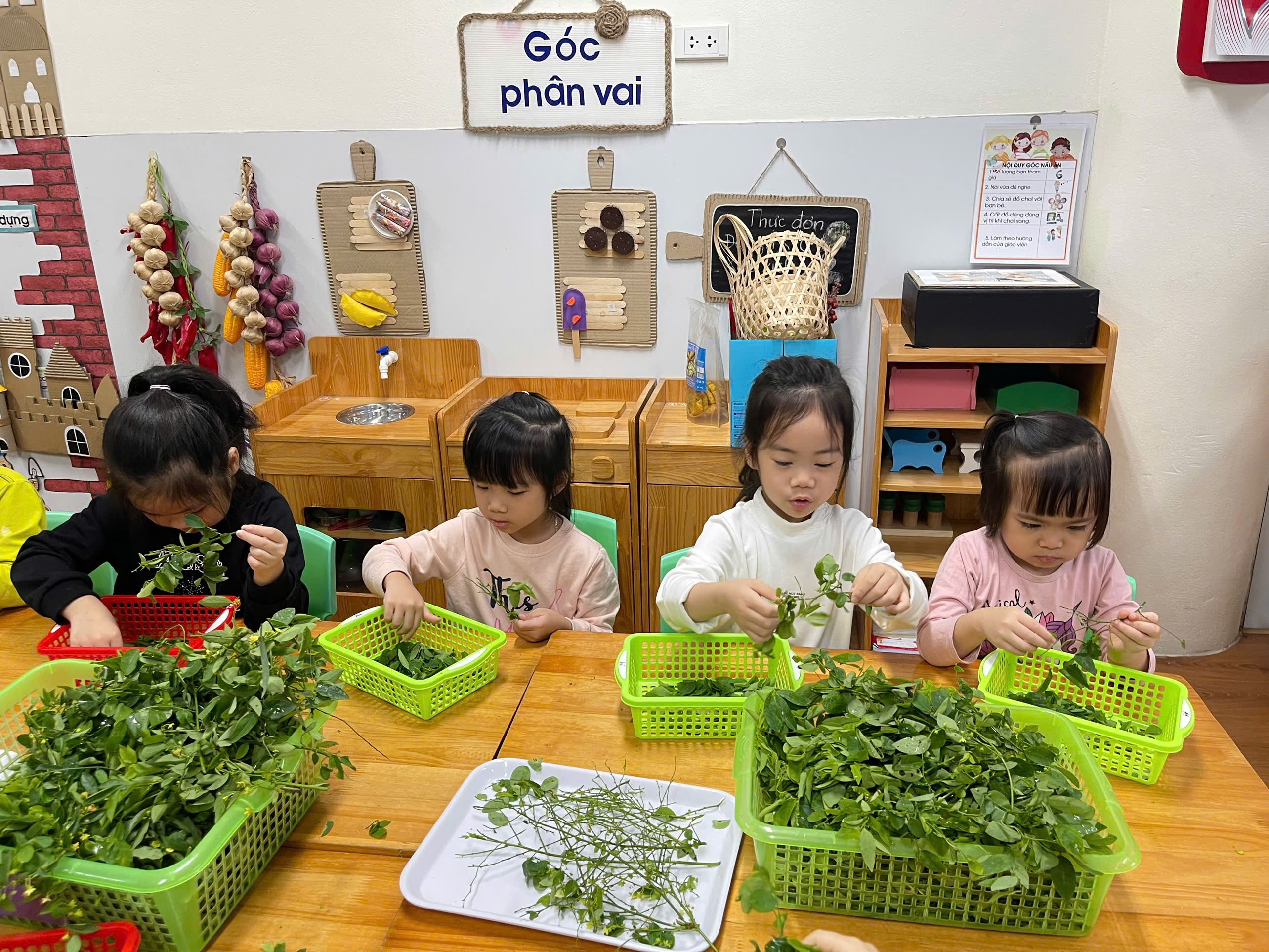 “Bé tập làm nội trợ” là 1 hoạt động rất vui và bổ ích trong trường mầm non. Đôi bàn tay nhỏ xinh ngoài việc cầm bút, vẽ tranh, xúc cơm… , hôm nay các bạn nhỏ lớp A2 còn sử dụng đôi bàn tay của mình tuốt rau ngót. Tuổi nhỏ làm việc nhỏ, các bạn ấy biết thêm về tên gọi, đặc điểm của rau ngót… Để nấu được loại rau này, cần phải tuốt rau thật sạch khỏi cuống rau rồi rửa sạch. Với người lớn thì không có gì là khó khăn nhưng với các bạn nhỏ thì đây quả là một trải nghiệm thú vị😊 .Qua bài học này, các con đã biết cách cầm, tuốt những chiếc lá sau đó bỏ gọn gàng vào trong rổ và các món ăn được nấu từ rau ngót. Vì vậy, giờ đây bố mẹ có thể nhờ các con nhặt rau cùng chuẩn bị bữa cơm gia đình.