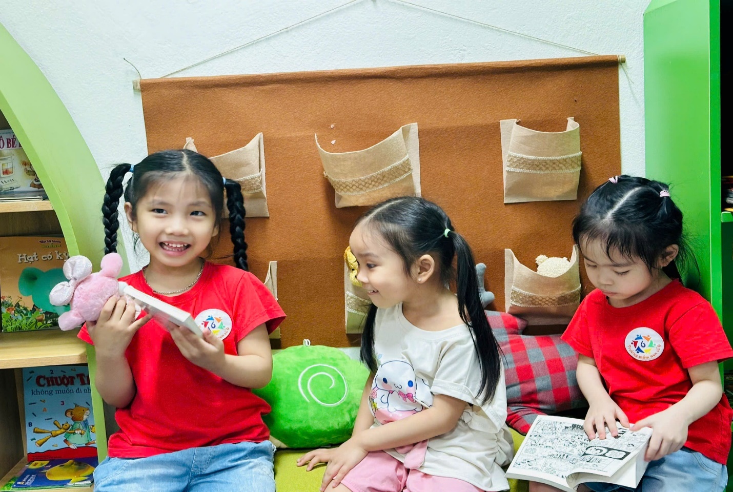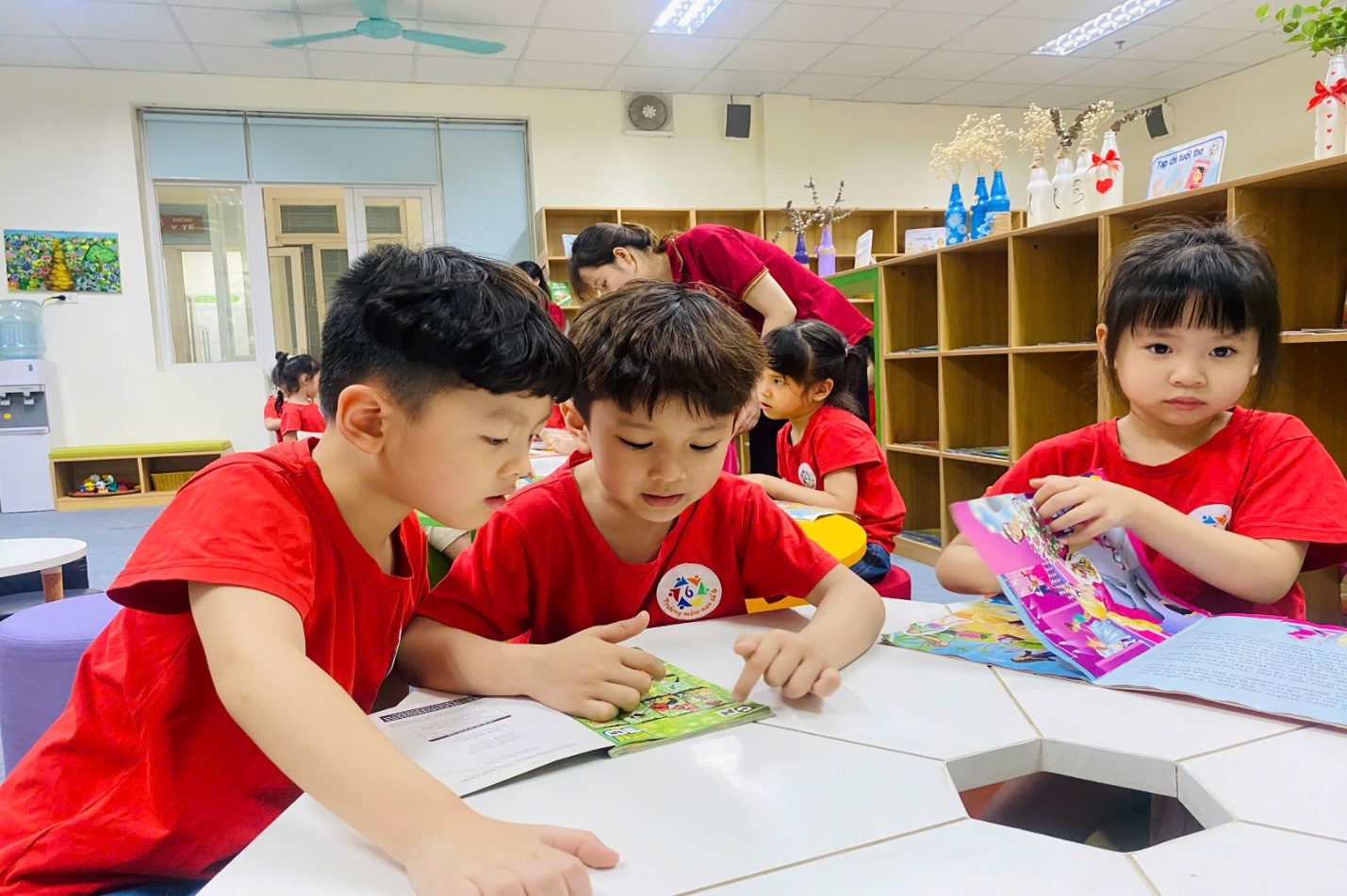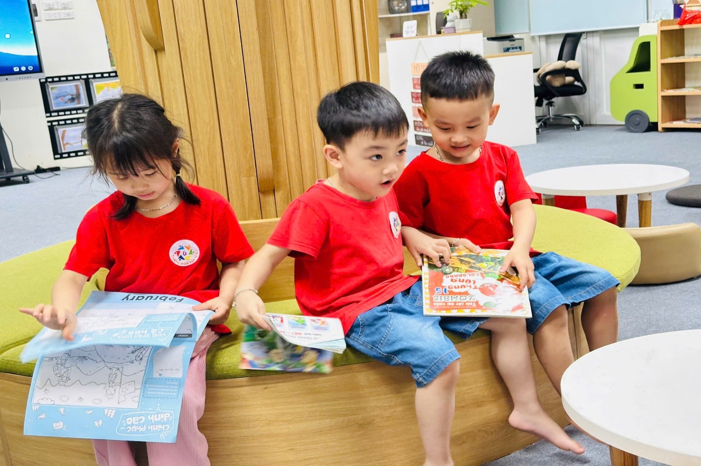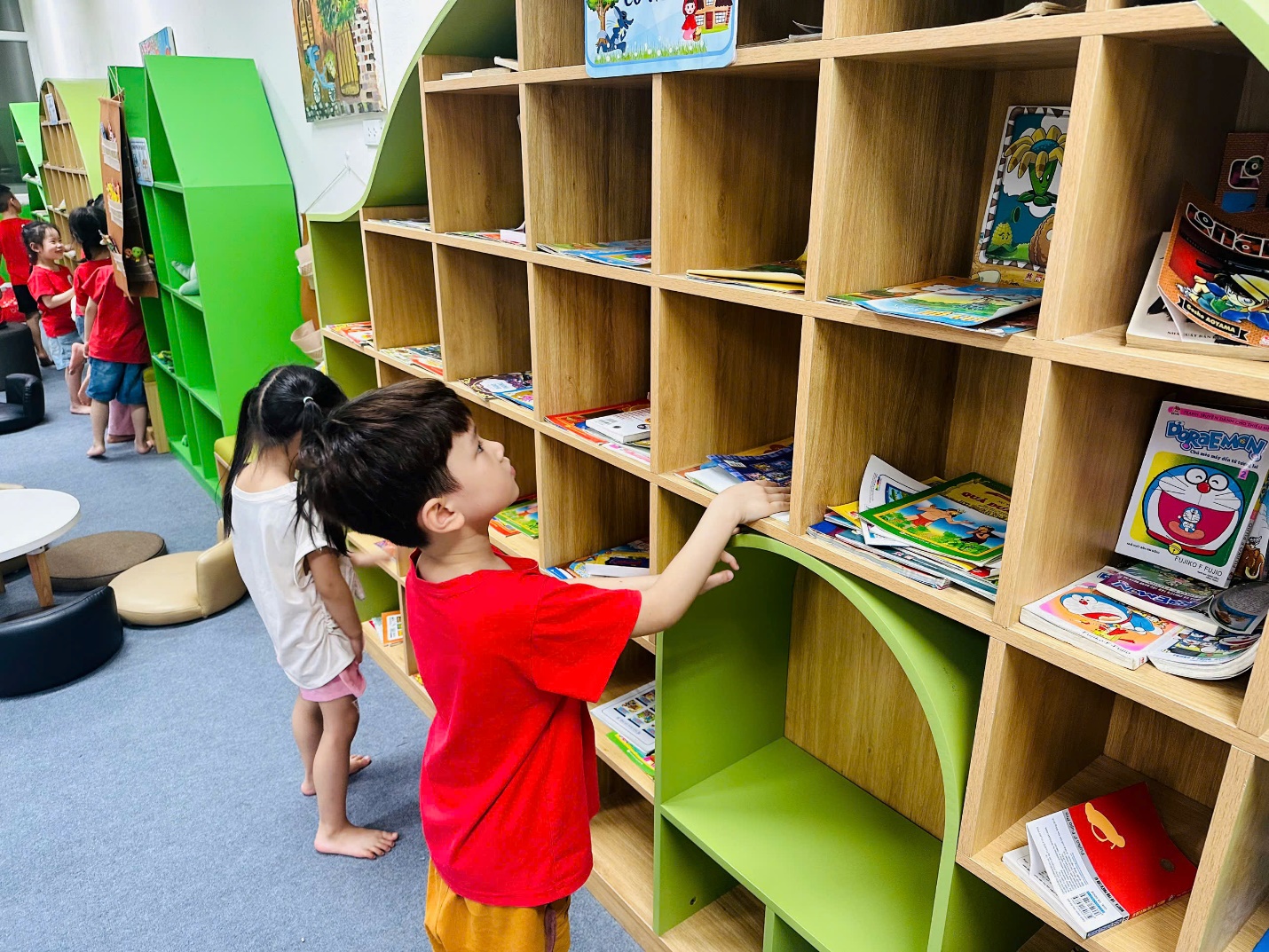 Sau đó là hoạt động hưởng ứng ngày Sách Việt Nam 21/4, những góc sách nhỏ tại thư viện trường với rất nhiều những quyển sách, quyển truyện phong phú, đa dạng khiến các bé lớp B1 say sưa khám phá, tìm tòi và vô cùng thích thú. Đây là hoạt động nhằm góp phần đưa văn hóa đọc trở thành thói quen cho trẻ, rèn cách cầm sách, mở sách, kể chuyện theo tranh. Đồng thời giúp các em học tập những gương tốt việc tốt, các nhân vật sự kiện lịch sử, thế giới, tự nhiên khoa học…Giúp trẻ phát triển các kỹ năng như: kỹ năng đọc, quan sát, chú ý ghi nhớ có chủ định để phục vụ tốt trong việc học tập, hình thành nhân cách của trẻ.
