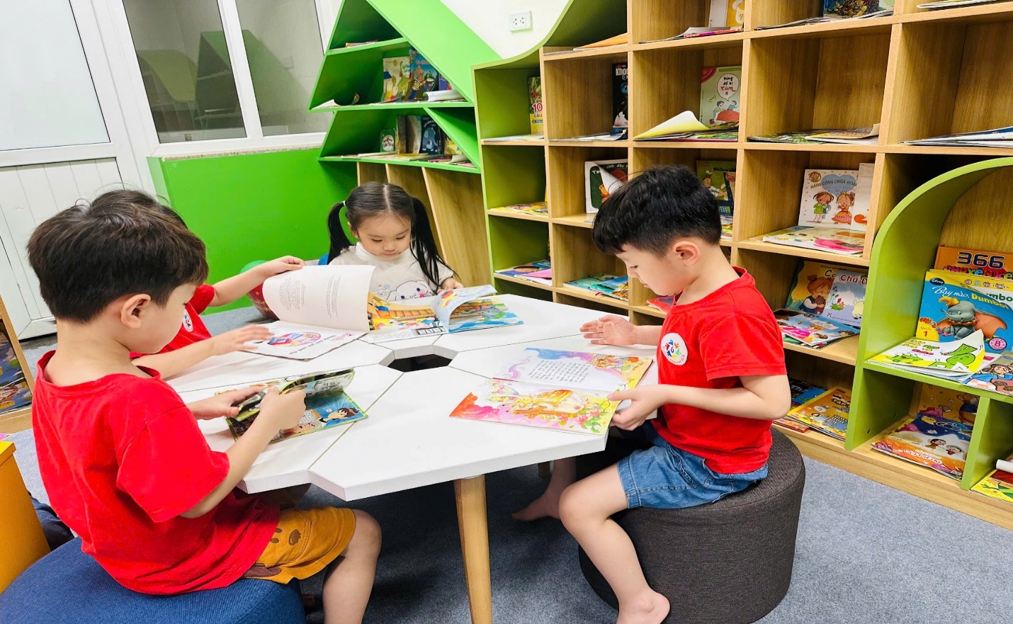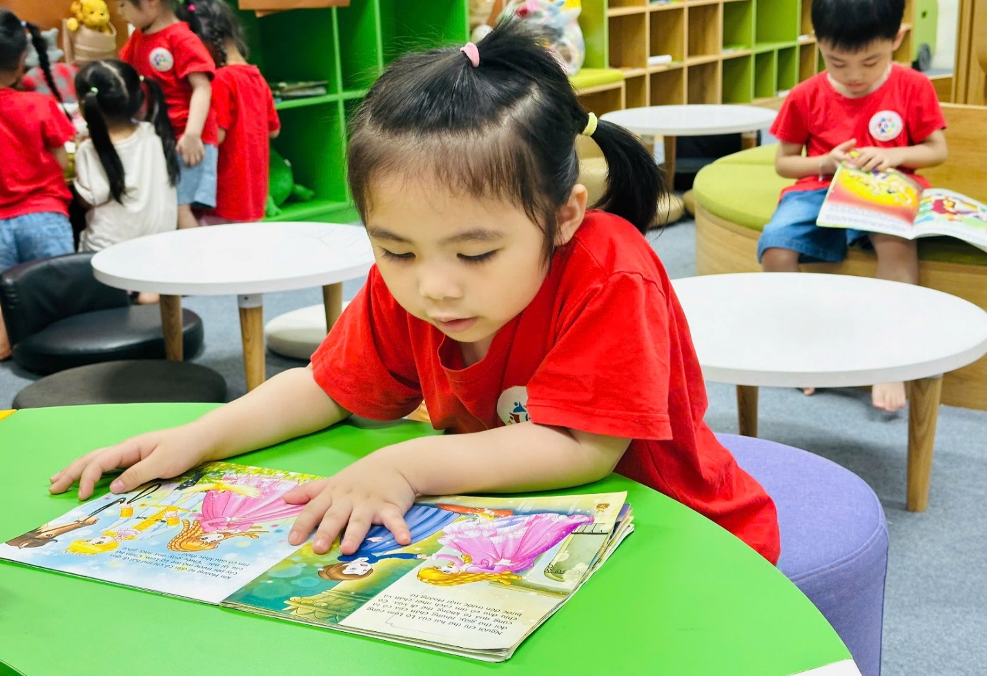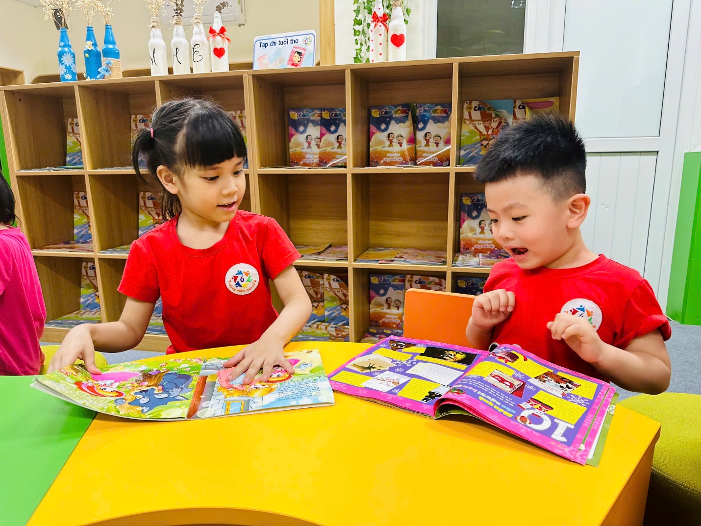 Sau đó là hoạt động hưởng ứng ngày Sách Việt Nam 21/4, những góc sách nhỏ tại thư viện trường với rất nhiều những quyển sách, quyển truyện phong phú, đa dạng khiến các bé lớp B1 say sưa khám phá, tìm tòi và vô cùng thích thú. Đây là hoạt động nhằm góp phần đưa văn hóa đọc trở thành thói quen cho trẻ, rèn cách cầm sách, mở sách, kể chuyện theo tranh. Đồng thời giúp các em học tập những gương tốt việc tốt, các nhân vật sự kiện lịch sử, thế giới, tự nhiên khoa học…Giúp trẻ phát triển các kỹ năng như: kỹ năng đọc, quan sát, chú ý ghi nhớ có chủ định để phục vụ tốt trong việc học tập, hình thành nhân cách của trẻ.