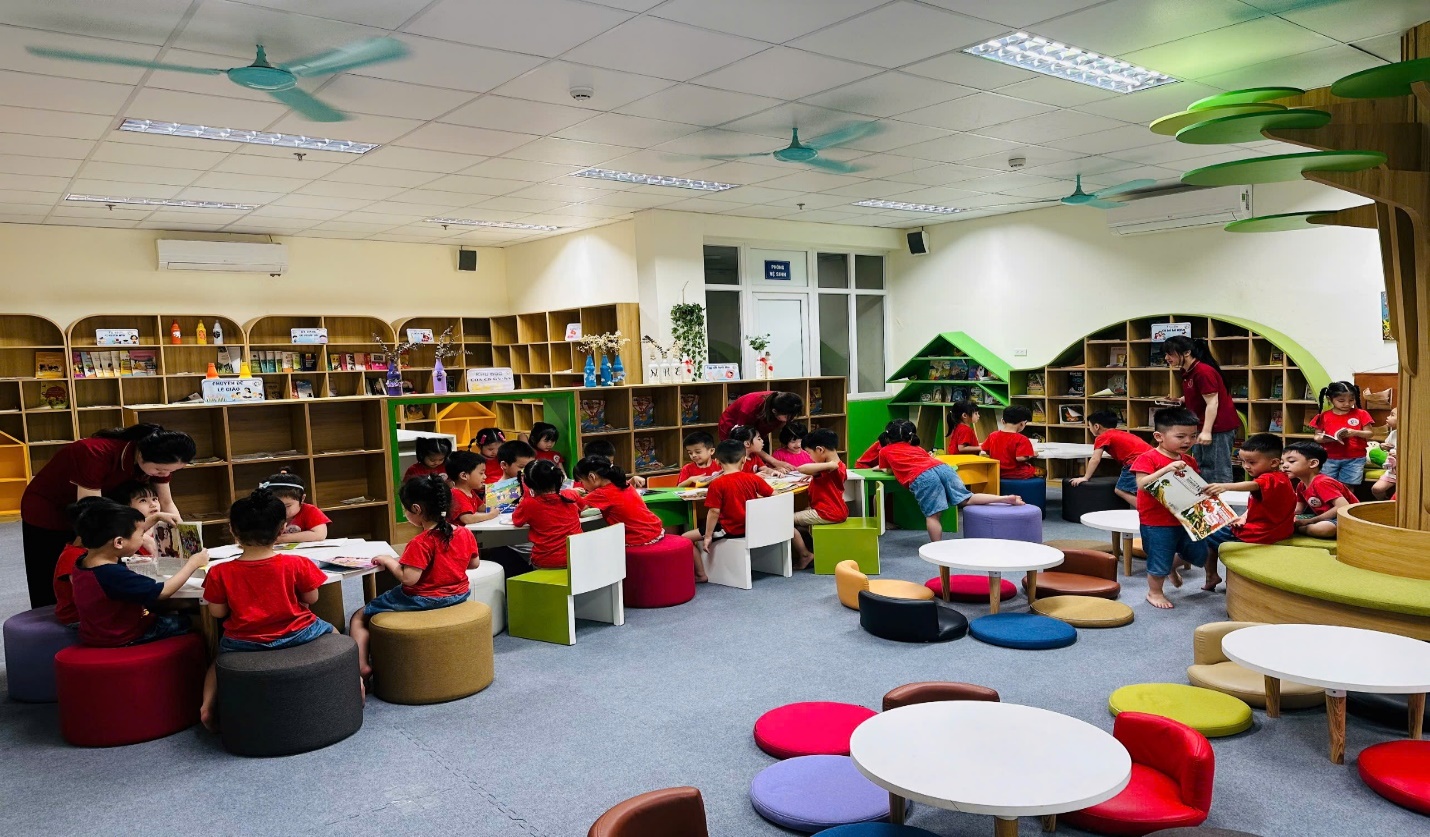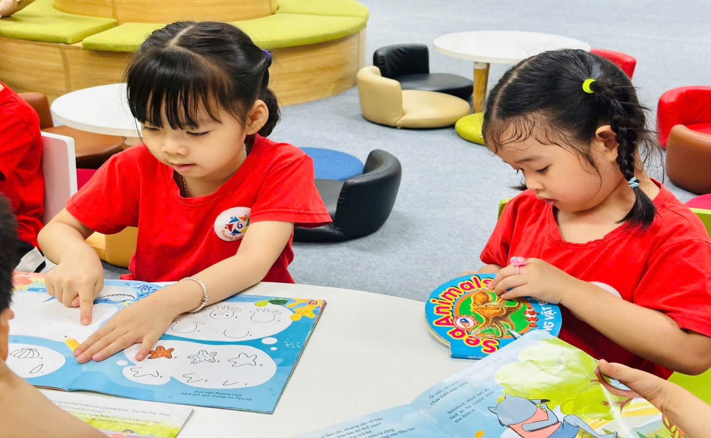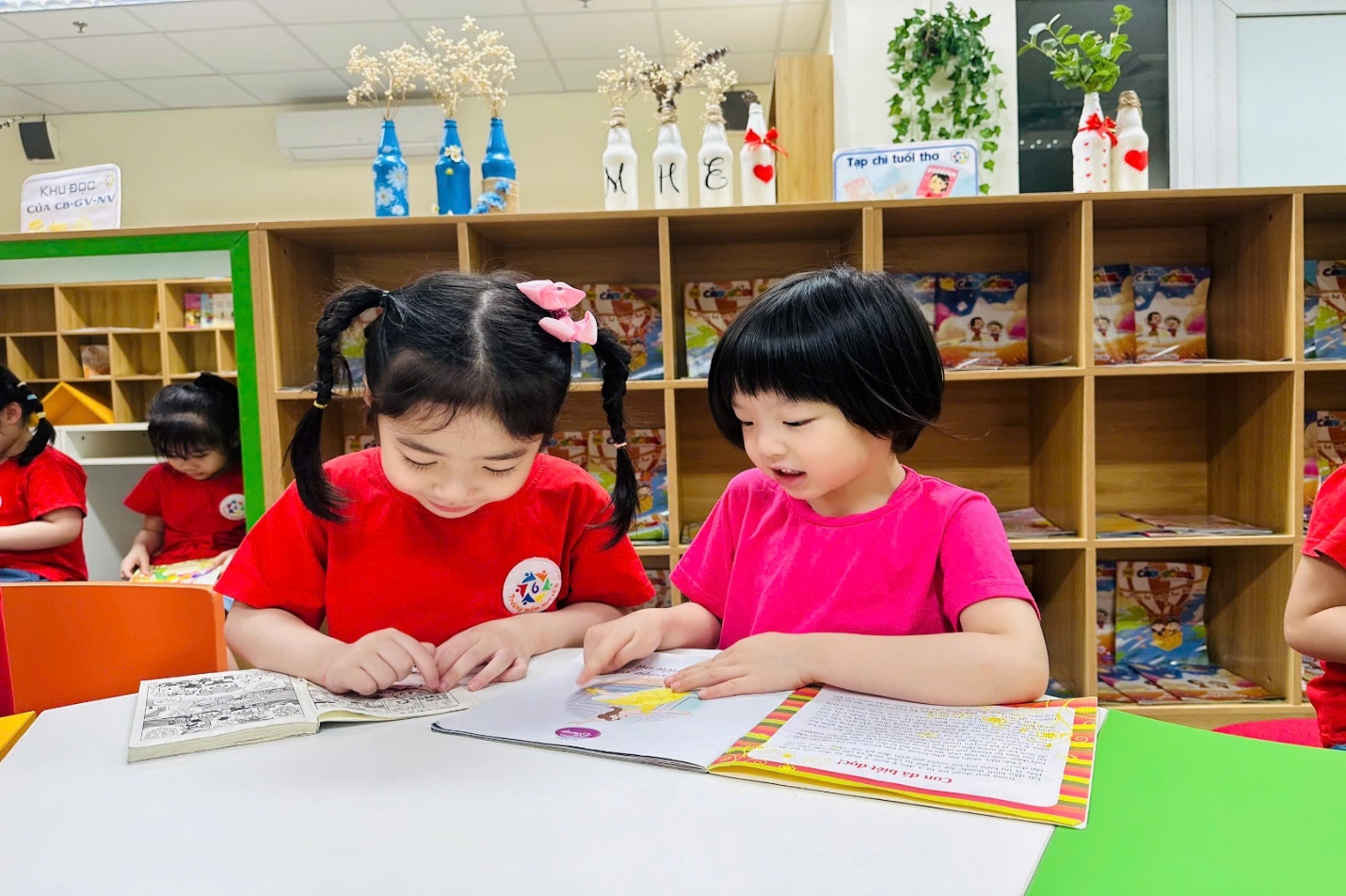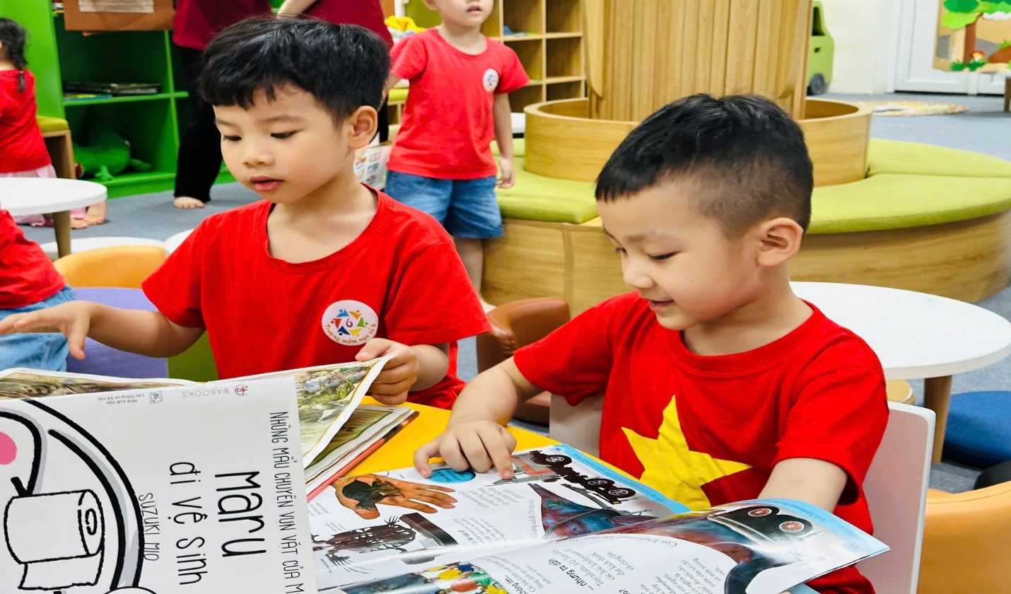 Sau đó là hoạt động hưởng ứng ngày Sách Việt Nam 21/4, những góc sách nhỏ tại thư viện trường với rất nhiều những quyển sách, quyển truyện phong phú, đa dạng khiến các bé lớp B1 say sưa khám phá, tìm tòi và vô cùng thích thú. Đây là hoạt động nhằm góp phần đưa văn hóa đọc trở thành thói quen cho trẻ, rèn cách cầm sách, mở sách, kể chuyện theo tranh. Đồng thời giúp các em học tập những gương tốt việc tốt, các nhân vật sự kiện lịch sử, thế giới, tự nhiên khoa học…Giúp trẻ phát triển các kỹ năng như: kỹ năng đọc, quan sát, chú ý ghi nhớ có chủ định để phục vụ tốt trong việc học tập, hình thành nhân cách của trẻ.