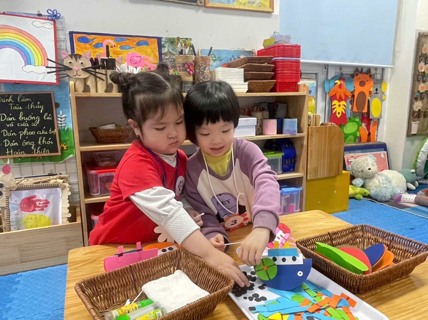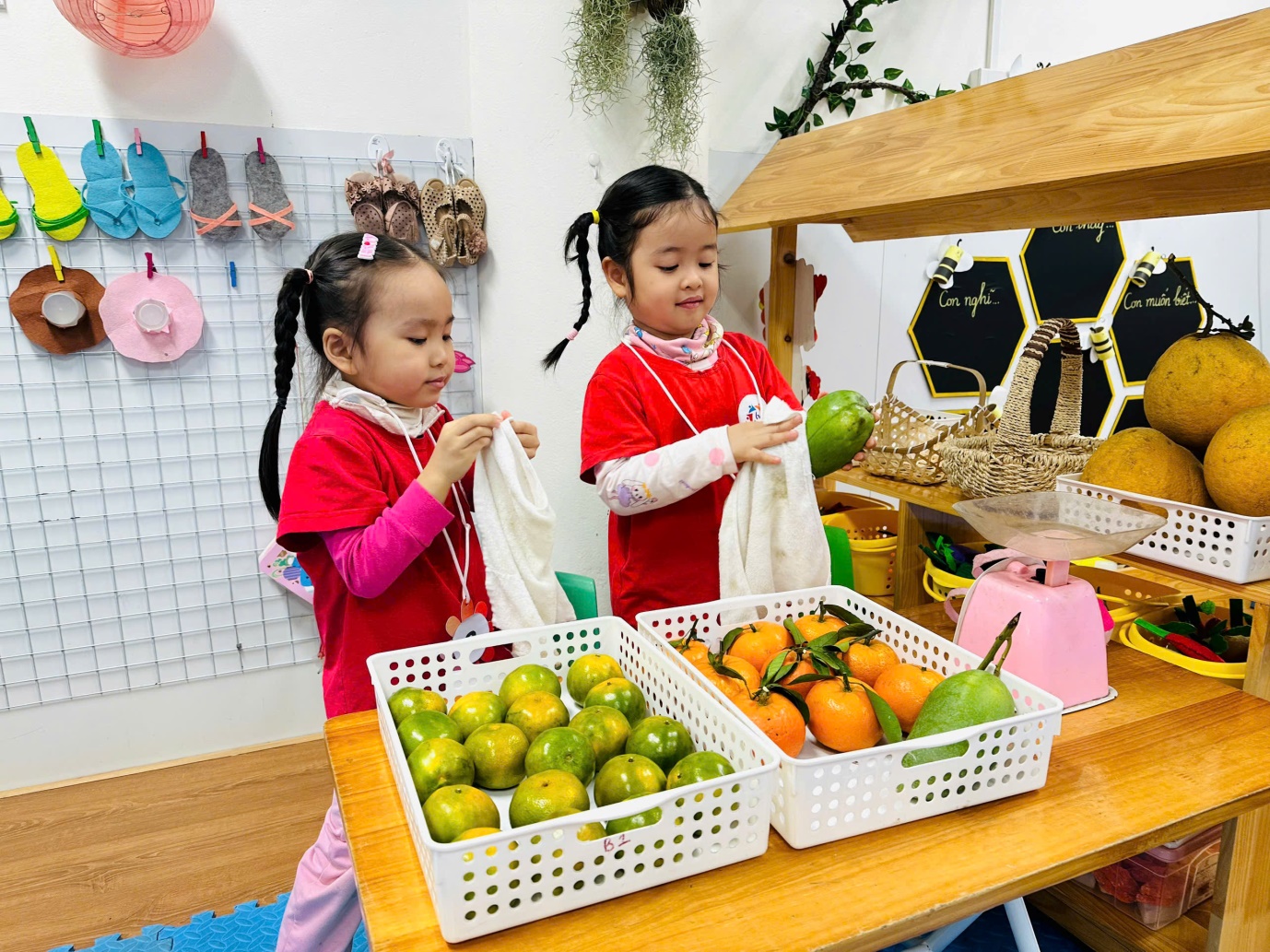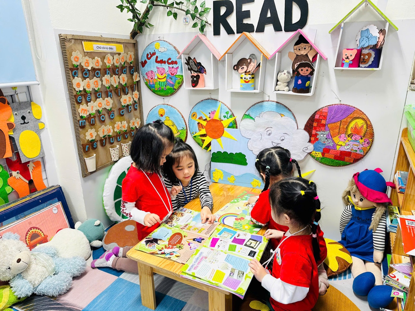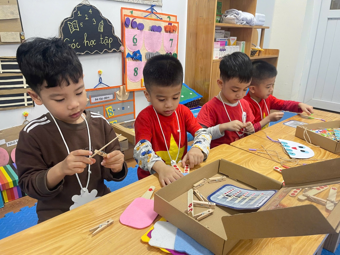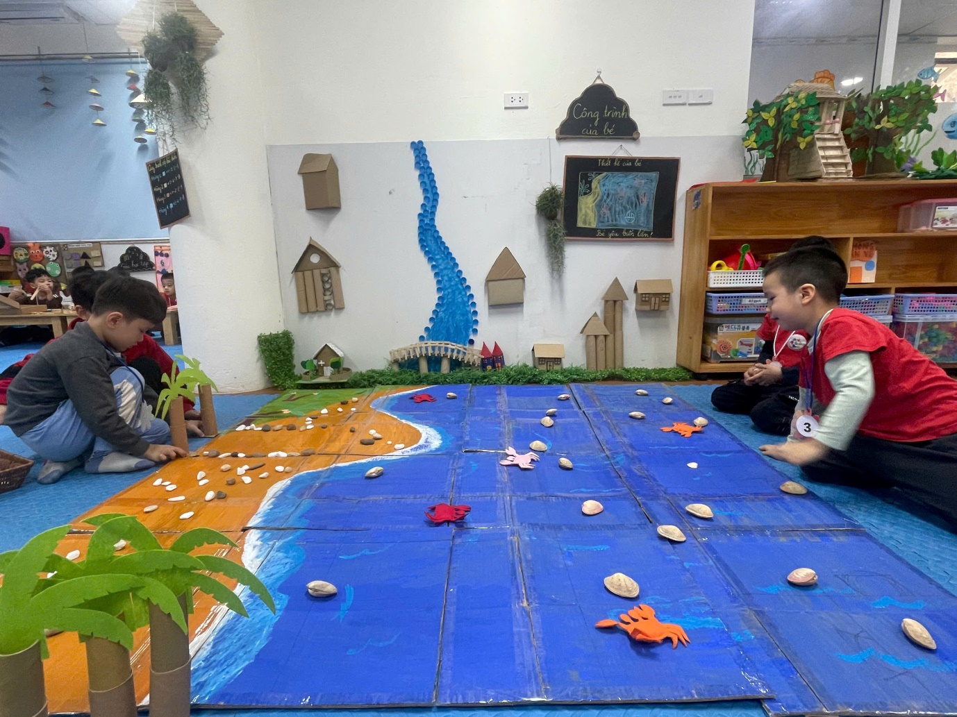 Giờ hoạt động góc vui nhộn của các bạn nhỏ lớp MGN B1