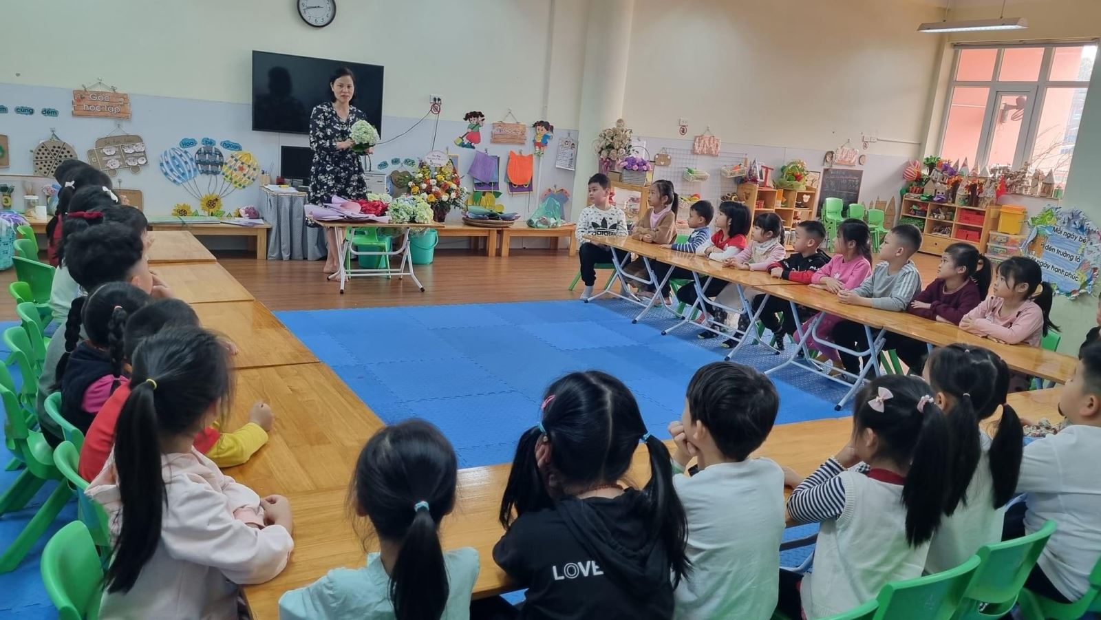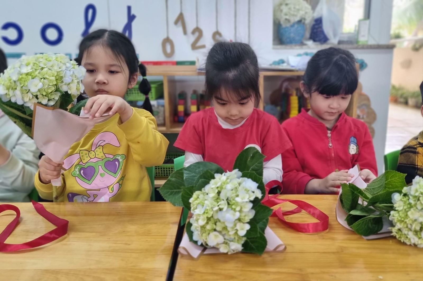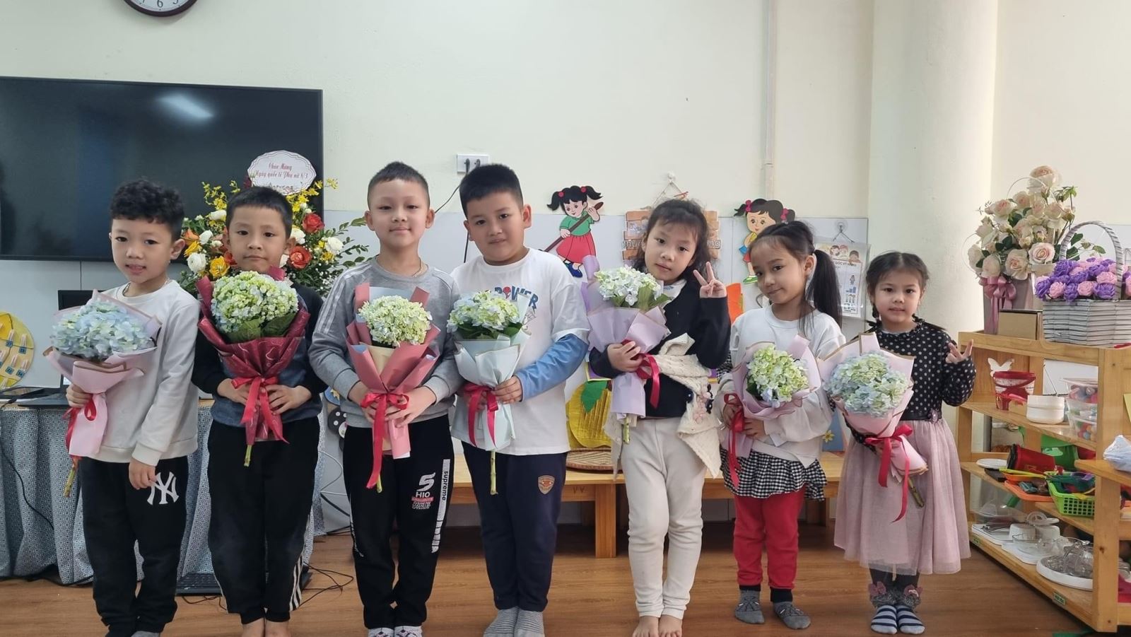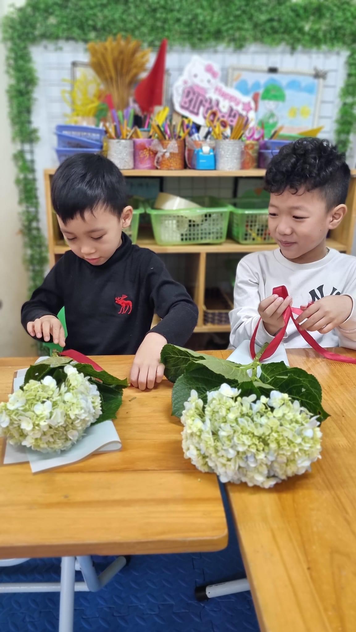 Và ý nghĩa hơn, những bó hoa được trao tặng bà, tặng mẹ ngay tại lớp học của bé. Chắc chắn các mẹ sẽ rất vui khi nhận được món quà mà tự tay các con thực hiện và các con cũng cảm thấy tự hào khi mình đã mang lại niềm vui cho bà, cho mẹ.