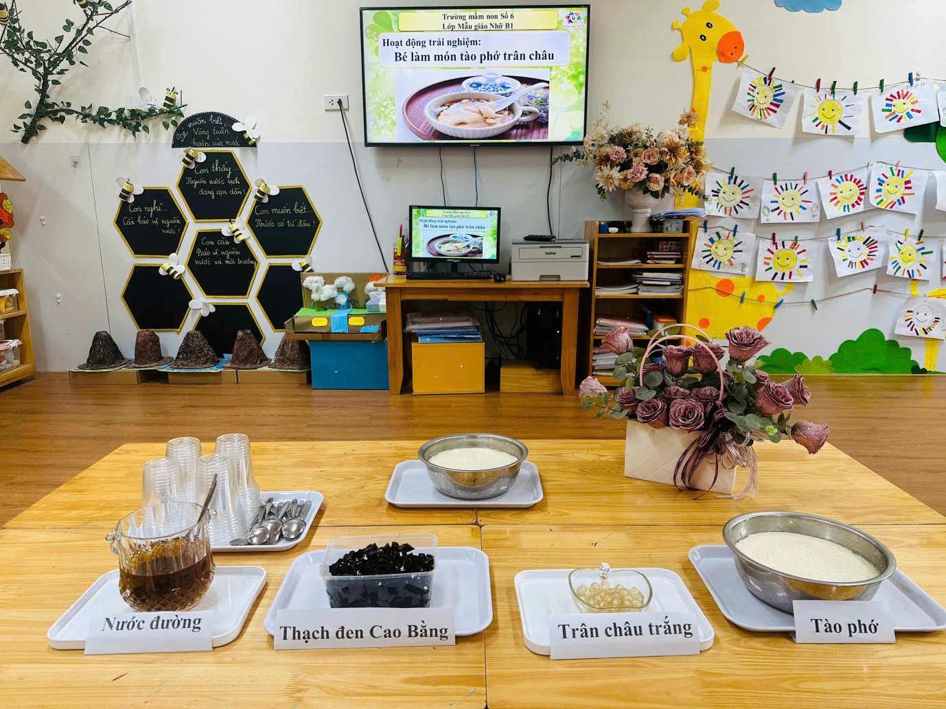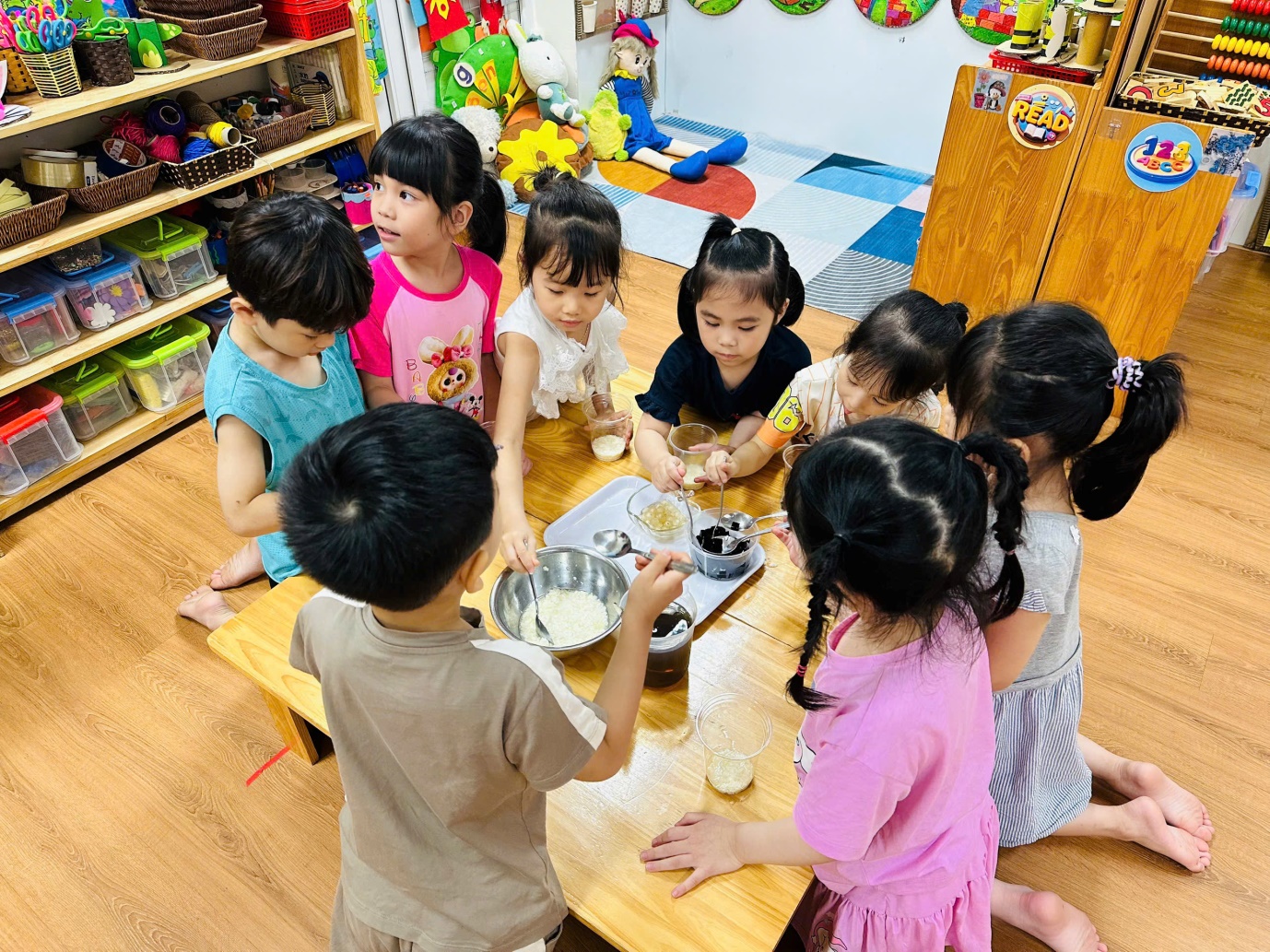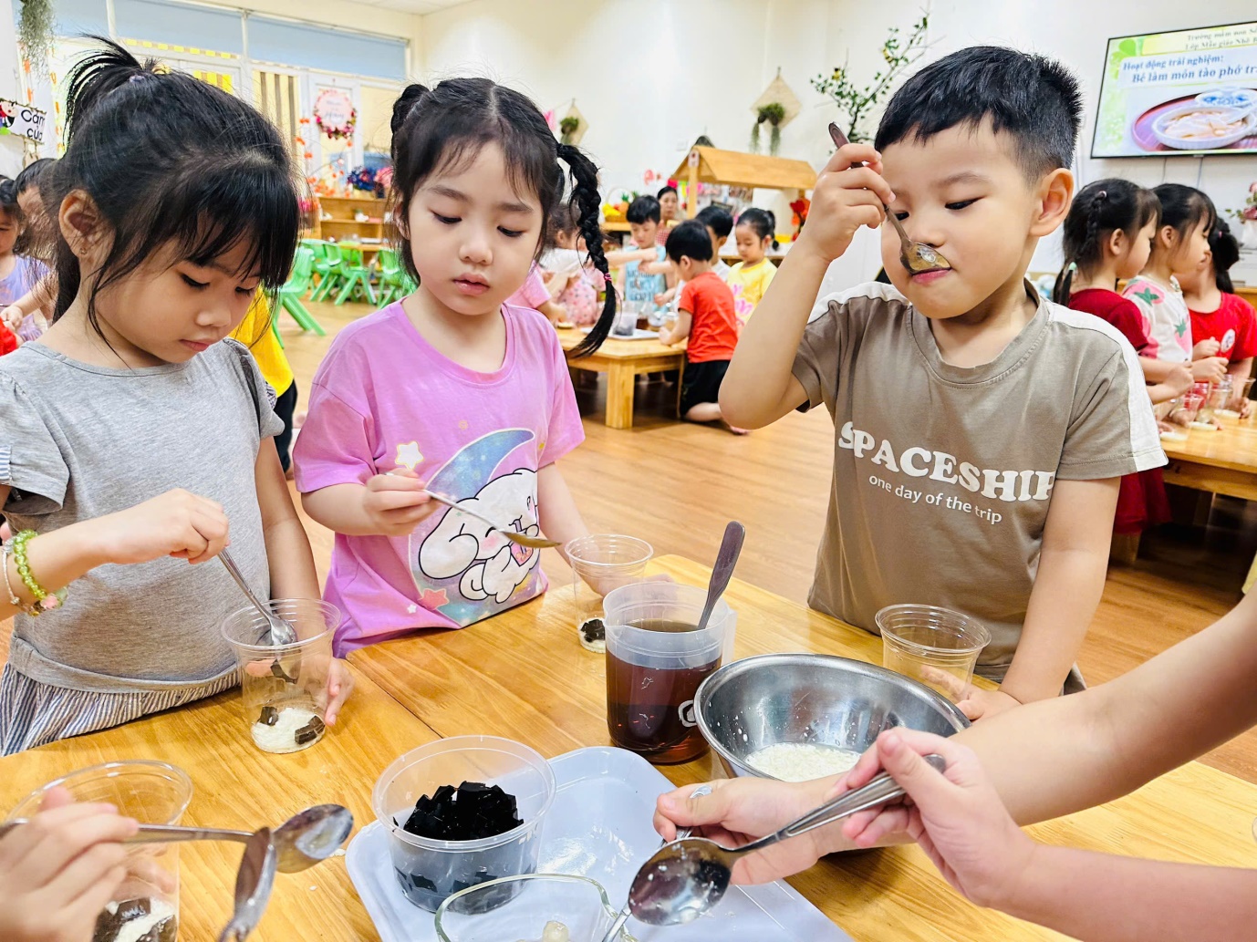 Đặc biệt những ngày hè nắng nóng, được ăn một cốc tào phớ sẽ giúp giải nhiệt cơ thể, vì vậy, các bạn nhỏ lớp MGN B1 đã được cô giáo hướng dẫn pha chế món tào phớ trân châu hấp dẫn.