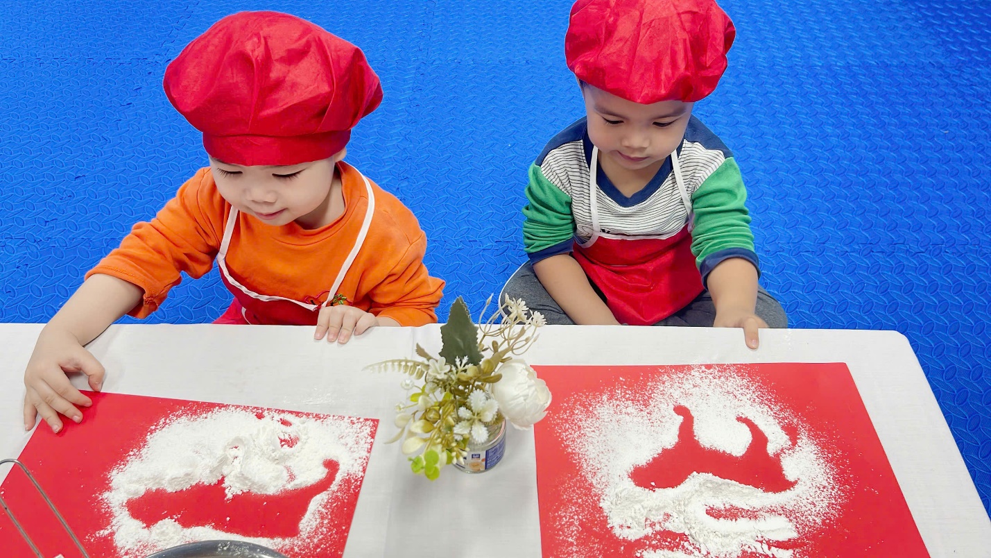 Hôm nay, đôi bàn tay khéo léo của chúng con đang tự tay tạo hình: in bóng các con vật từ bột mỳ. Bạn nào cũng rất tập trung, thích thú và tò mò khám phá.