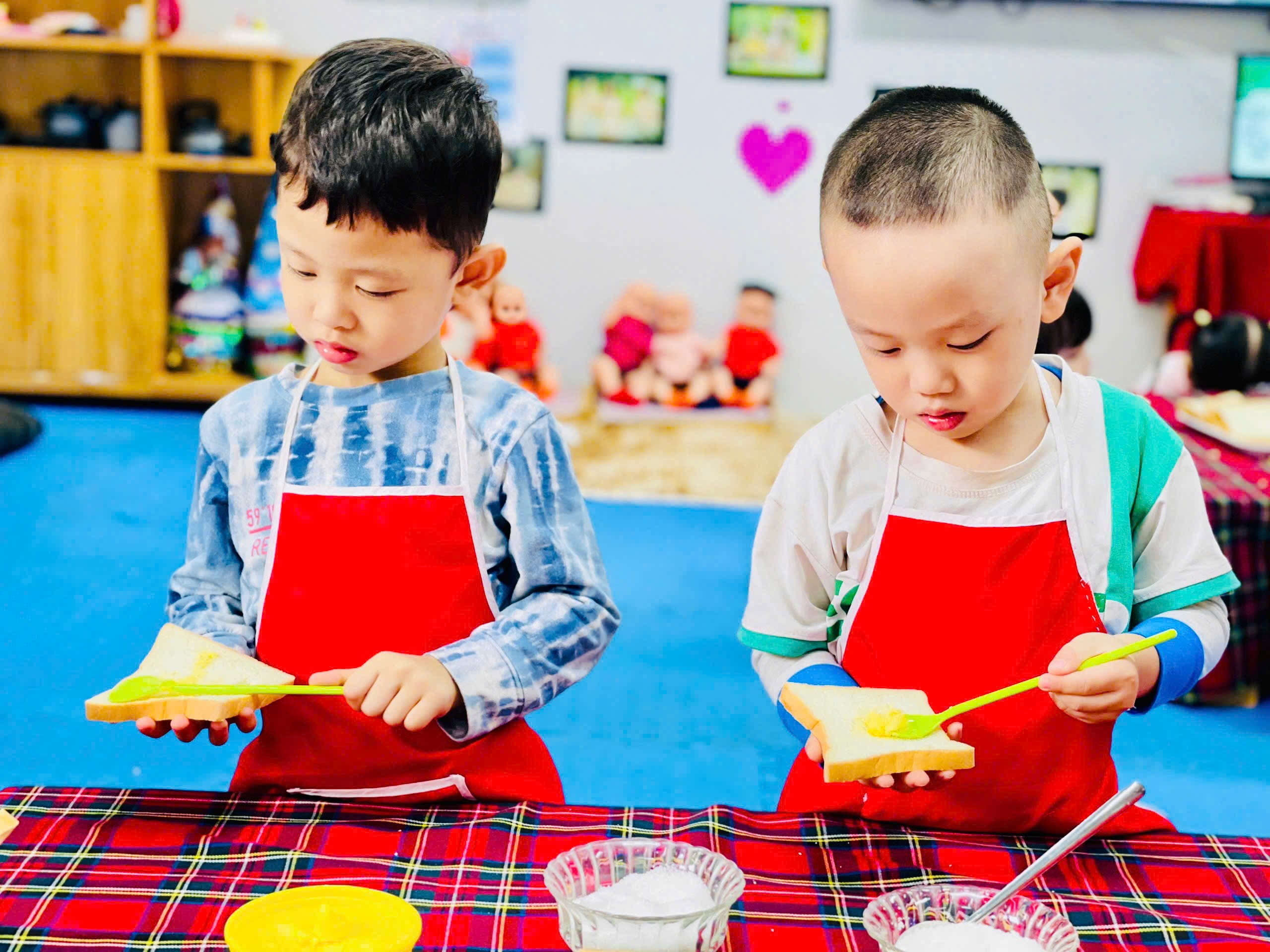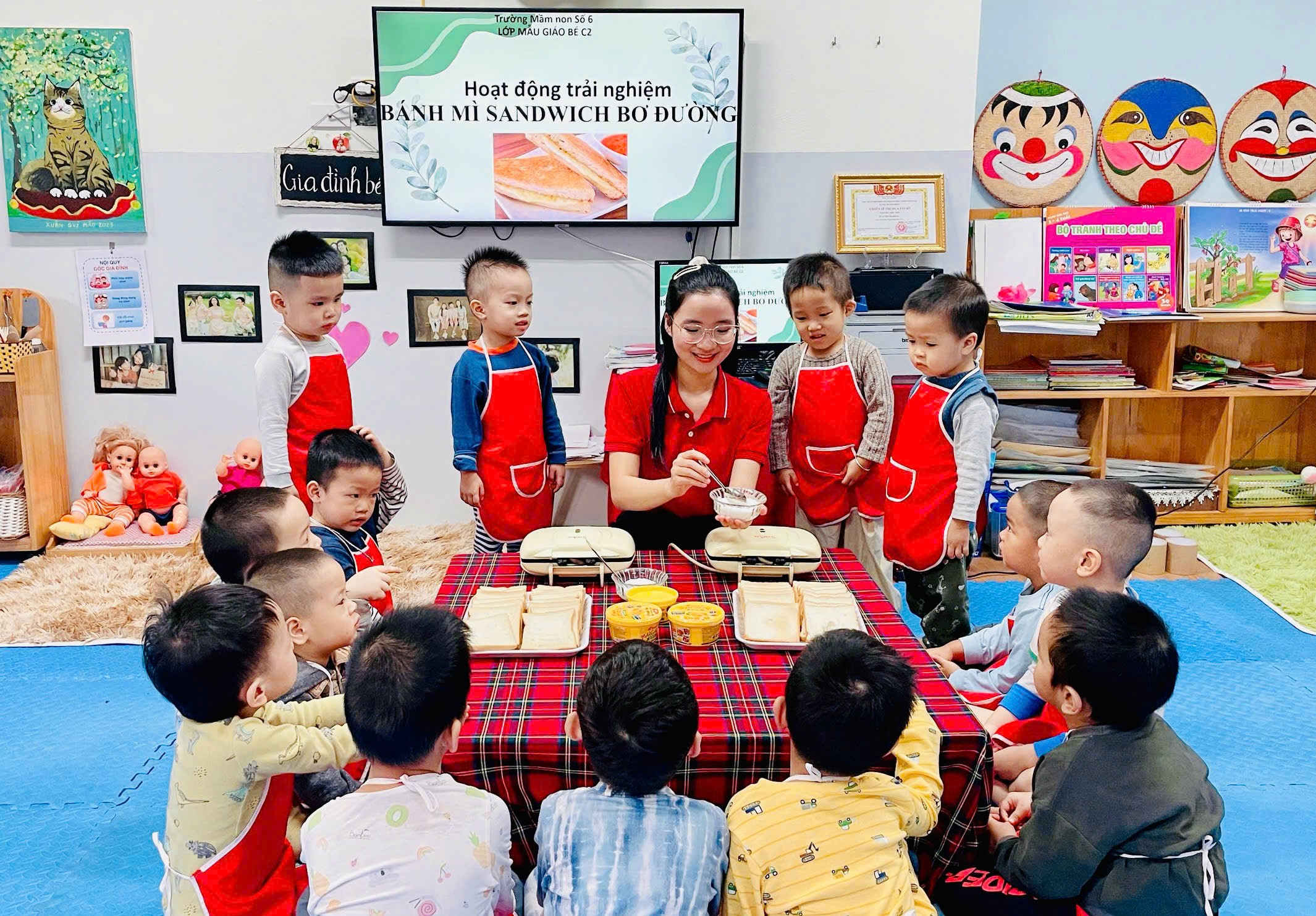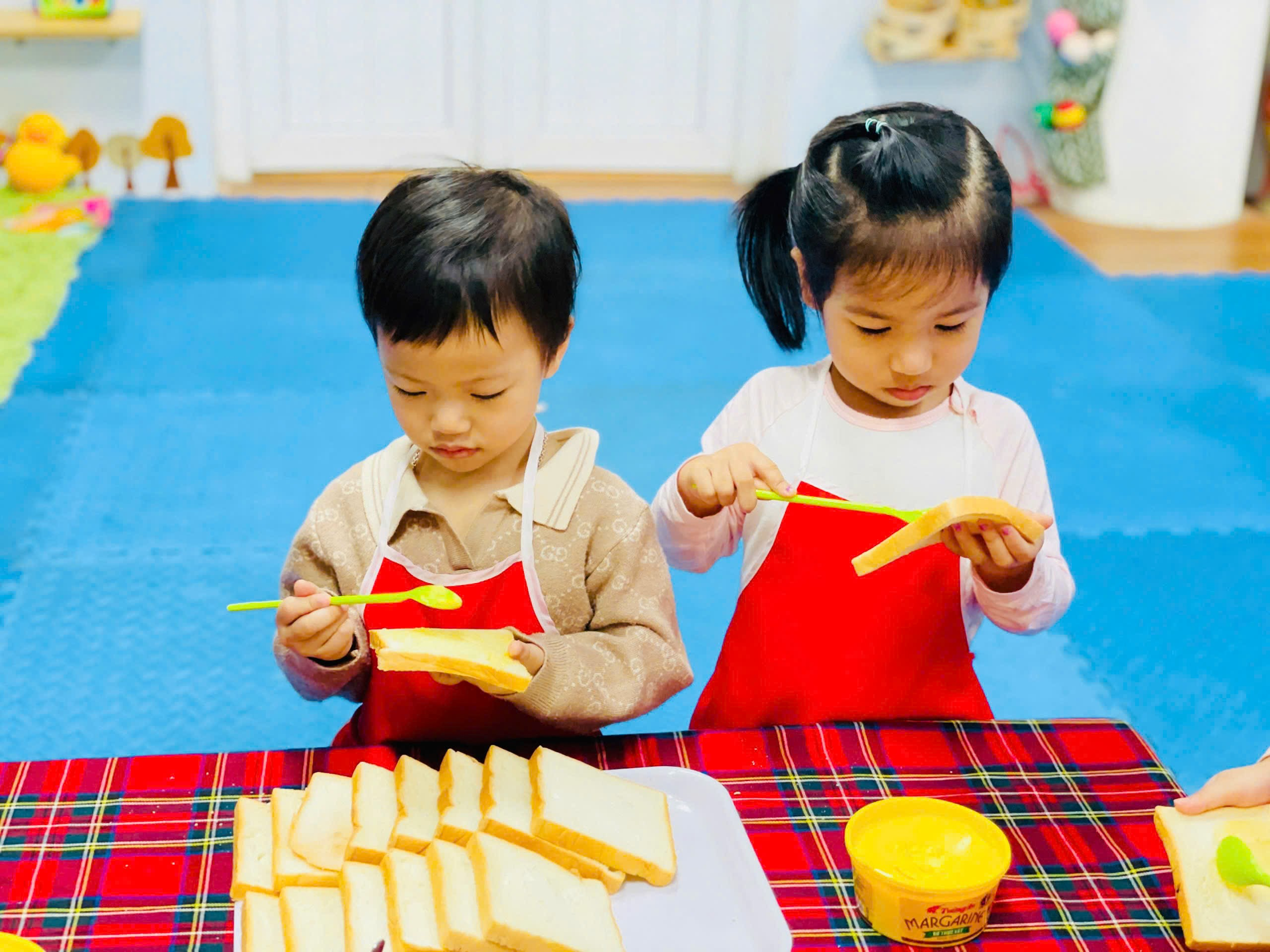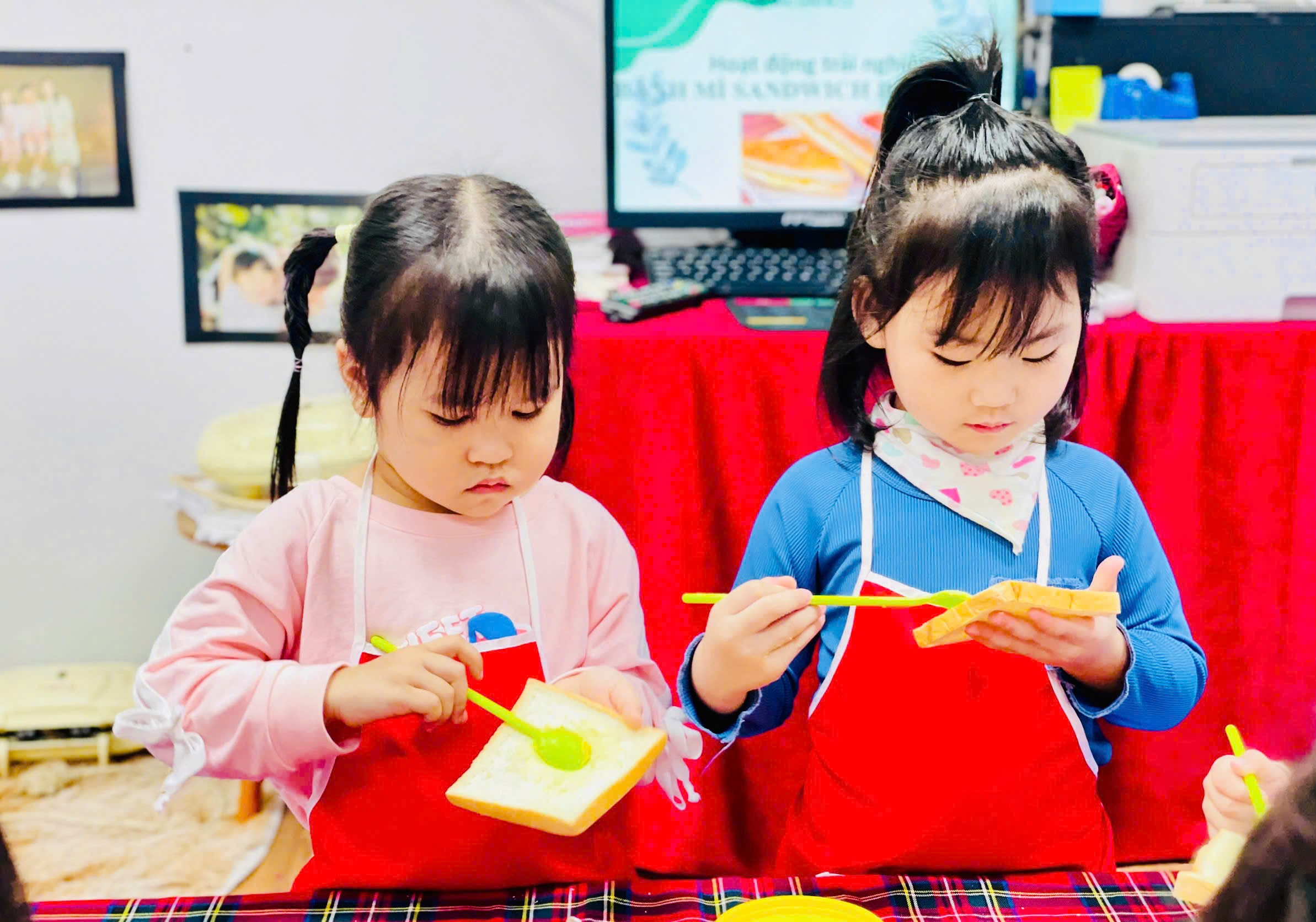 Hôm nay, các bạn nhỏ lớp Mẫu giáo Bé C2 đã có một buổi trải nghiệm thật vui và đầy hứng thú với hoạt động trải nghiệm “Làm bánh mì sandwich bơ đường”.