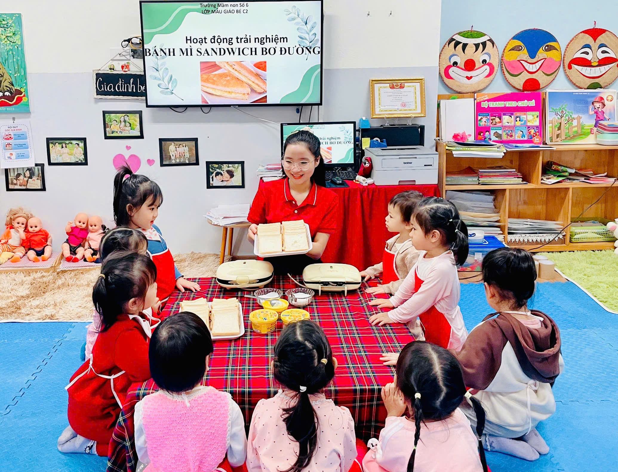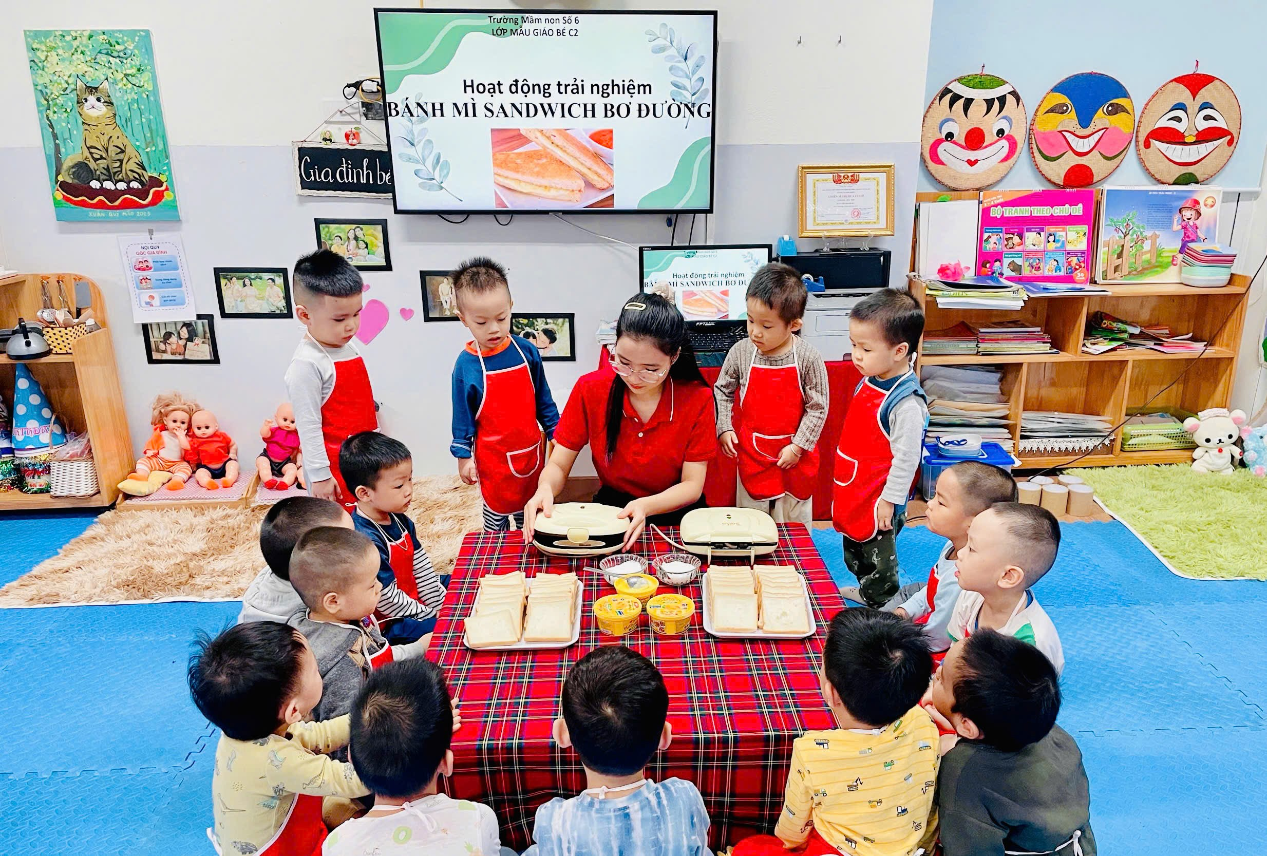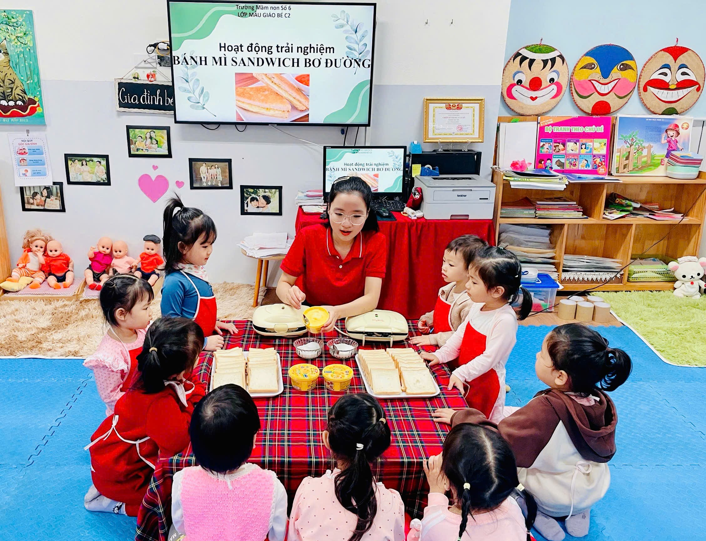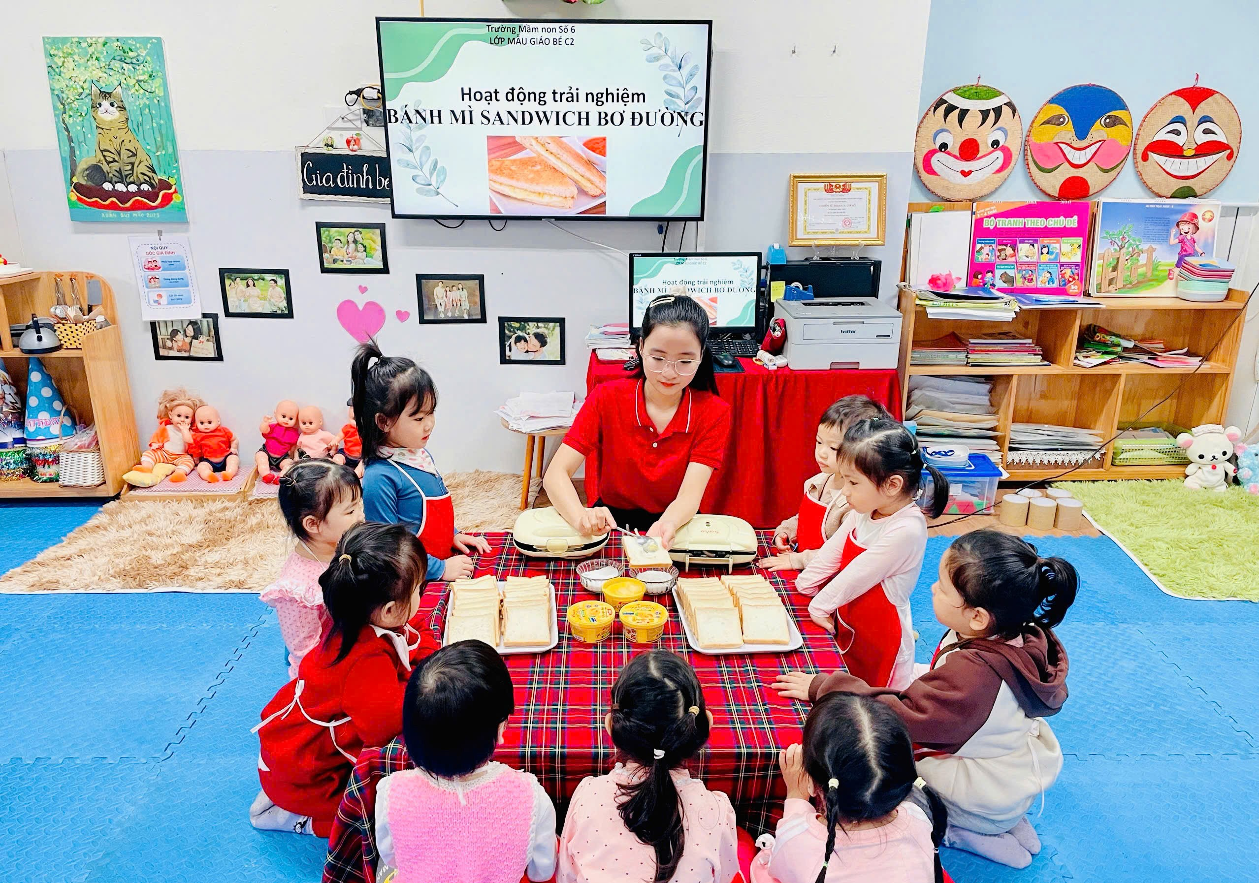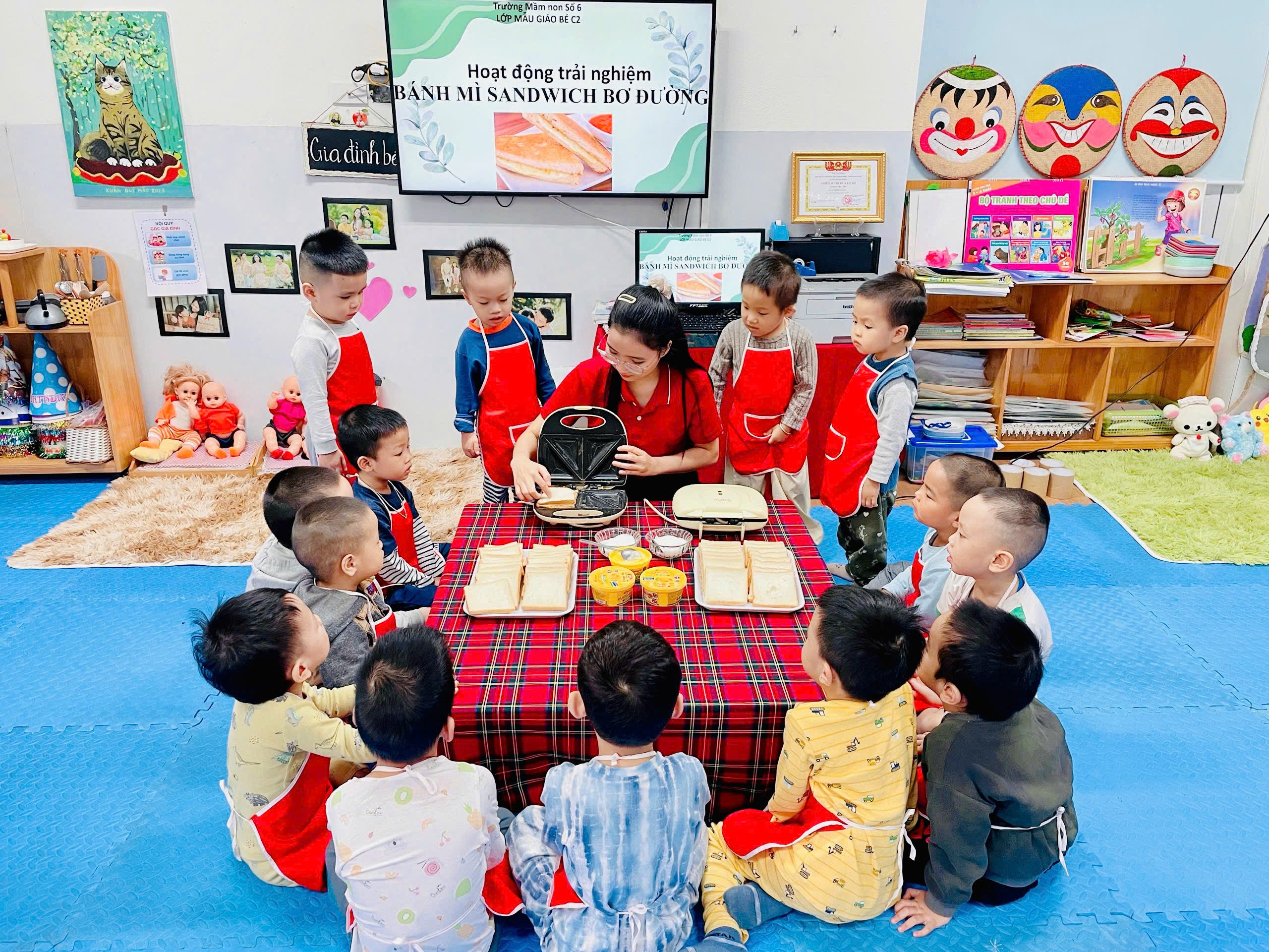 Hôm nay, các bạn nhỏ lớp Mẫu giáo Bé C2 đã có một buổi trải nghiệm thật vui và đầy hứng thú với hoạt động trải nghiệm “Làm bánh mì sandwich bơ đường”.