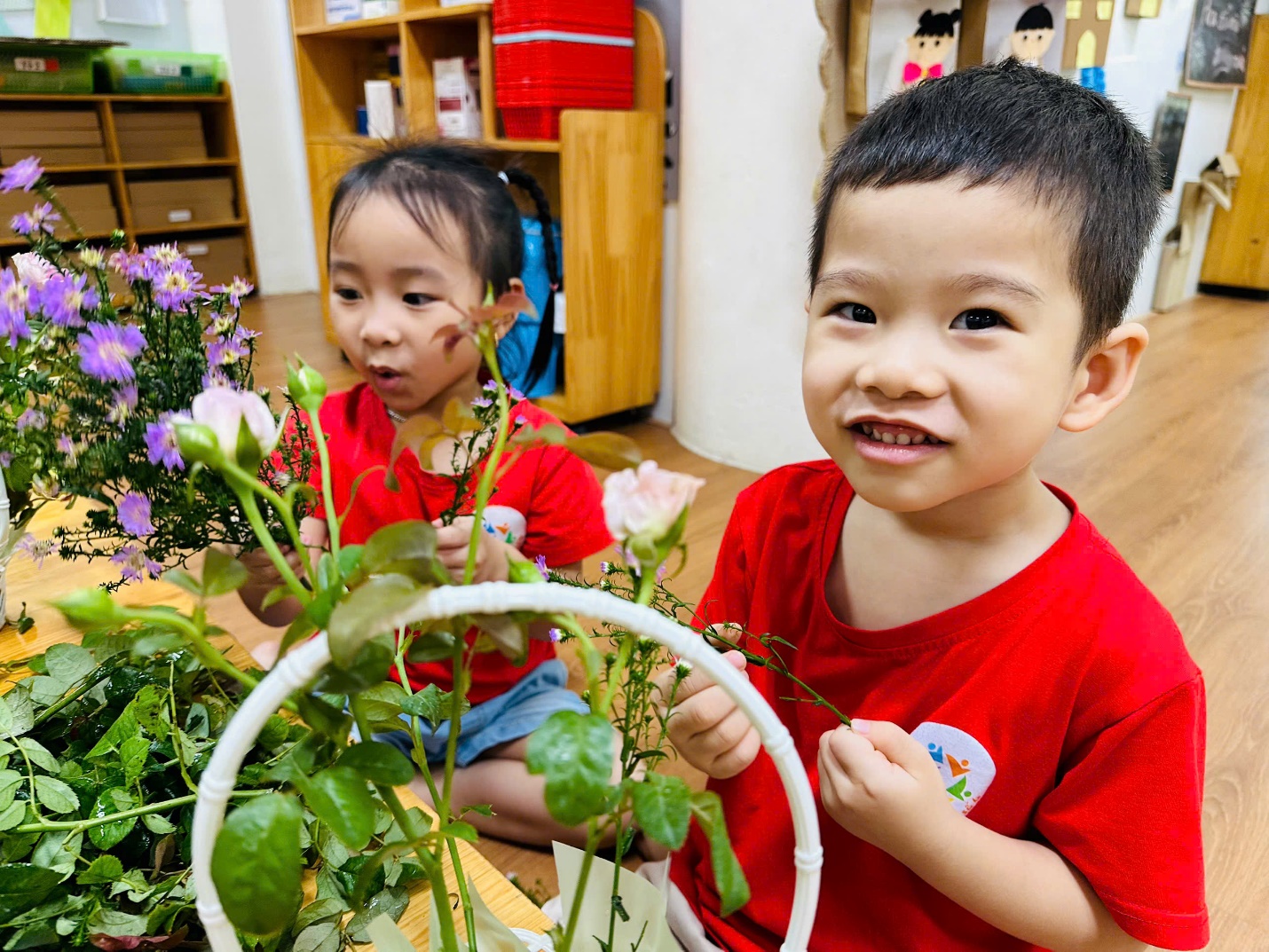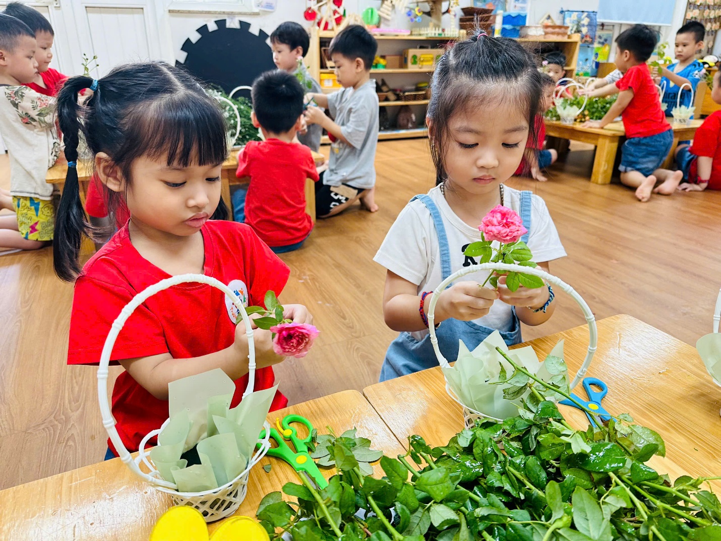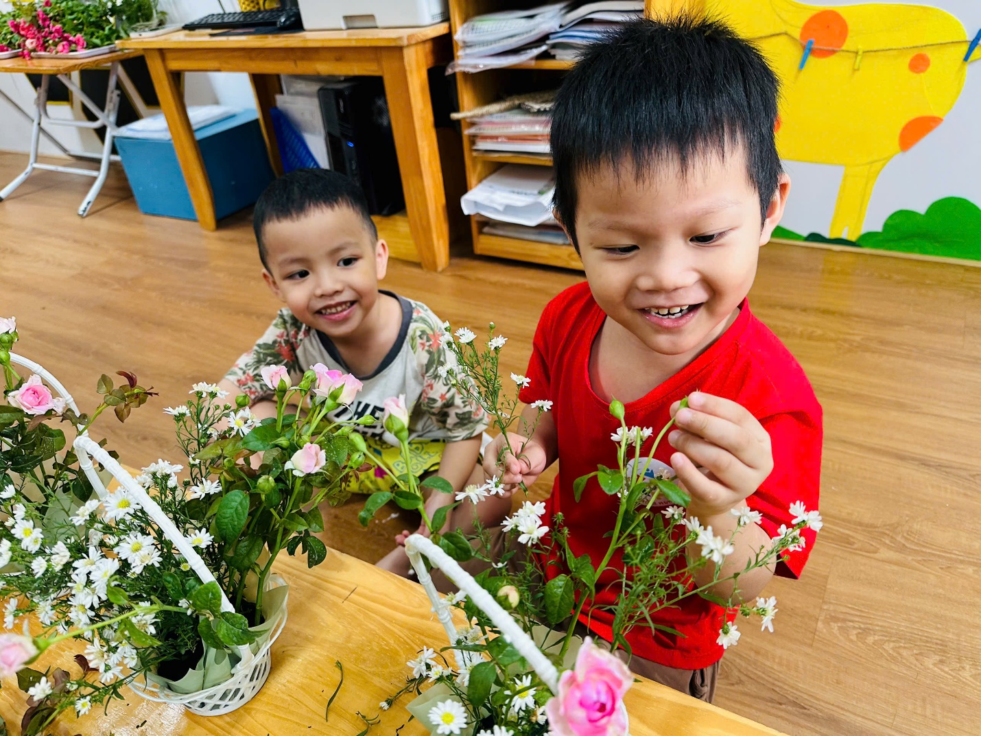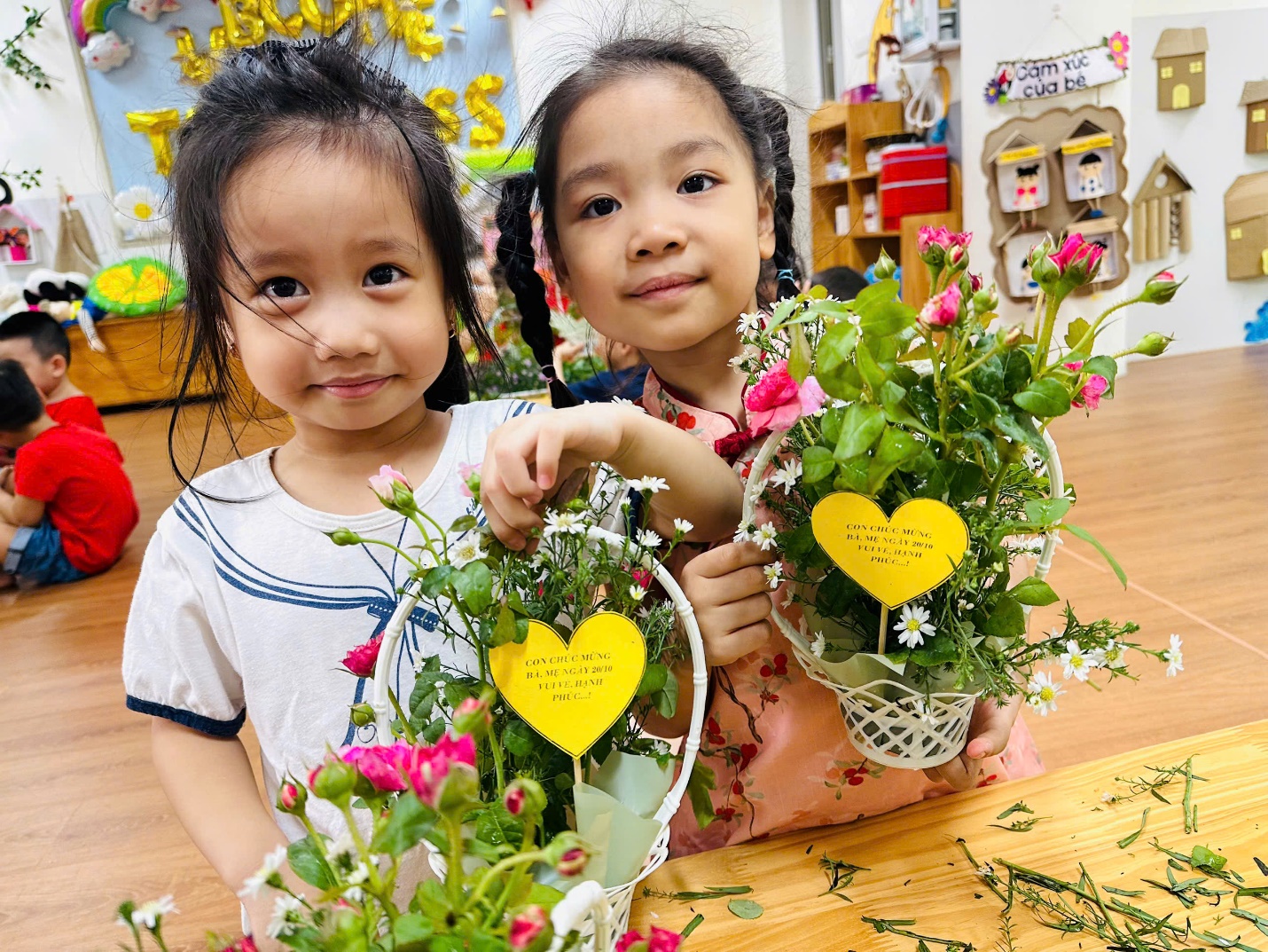 Đôi bàn tay tuy nhỏ bé, vụng về nhưng các con đã rất cố gắng để hoàn thành lẵng hoa của mình. Và nụ cười rạng rỡ của bà, của mẹ khi nhận được tấm lòng của các con chính là niềm hạnh phúc của các con, là niềm vui của các cô.